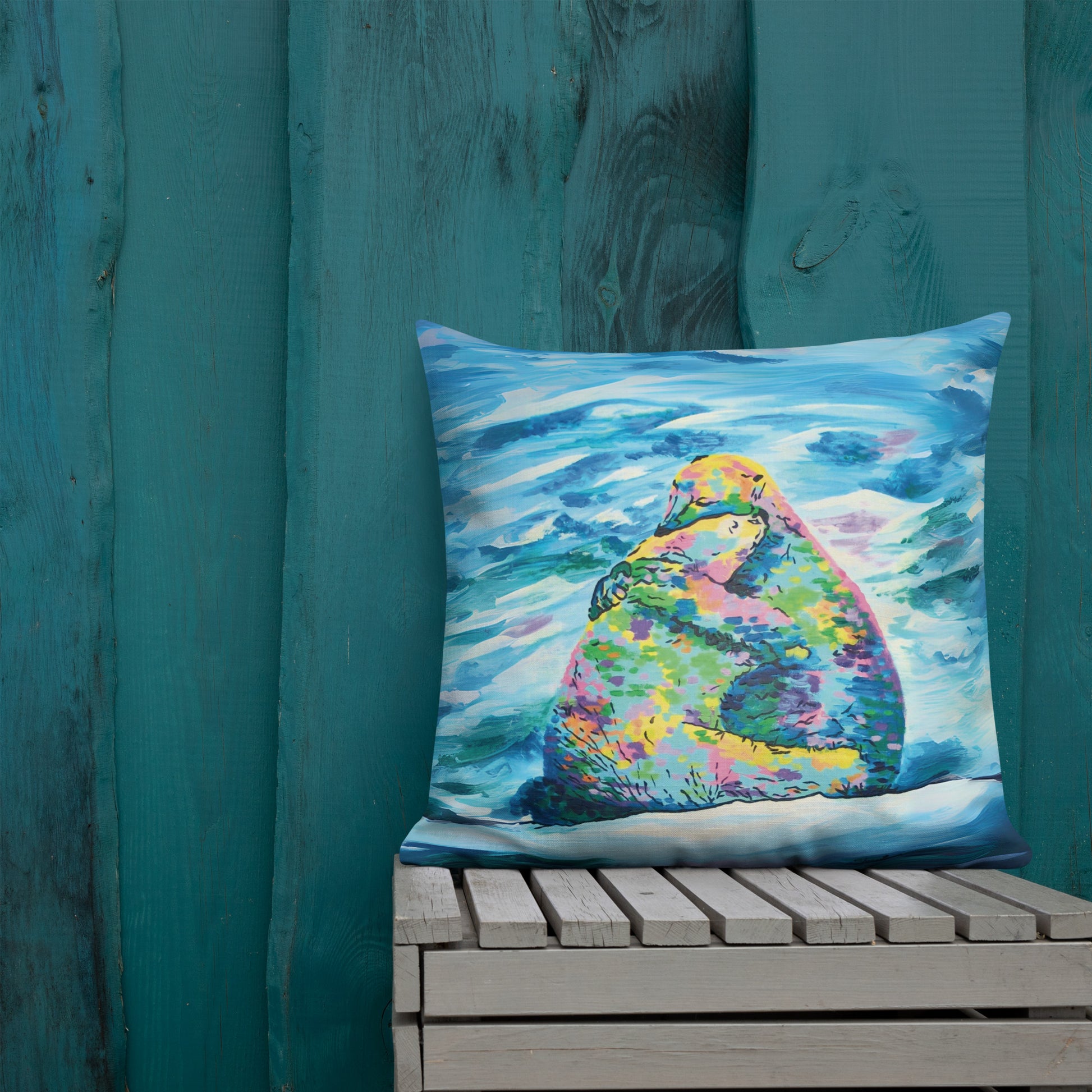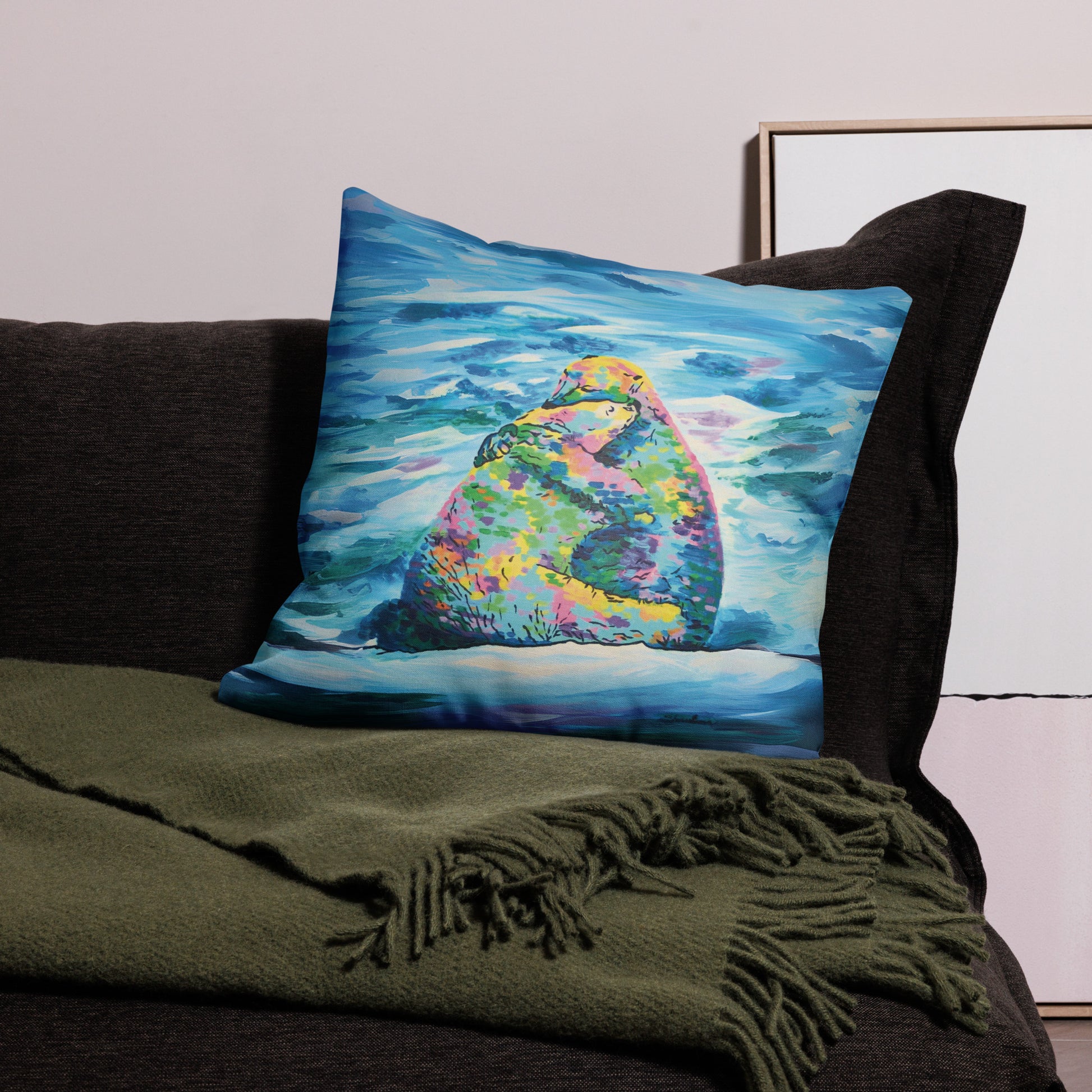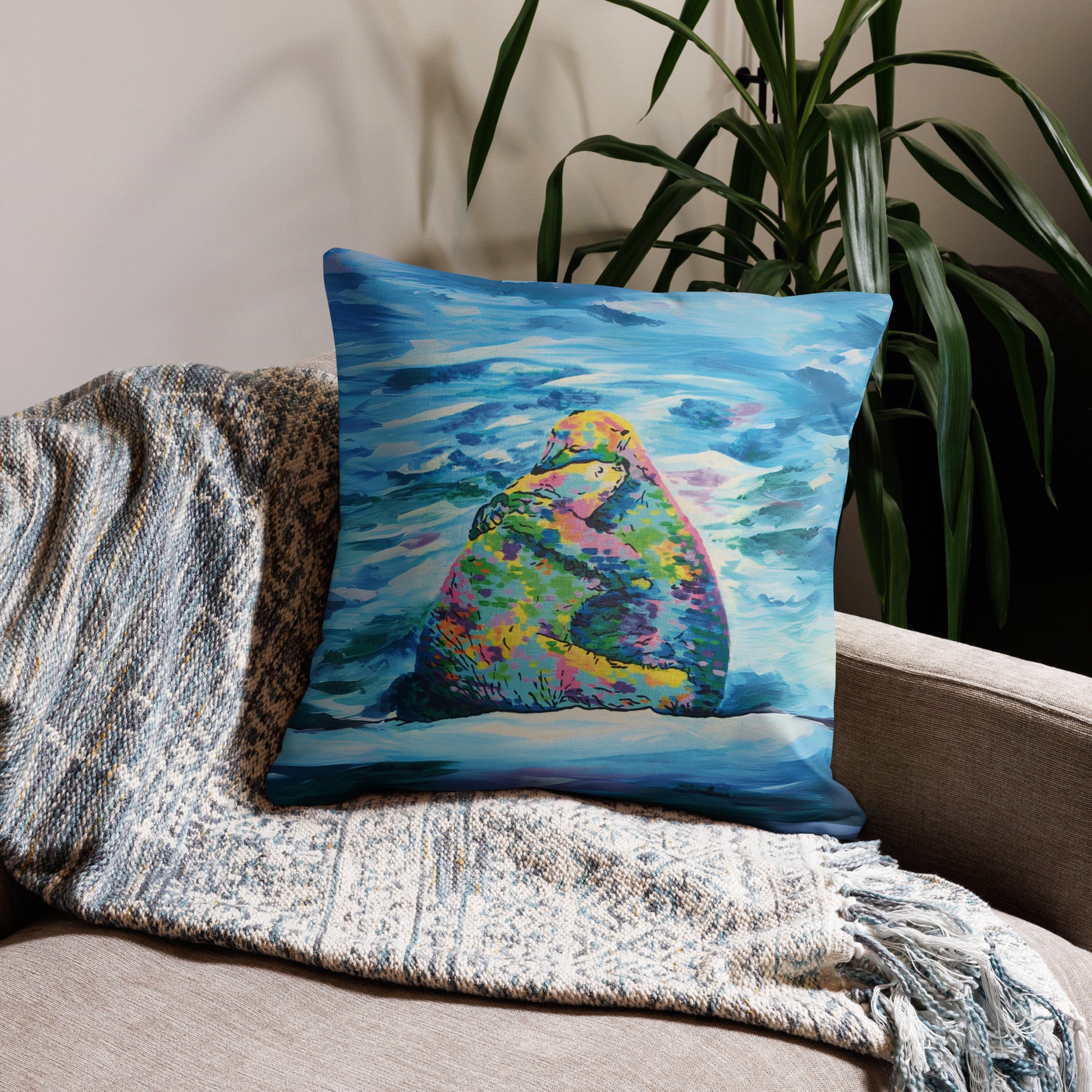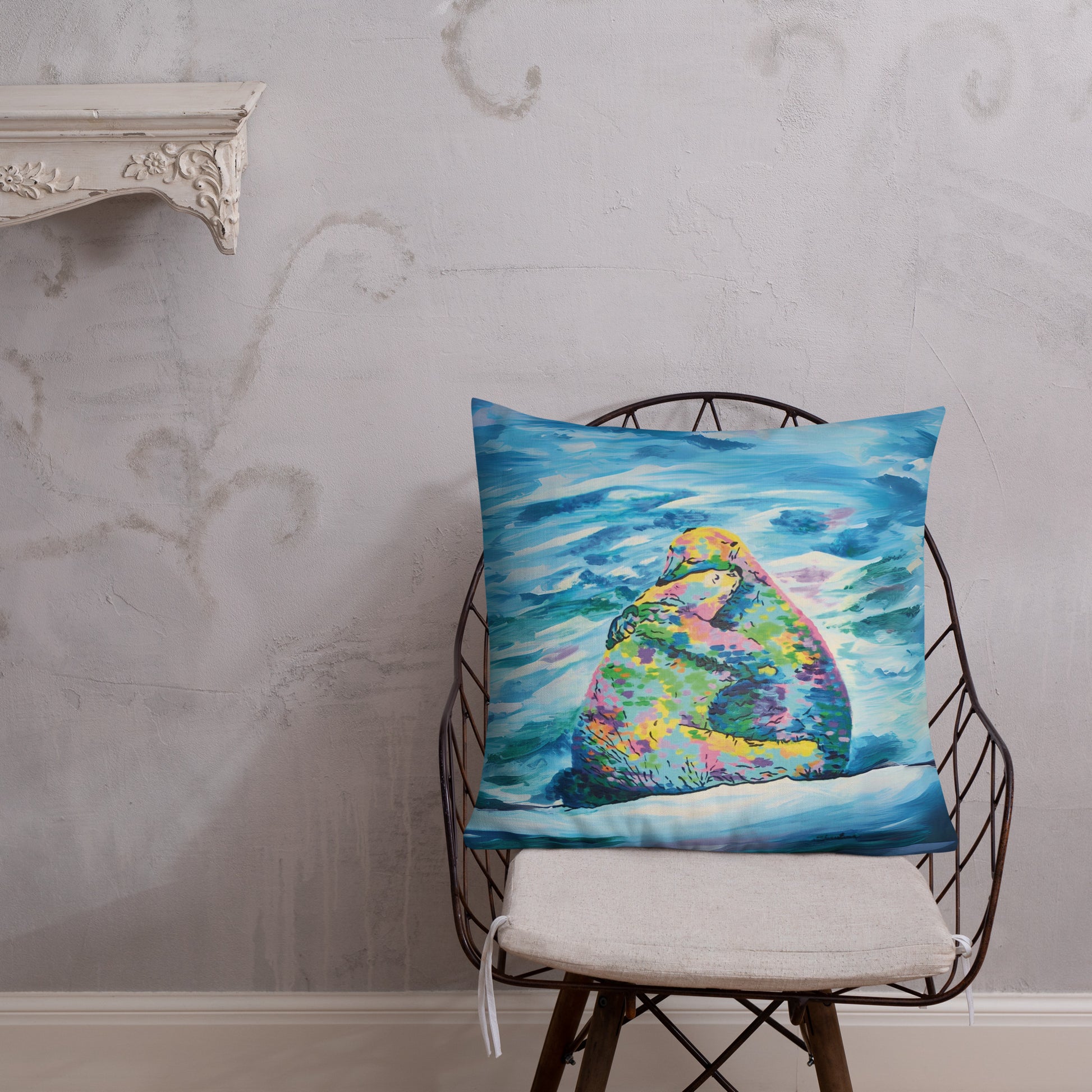 Painted in the vibrant style of color expressionism, this artwork combines a spectrum of vivid hues to highlight the tenderness and affection shared between these revered creatures. The harmony of colors evokes emotions of acceptance, belonging, and togetherness, making it a perfect addition to any room seeking a touch of heart. As a gift to someone special, whether near or far, this piece can act to remind them of your own doting squeeze waiting for them.