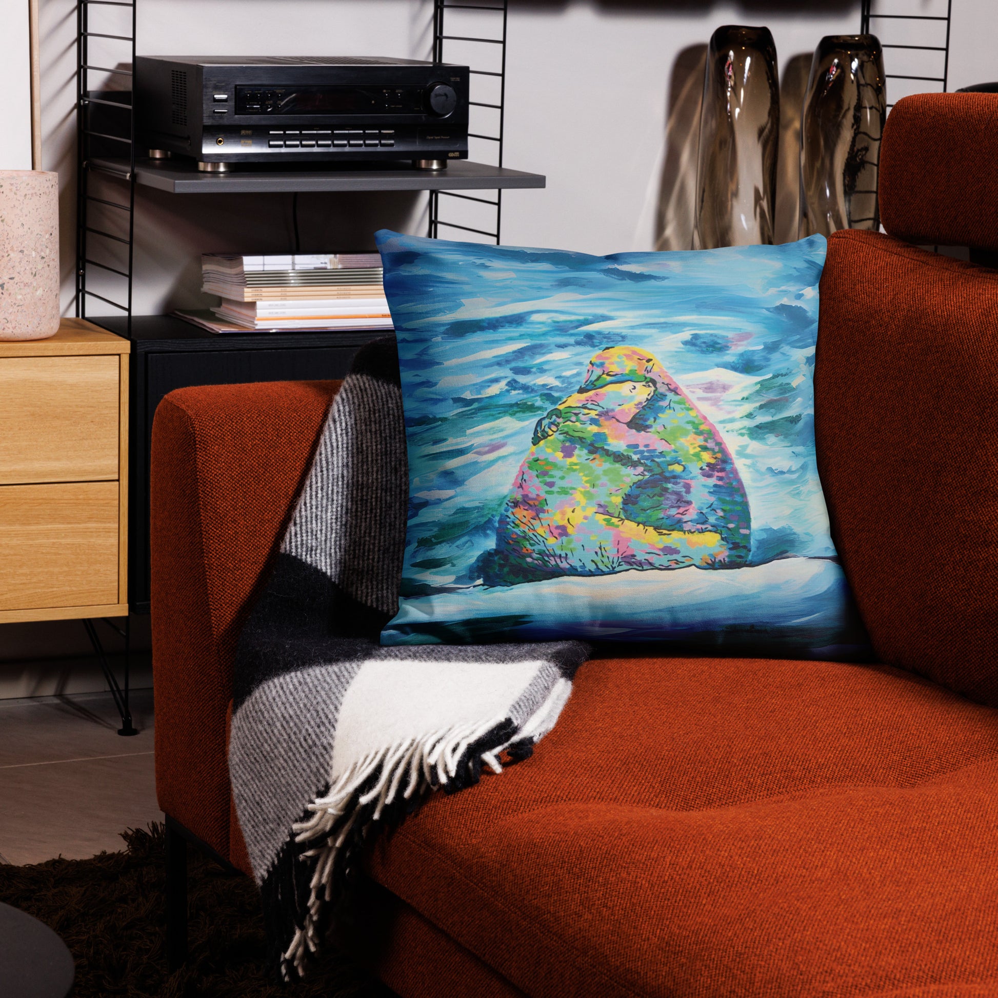 Experience the warmth of love with Bear Hug, a lively painting set in the icy wilderness -- or, perhaps, Chicago's own Lincoln Park Zoo... This enchanting painting captures a heartwarming moment between a polar bear couple locked in a loving embrace.