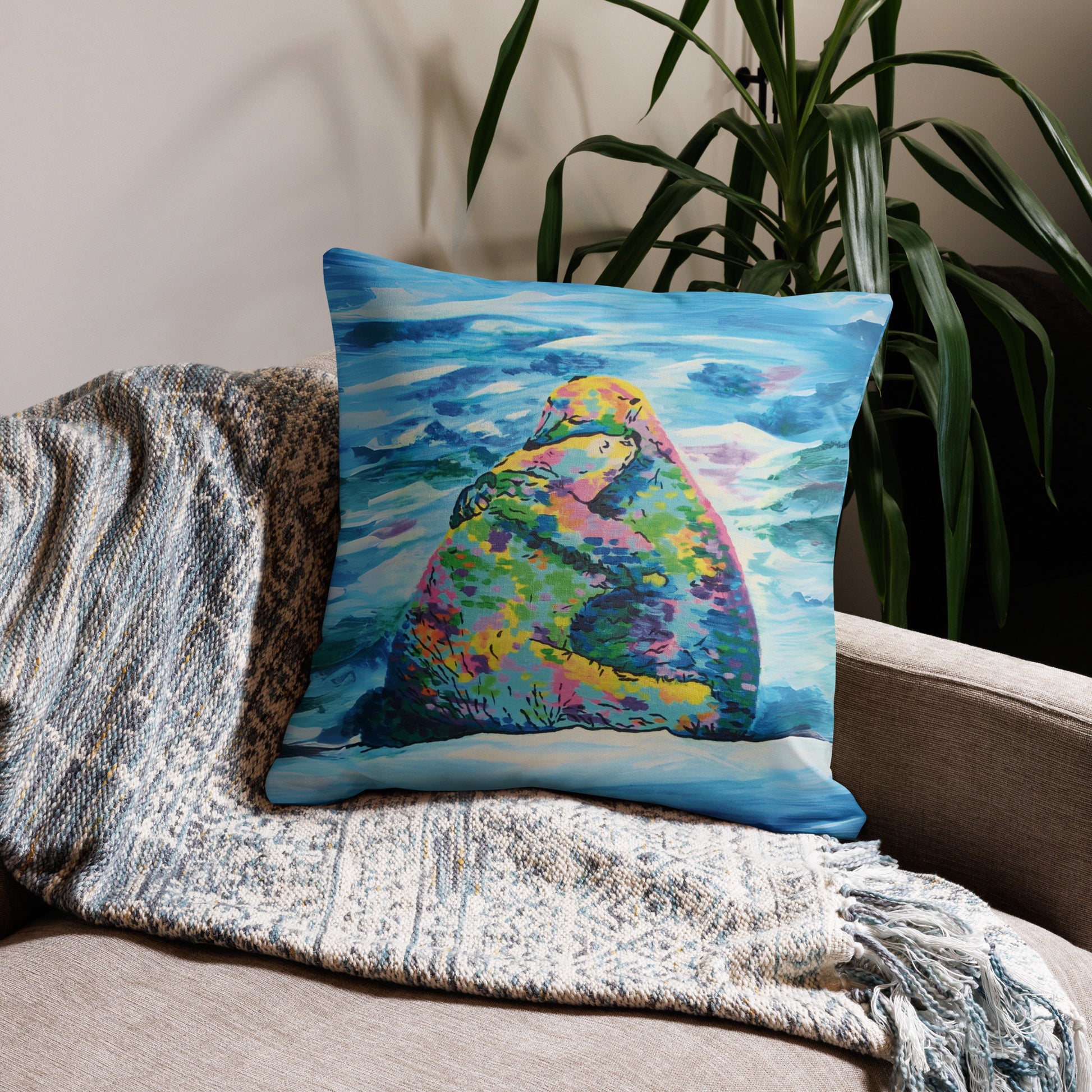 Painted in the vibrant style of color expressionism, this artwork combines a spectrum of vivid hues to highlight the tenderness and affection shared between these revered creatures. The harmony of colors evokes emotions of acceptance, belonging, and togetherness, making it a perfect addition to any room seeking a touch of heart. As a gift to someone special, whether near or far, this piece can act to remind them of your own doting squeeze waiting for them.