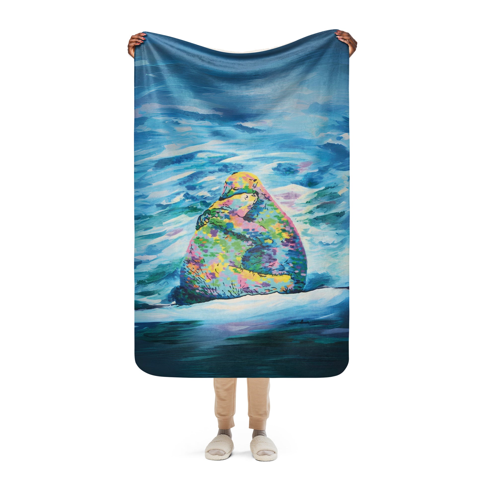 Experience the warmth of love with Bear Hug, a lively painting set in the icy wilderness -- or, perhaps, Chicago's own Lincoln Park Zoo... This enchanting painting captures a heartwarming moment between a polar bear couple locked in a loving embrace.