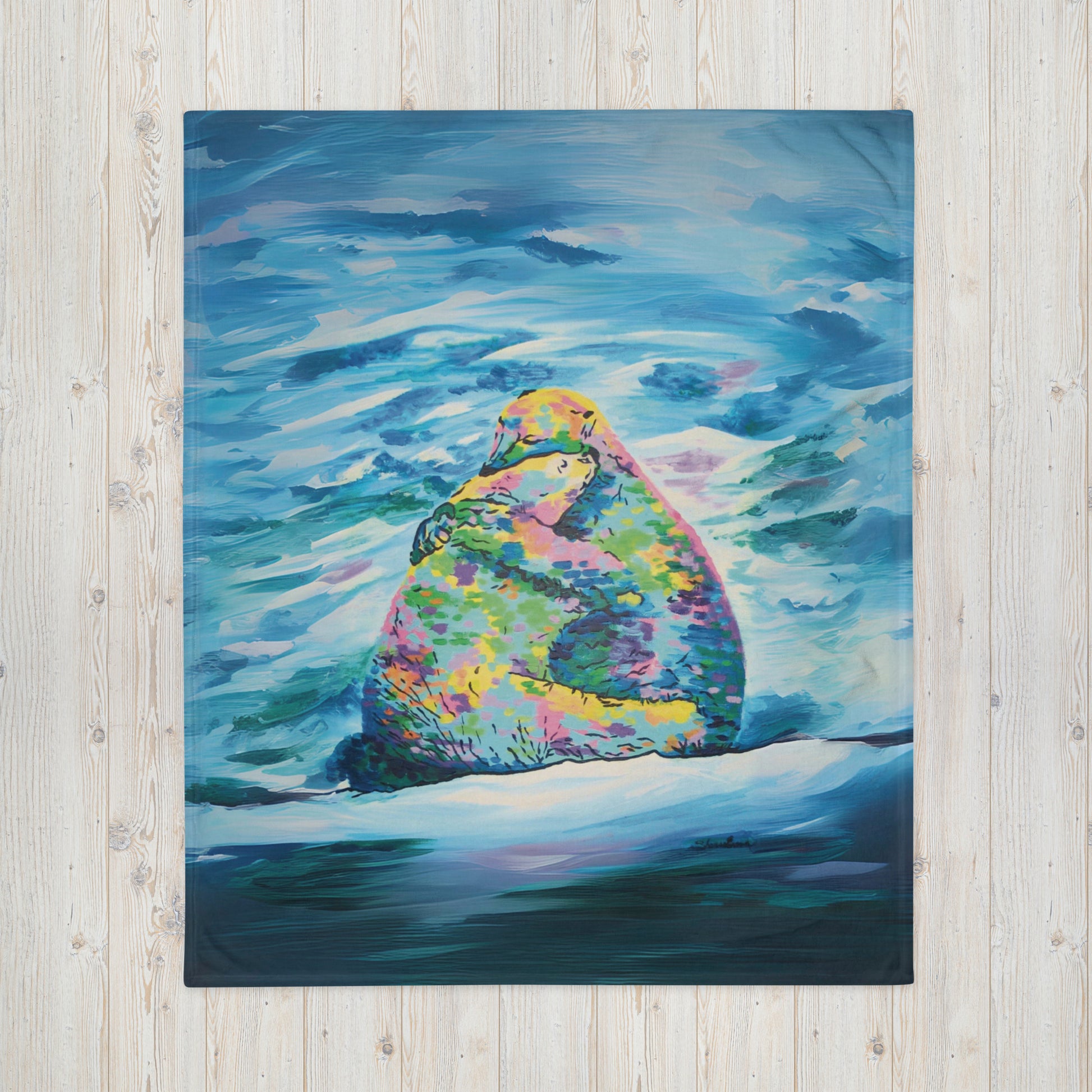 Painted in the vibrant style of color expressionism, this artwork combines a spectrum of vivid hues to highlight the tenderness and affection shared between these revered creatures. The harmony of colors evokes emotions of acceptance, belonging, and togetherness, making it a perfect addition to any room seeking a touch of heart. As a gift to someone special, whether near or far, this piece can act to remind them of your own doting squeeze waiting for them.