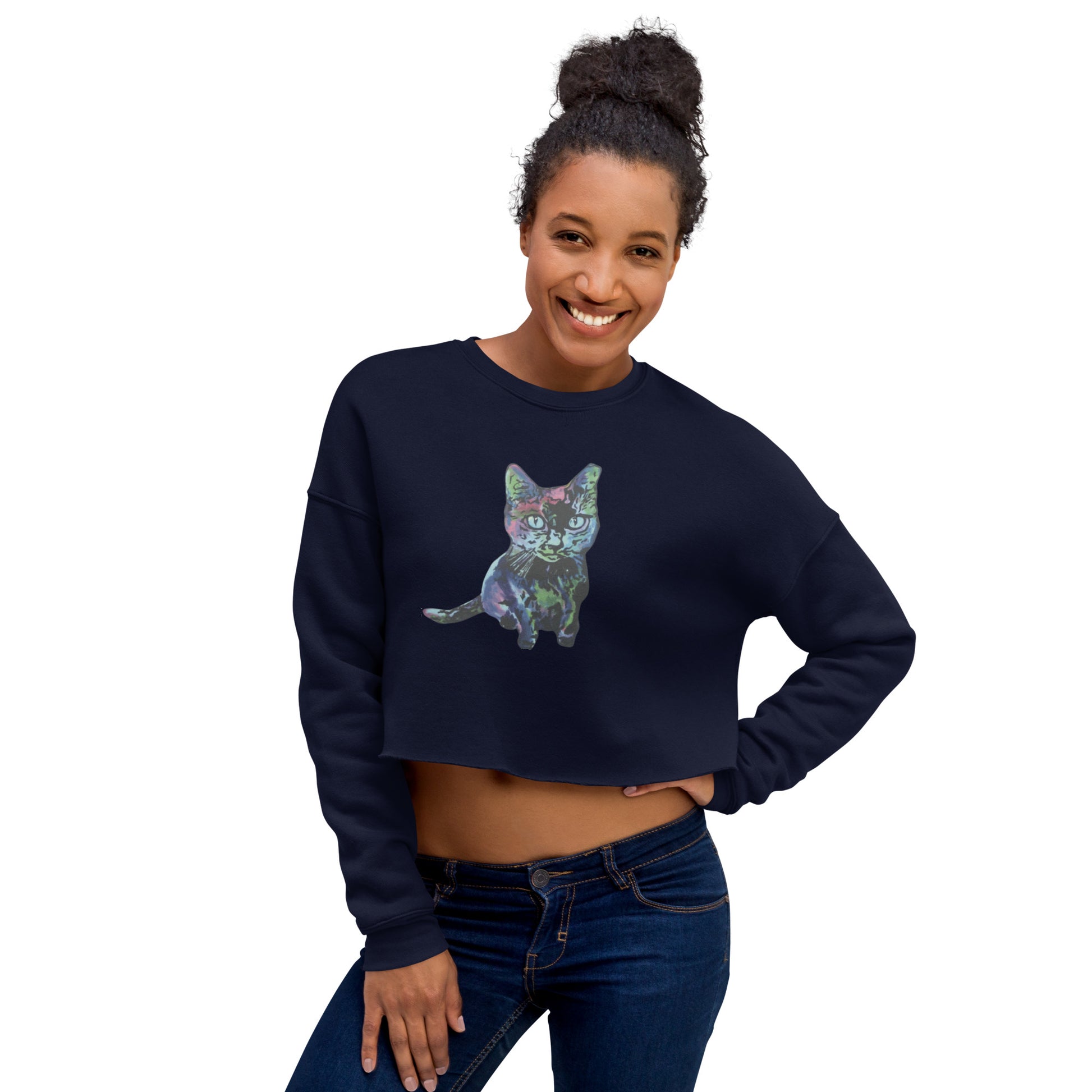 Our cozy fleece crop sweatshirt has an extra soft feel to the touch and will envelop you in its charming comfort. This quality wardrobe staple offers a raw hem, a ribbed neckline and cuffs, and a dropped shoulder cut.