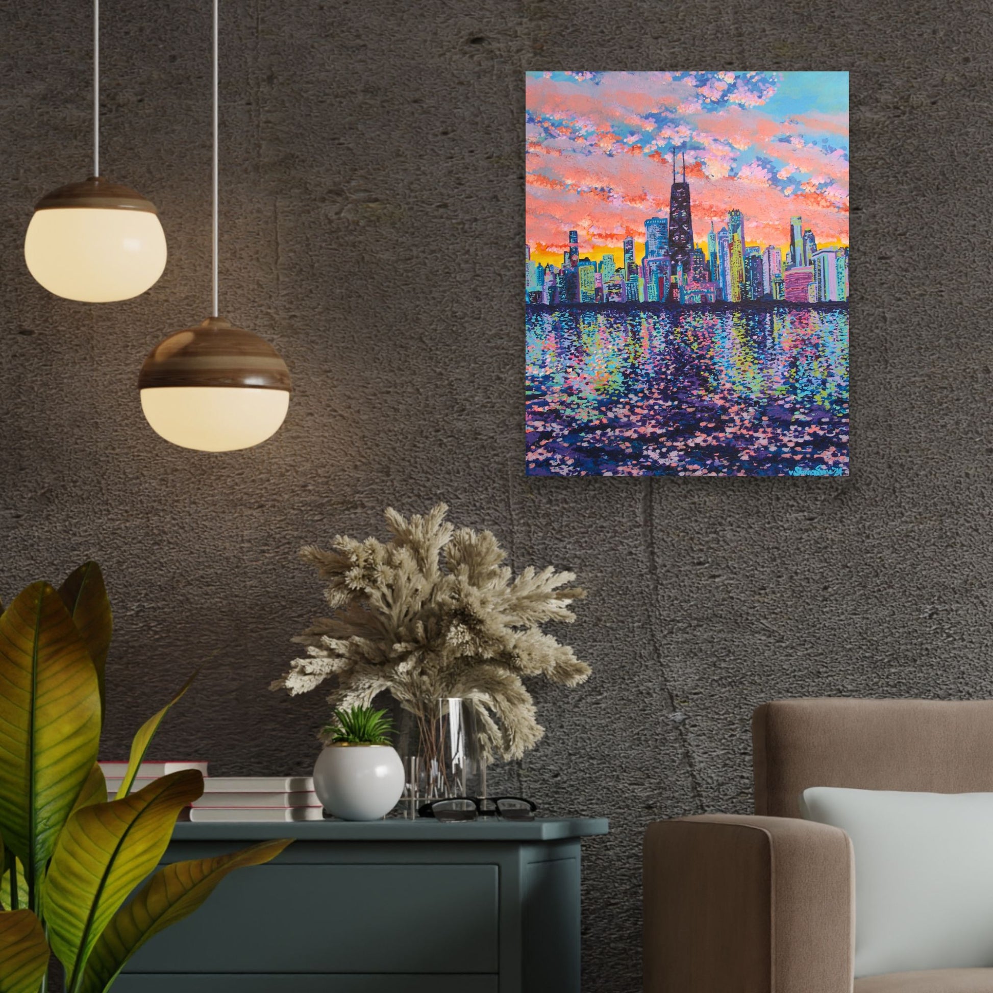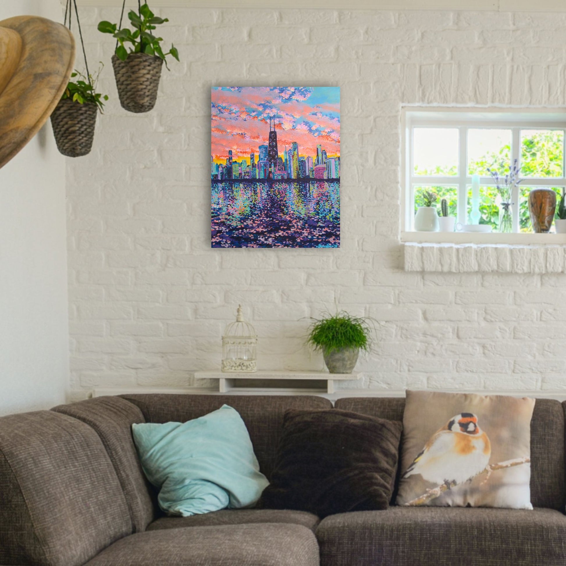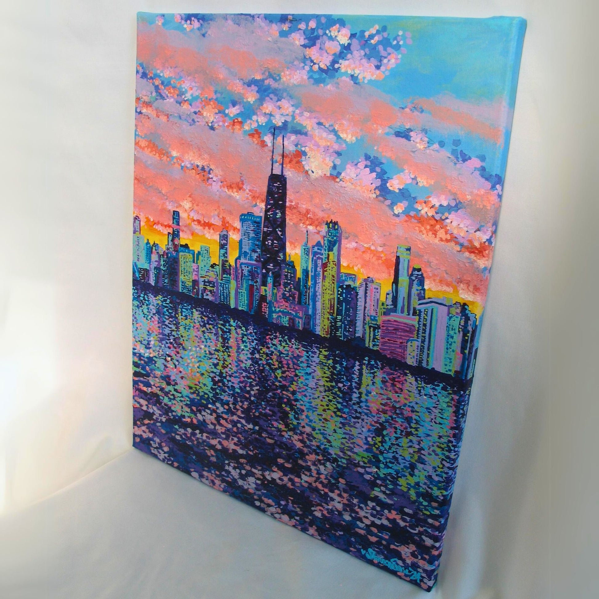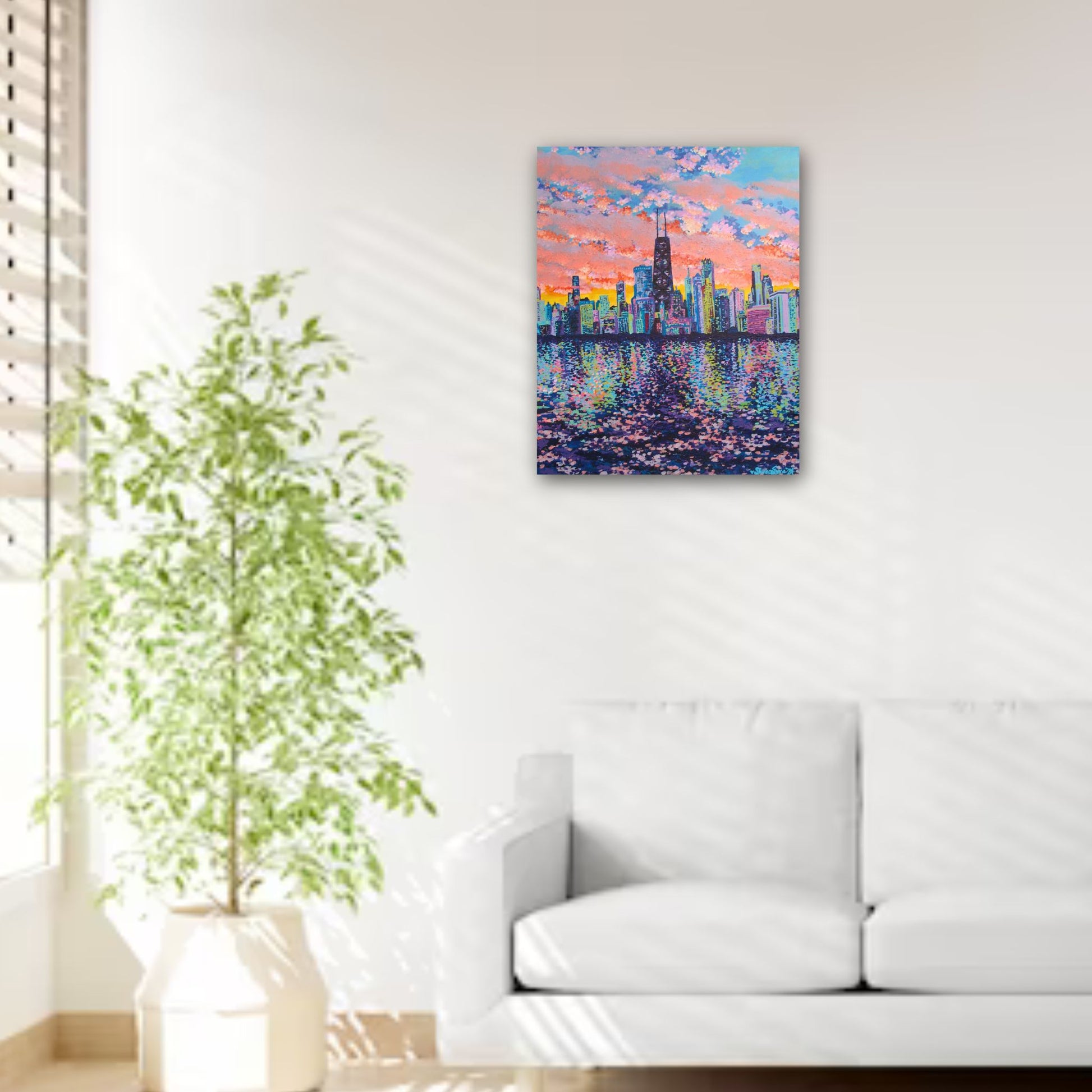 Whether you’re a lover of urban landscapes or drawn to the beauty of the setting sun, this painting offers a unique opportunity to own a piece of art that resonates with the pulse of Chicago.