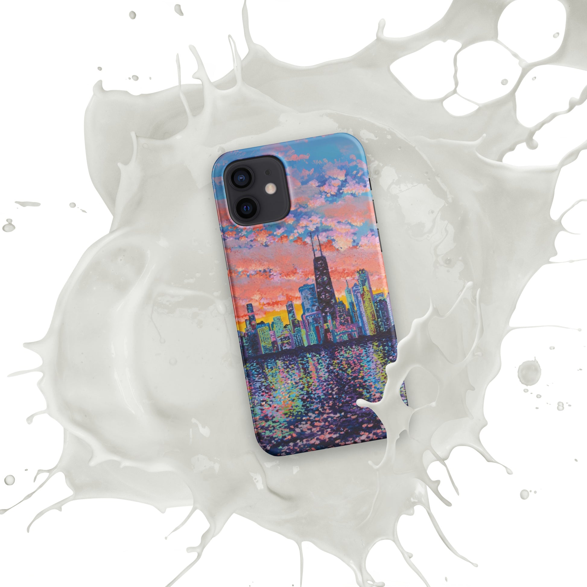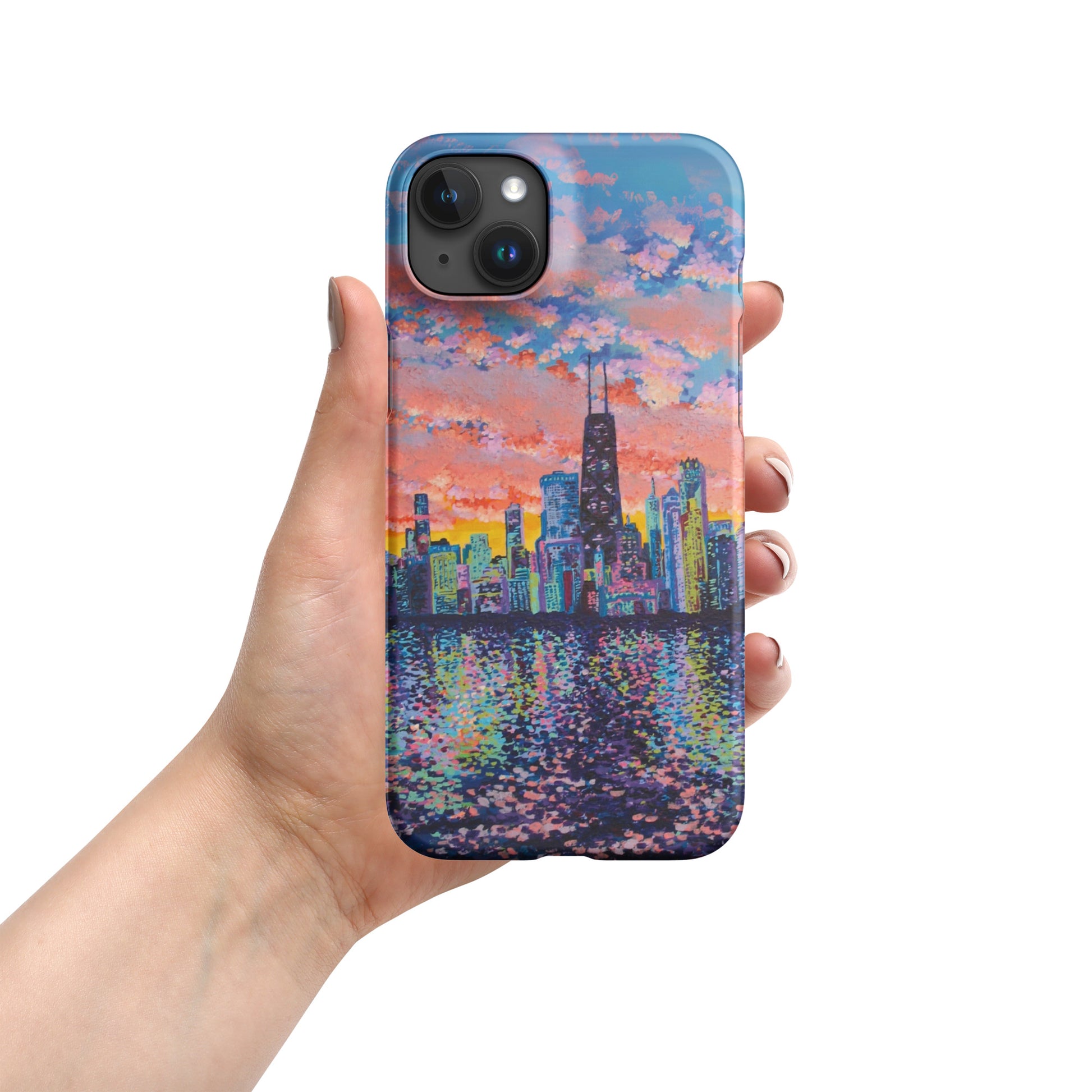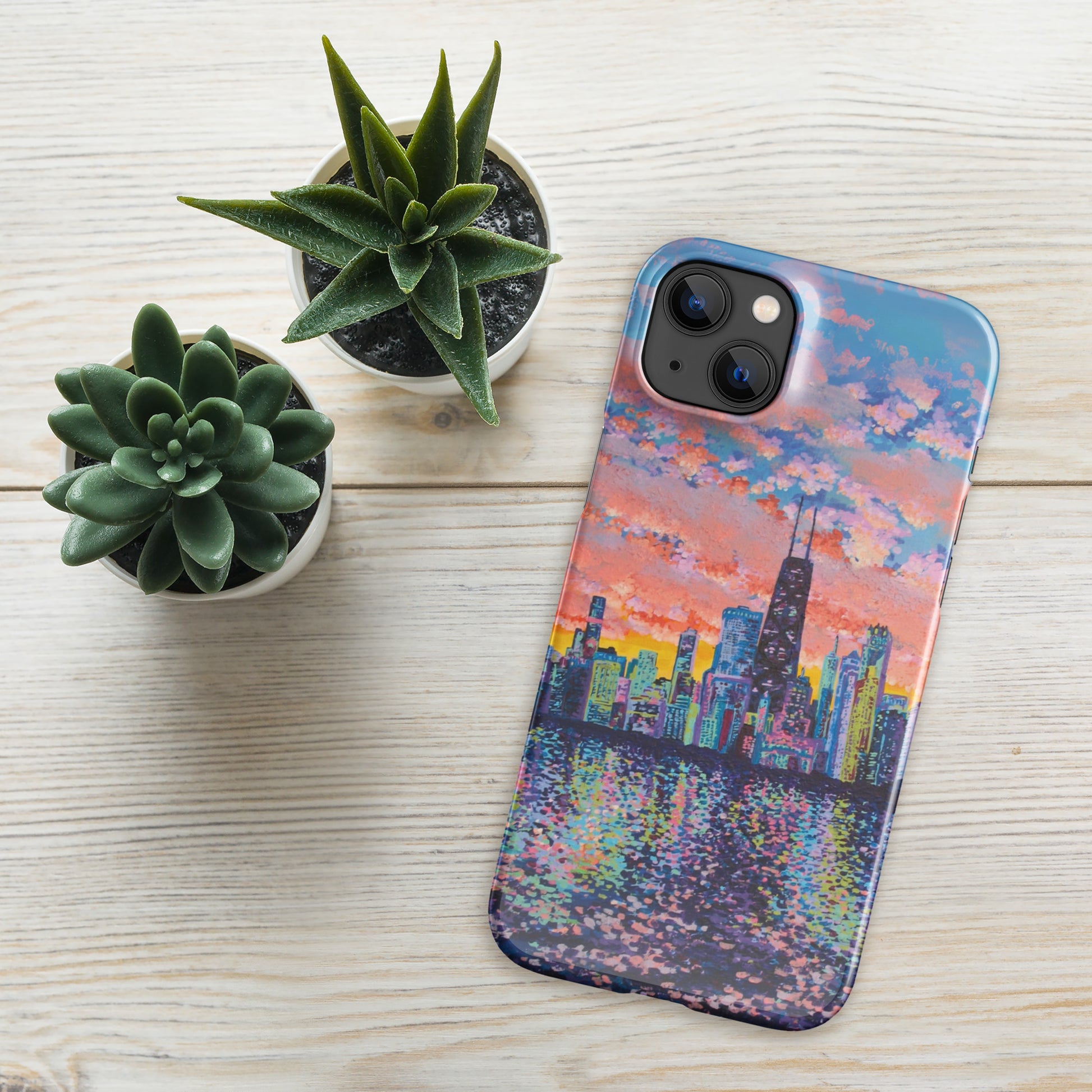 This love letter to Chicago explodes with the dynamic energy of the city. Crafted in detailed color expressionism, it depicts the downtown skyline as the sun sets. The city’s iconic silhouette is affectionately mirrored in prismatic color over the glittering waters of Lake Michigan.