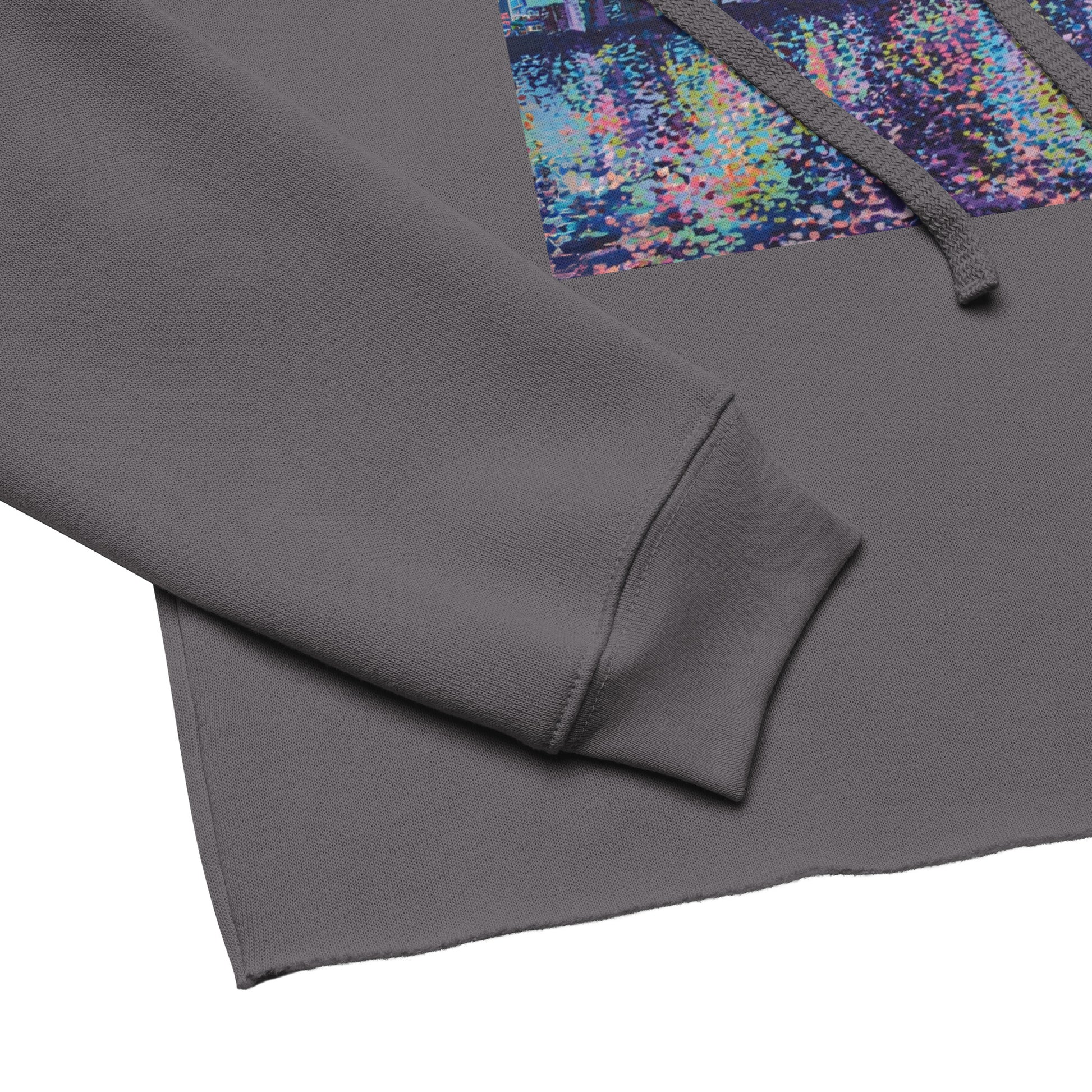 This love letter to Chicago explodes with the dynamic energy of the city. Crafted in detailed color expressionism, it depicts the downtown skyline as the sun sets. The city’s iconic silhouette is affectionately mirrored in prismatic color over the glittering waters of Lake Michigan.