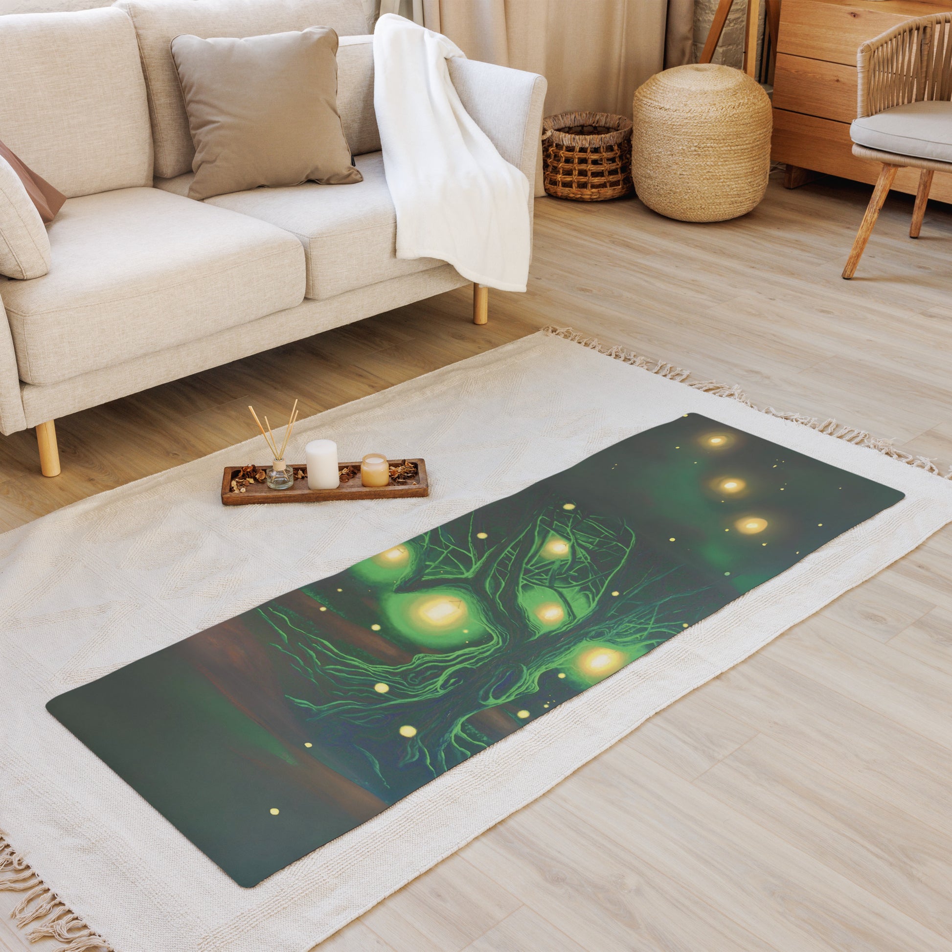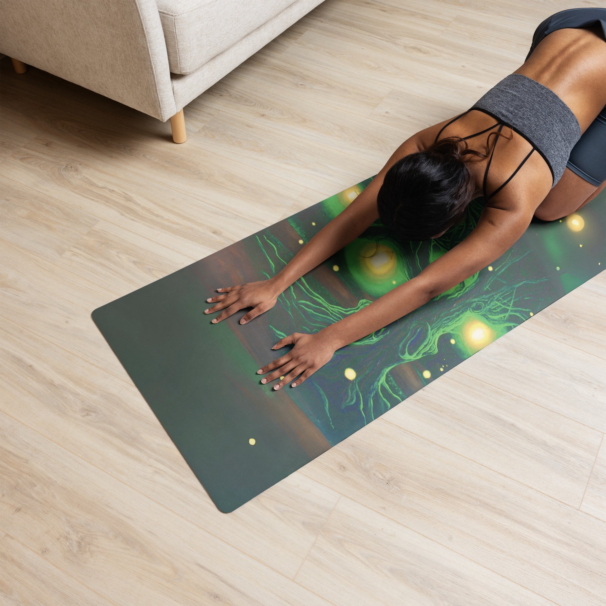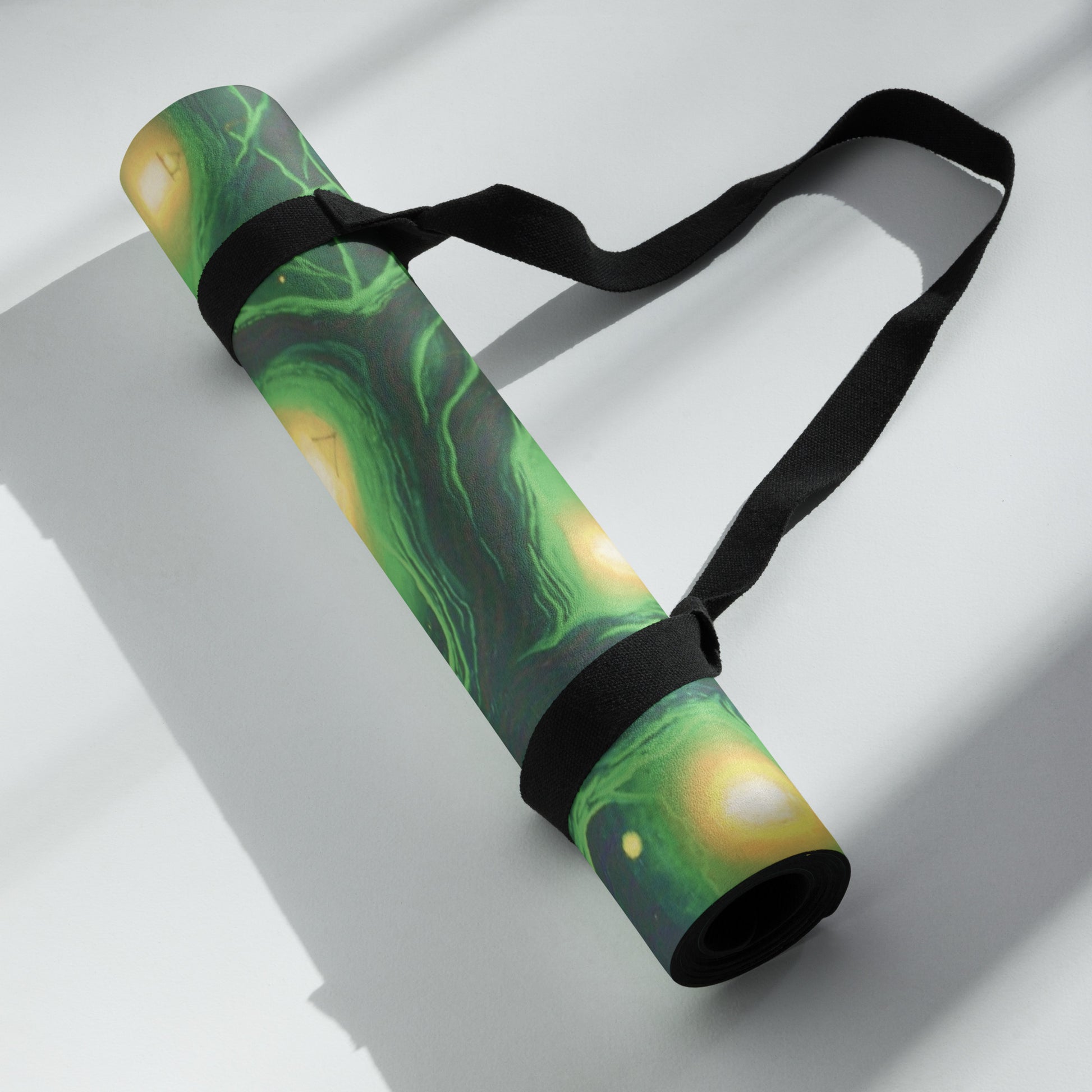 Bring color and joy to your workout or meditation space with this soft, microsuede yoga mat! Our sturdy yoga mats are made from premium, high-quality materials and provide both stability and comfort with anti-slip rubber on the bottom. A strap for carrying is included. Printed with care from Shannon Evans' Where Do You Find Your Light? painting!