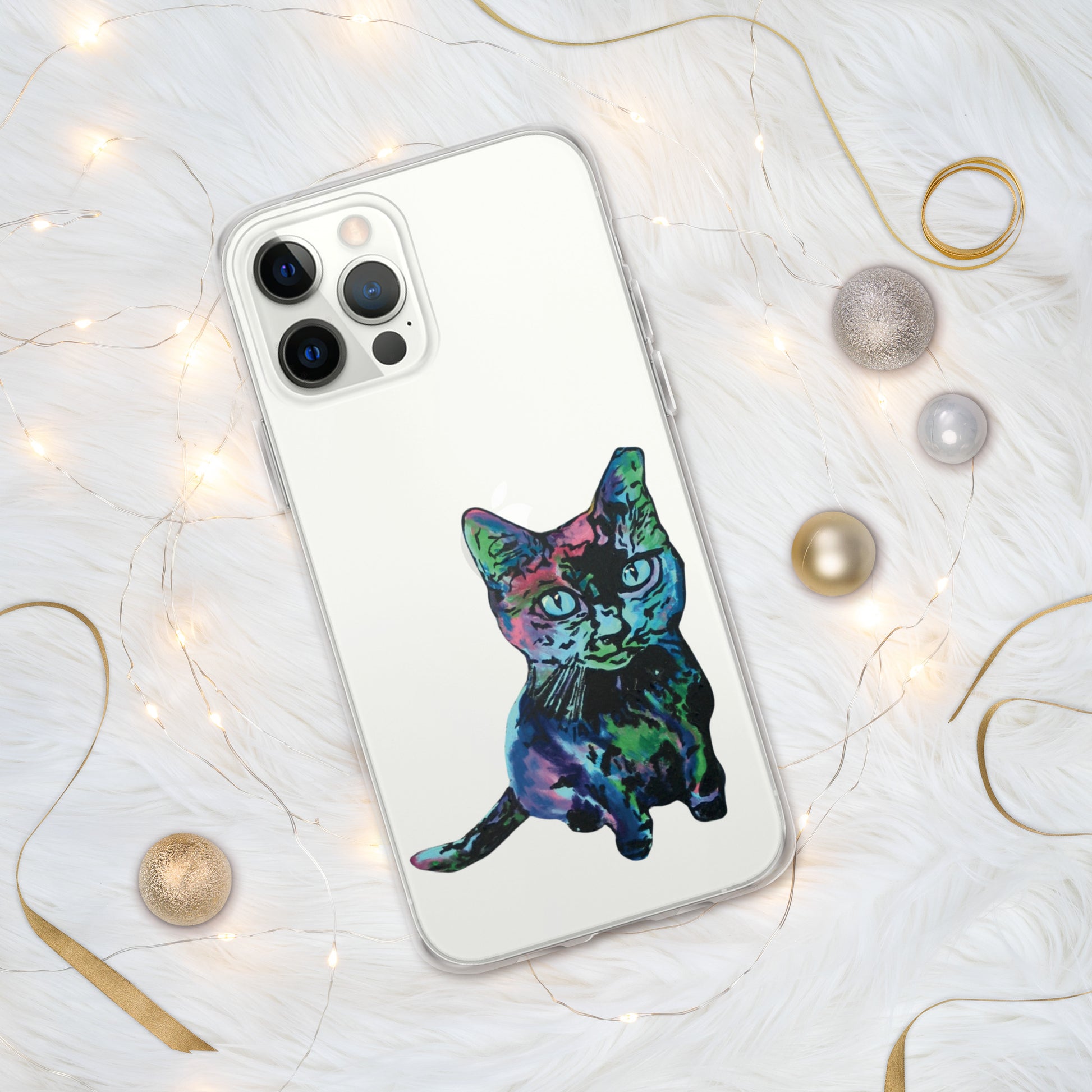Valentine is here to charm you! This artwork features a mesmerizing recipe of blues and greens that pulls the viewer into a dream. Sitting up on a comfy cushion is a poised black cat, whose unyielding gaze seems to hint at secrets within. This inquisitive cheerleader is ready to supervise you as needed.