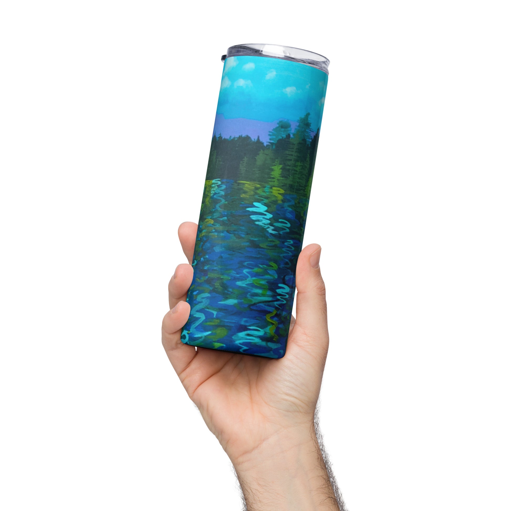 Boundary bids you to dive into the driving beauty of the open river. This artwork captures the tranquil majesty of the Boundary Waters Canoe Area Wilderness in northern Minnesota, featuring a mischievous blend of blues and greens that infuses the viewer with a sense of boundlessness.