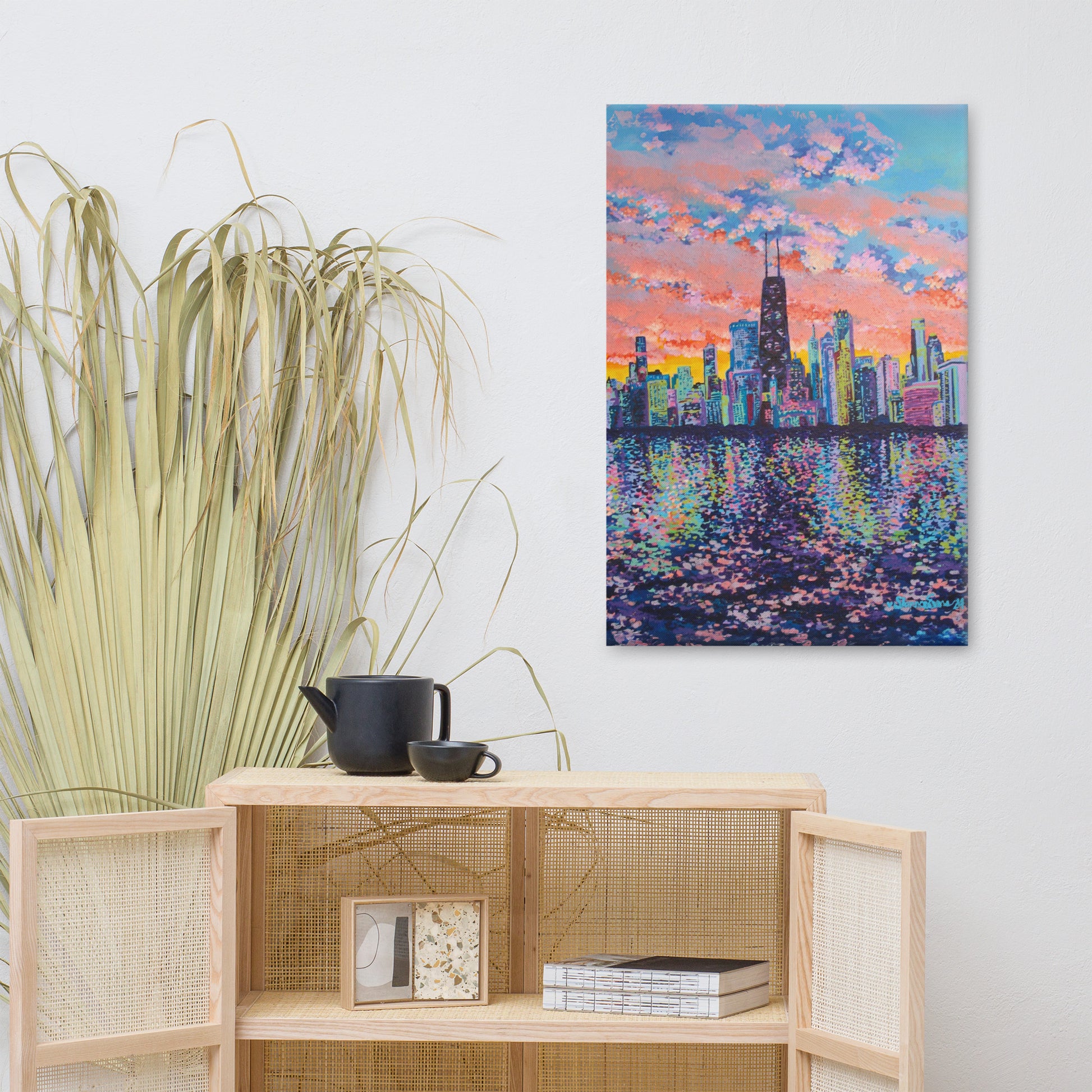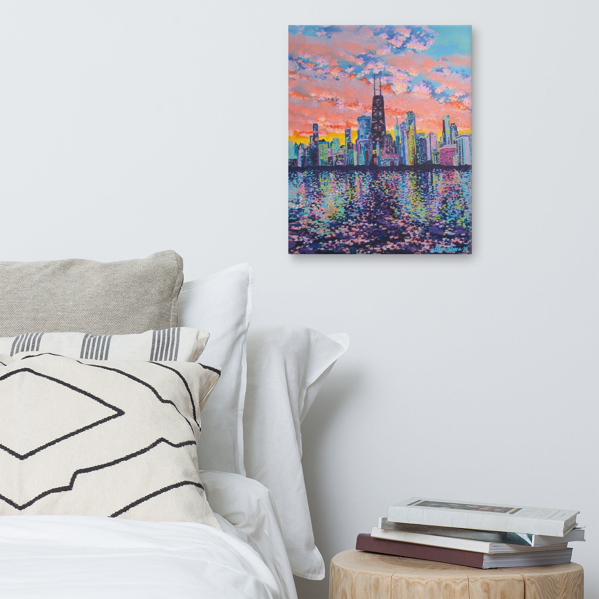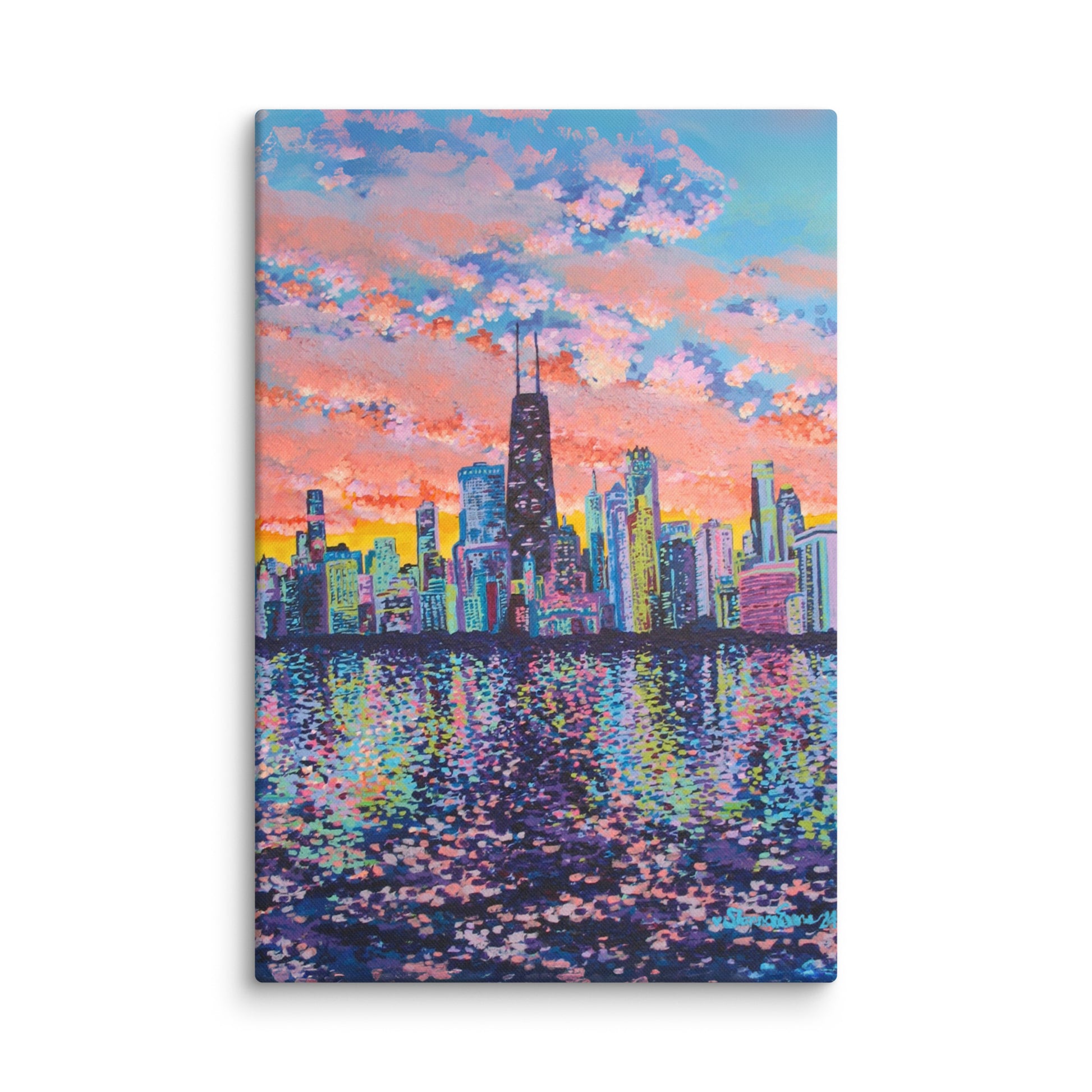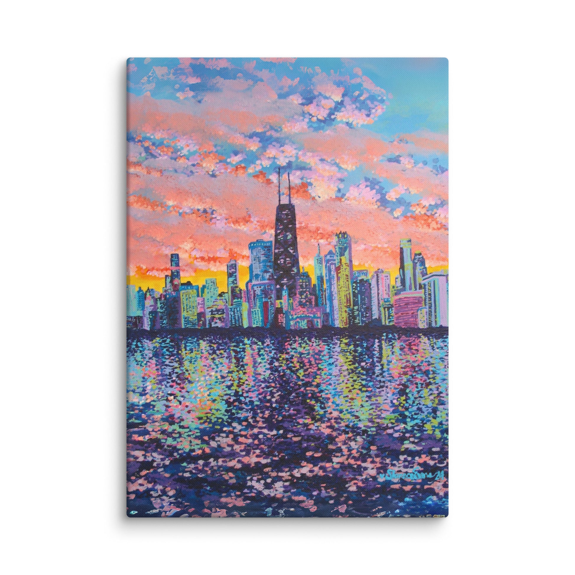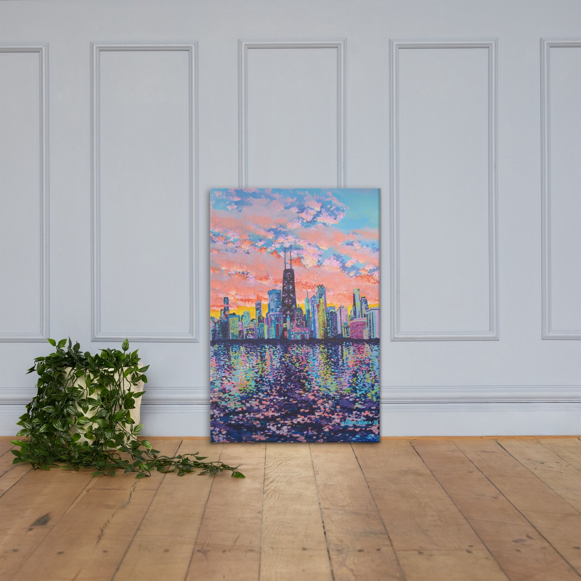 Whether you’re a lover of urban landscapes or drawn to the beauty of the setting sun, this painting offers a unique opportunity to own a piece of art that resonates with the pulse of Chicago.