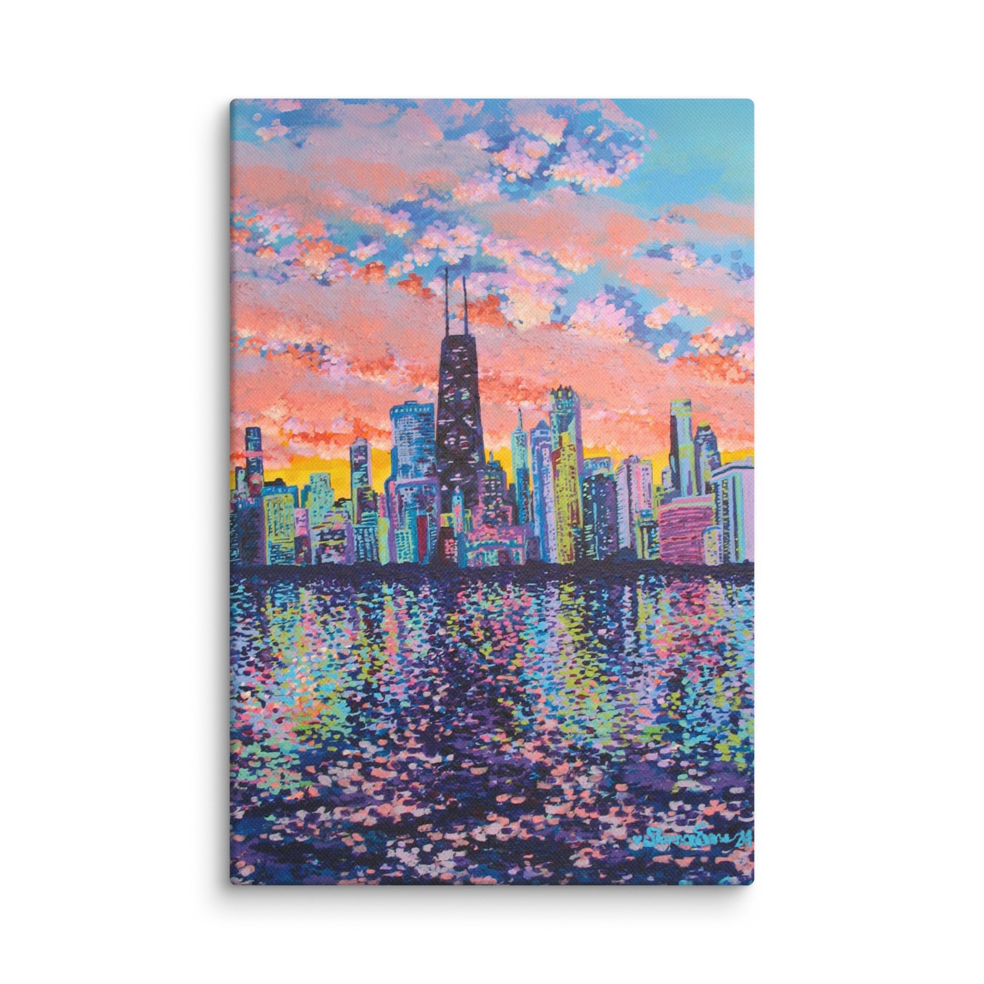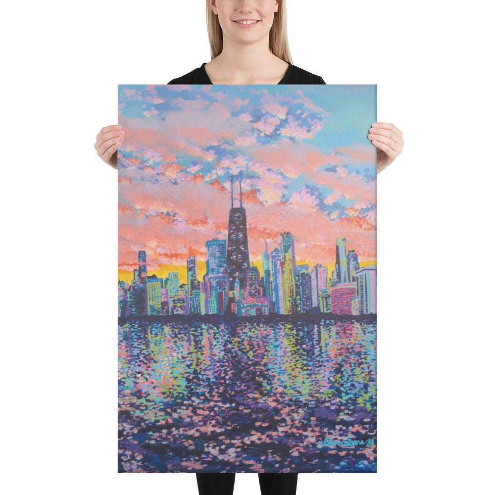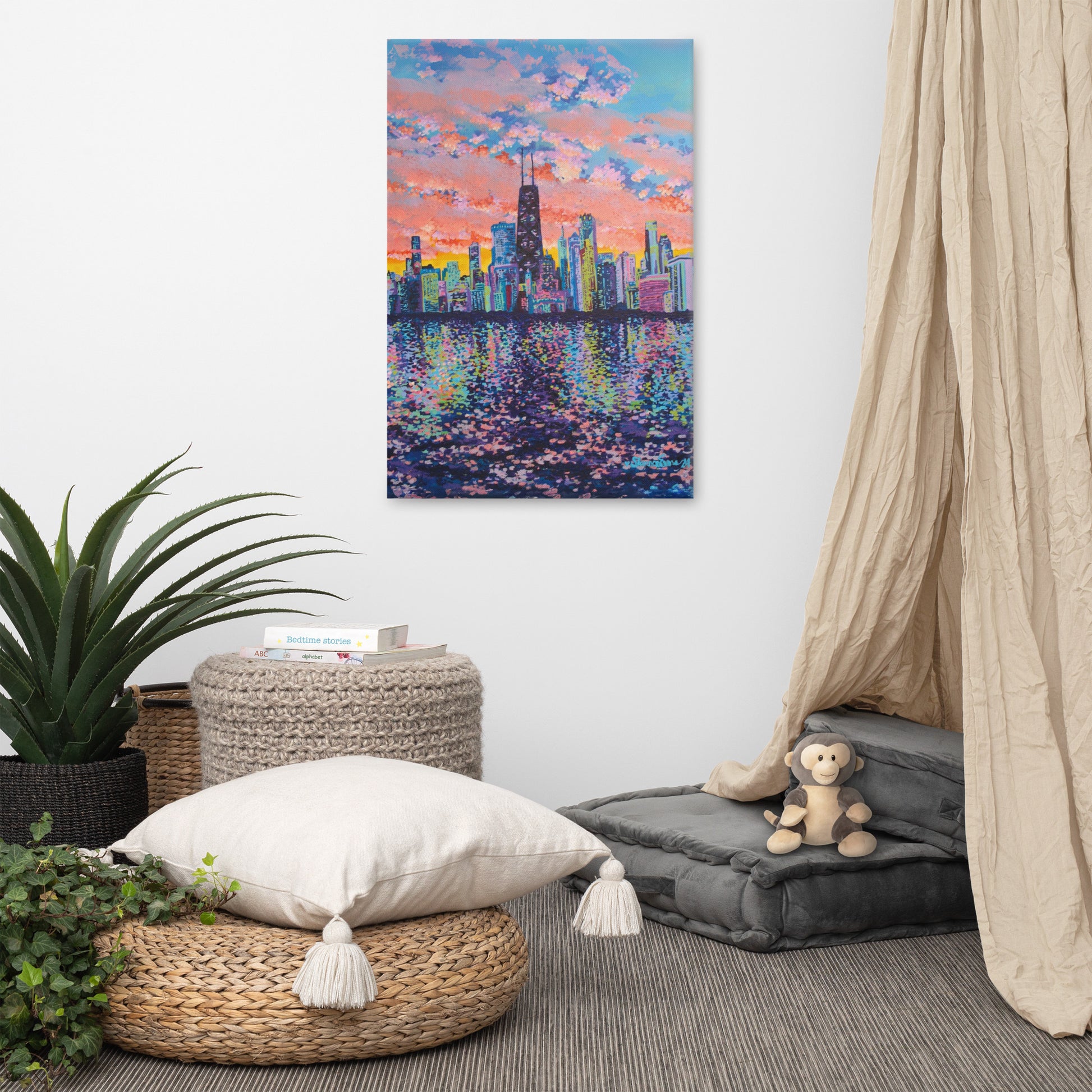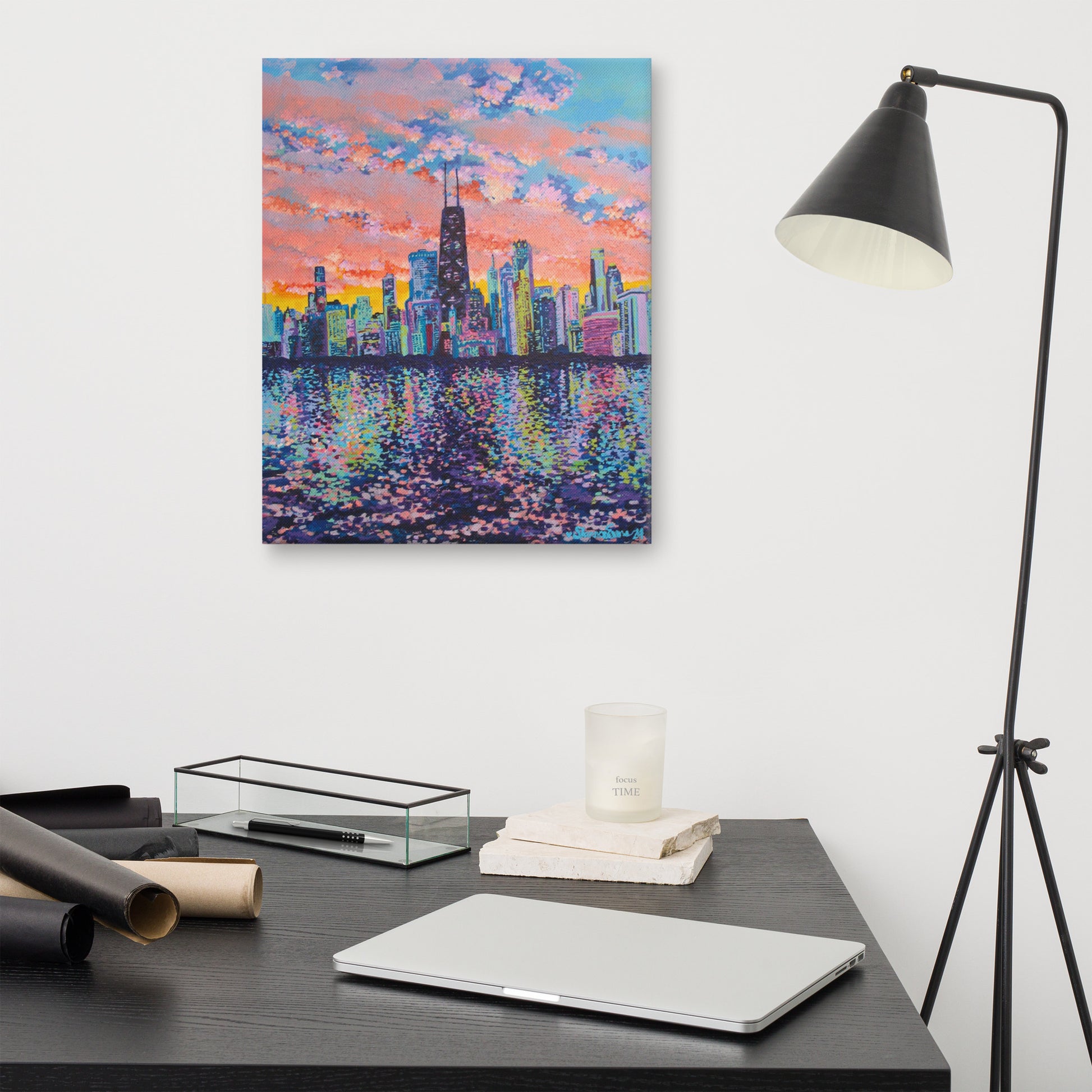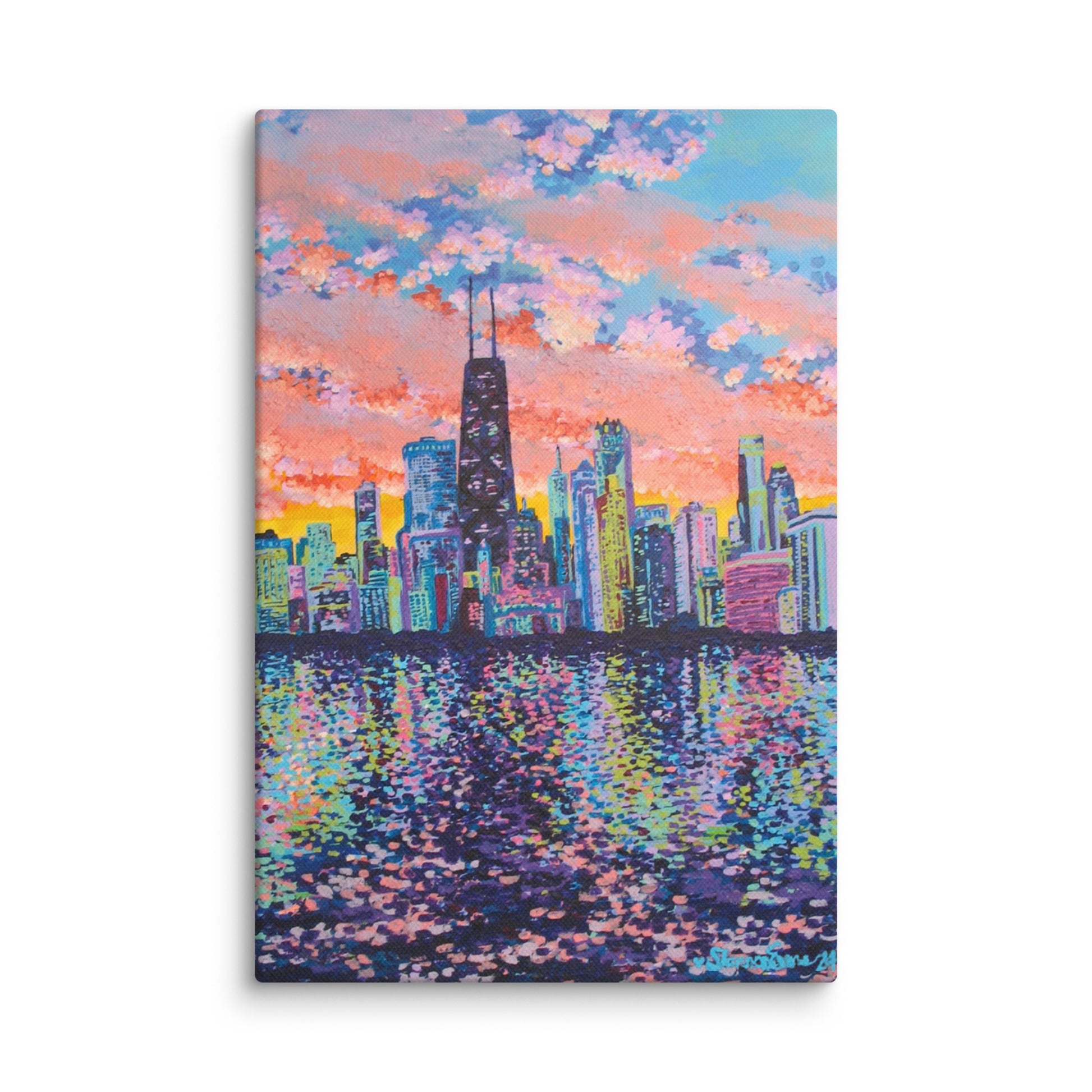 Whether you’re a lover of urban landscapes or drawn to the beauty of the setting sun, this painting offers a unique opportunity to own a piece of art that resonates with the pulse of Chicago.
