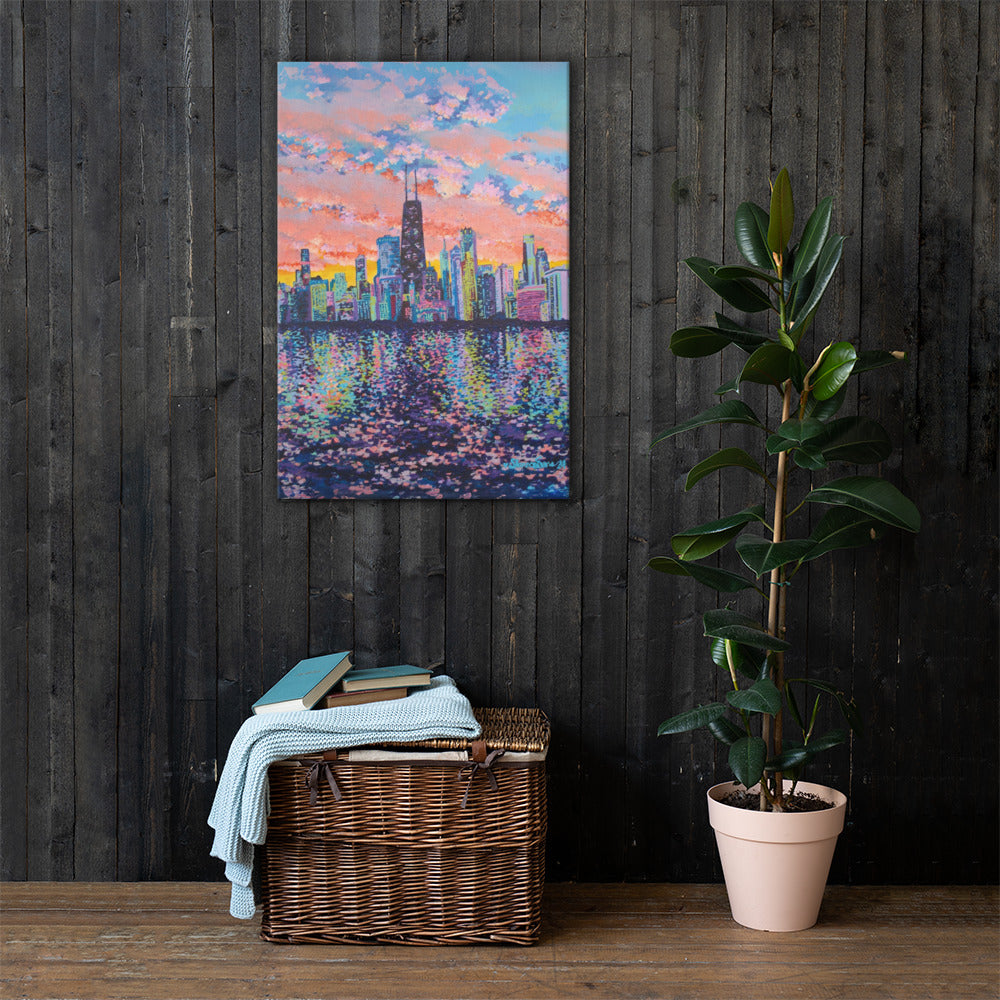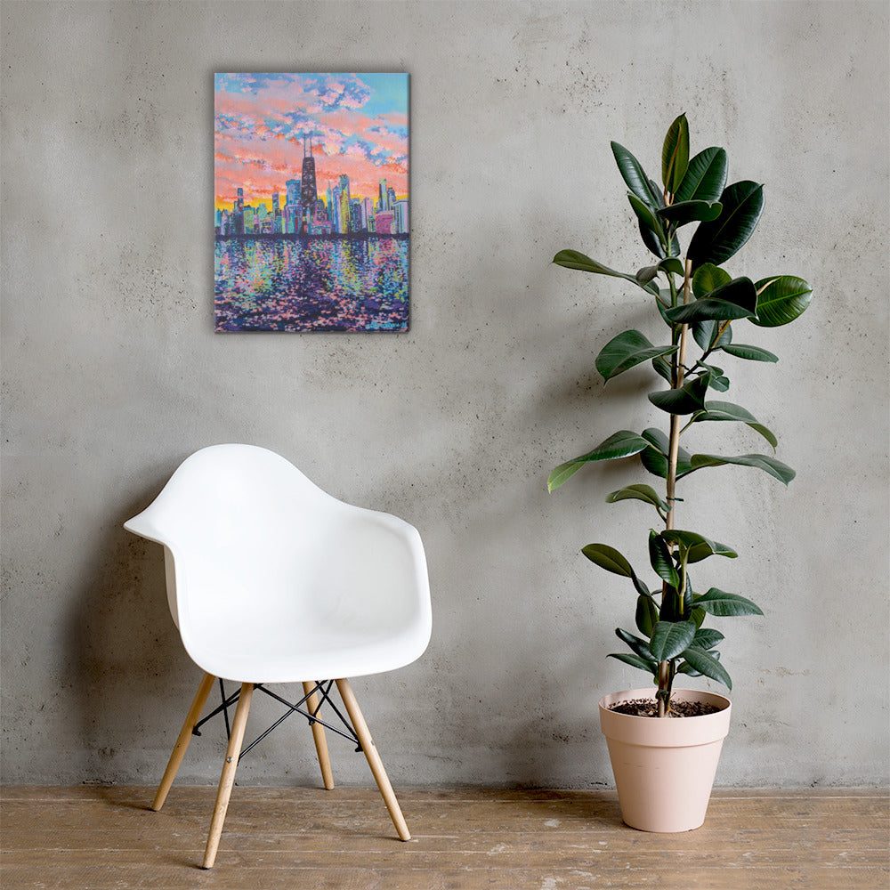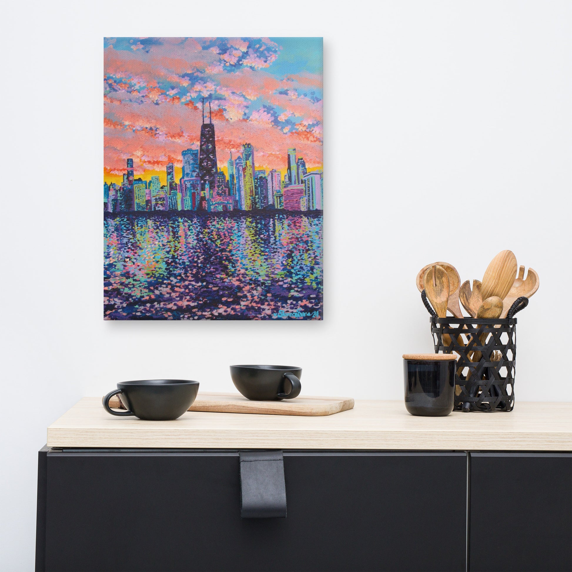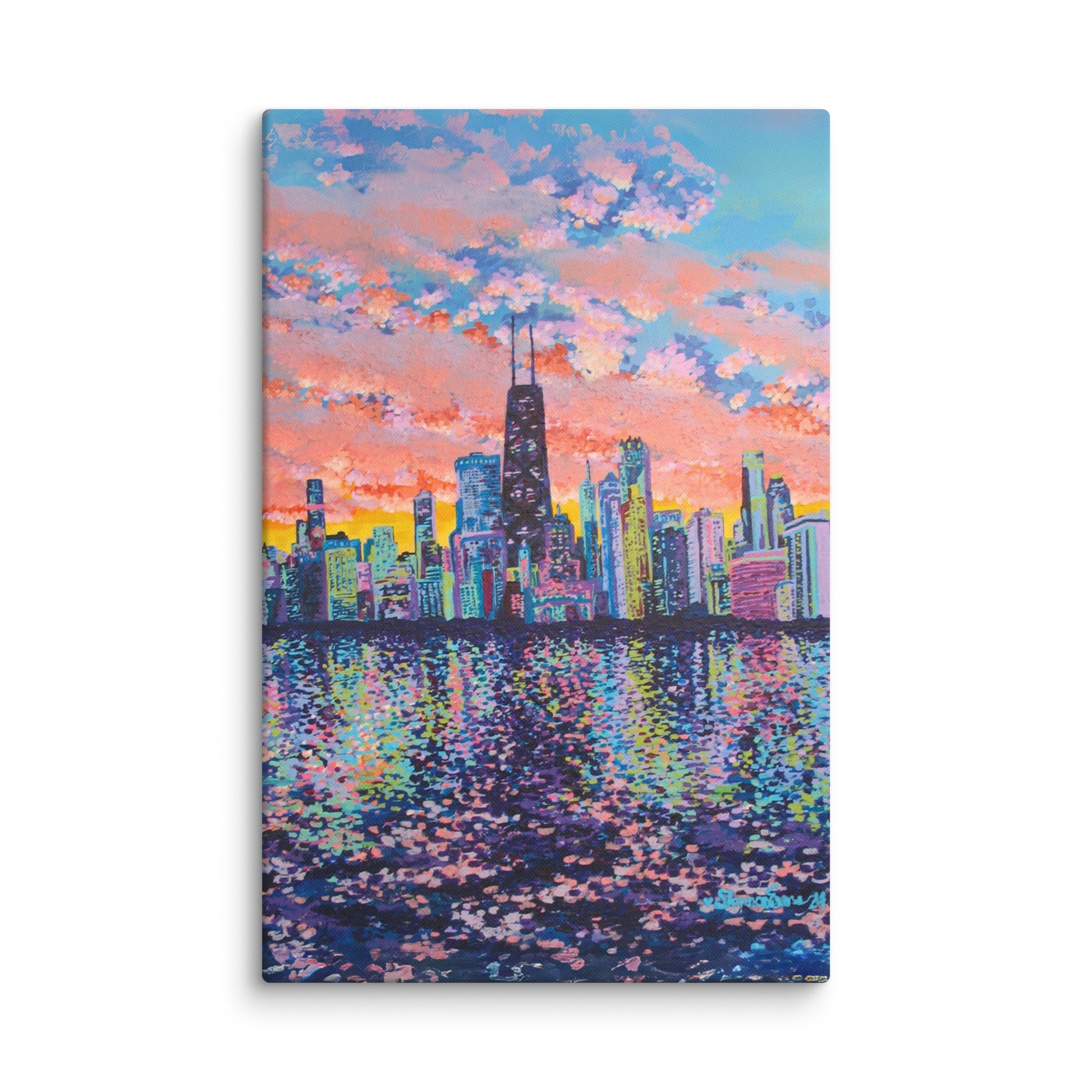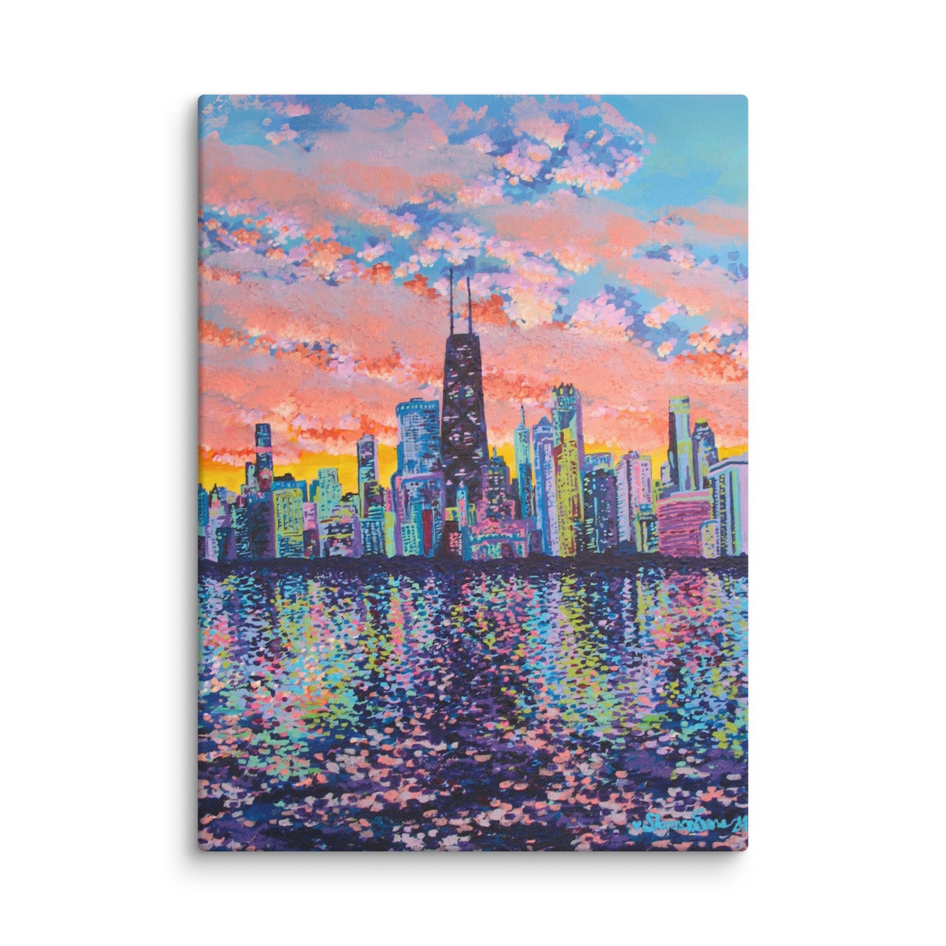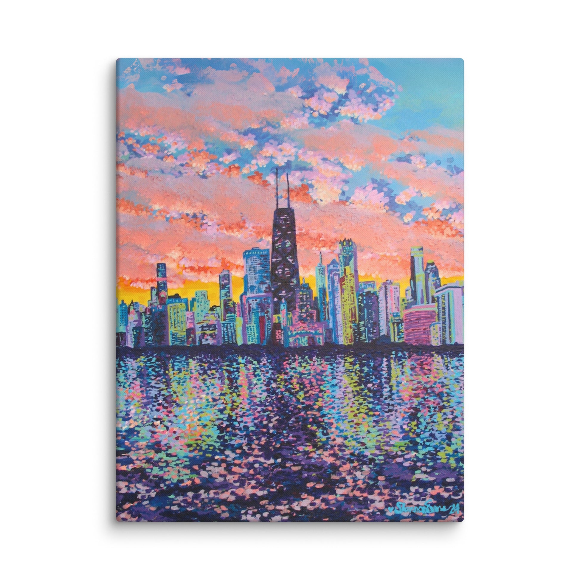 Whether you’re a lover of urban landscapes or drawn to the beauty of the setting sun, this painting offers a unique opportunity to own a piece of art that resonates with the pulse of Chicago.