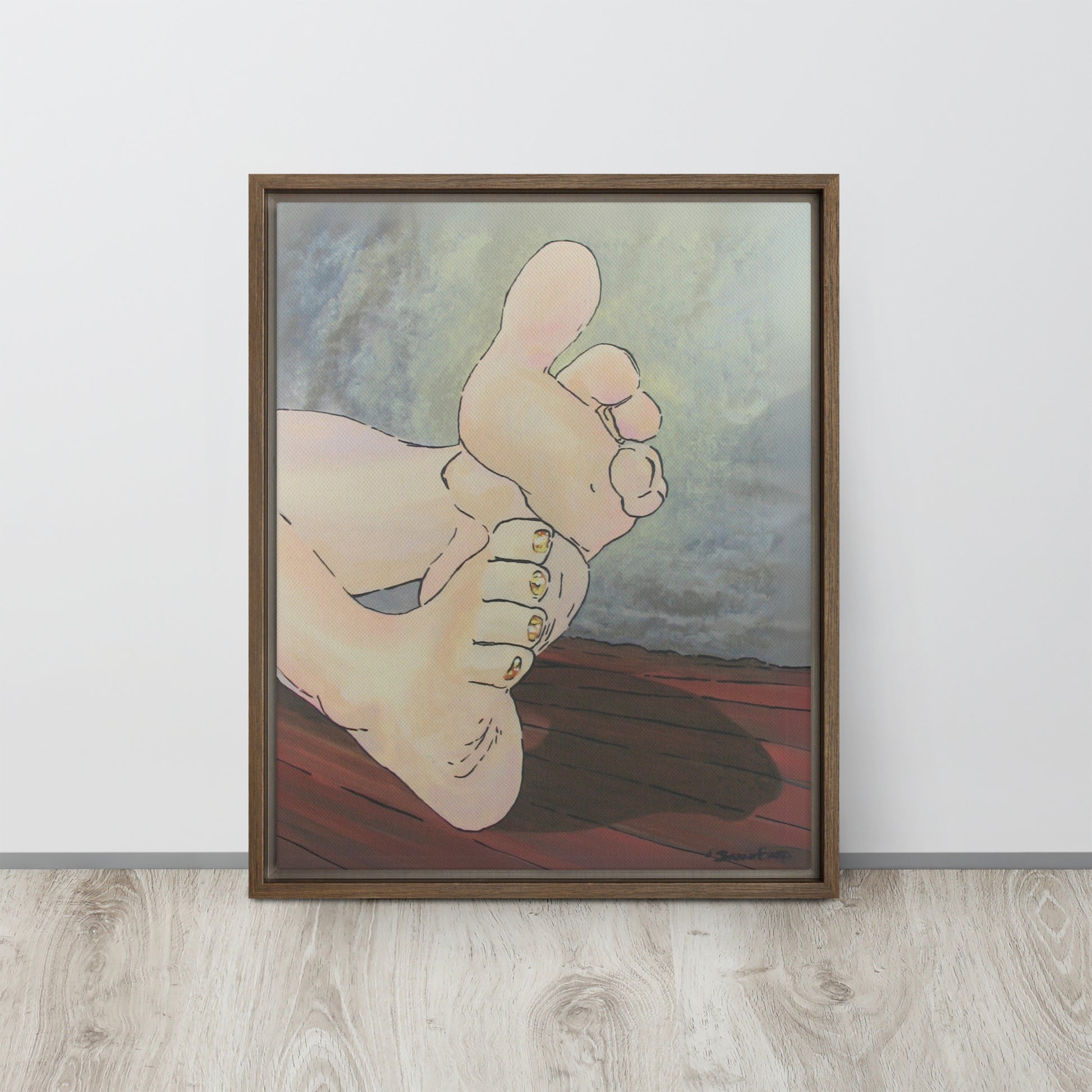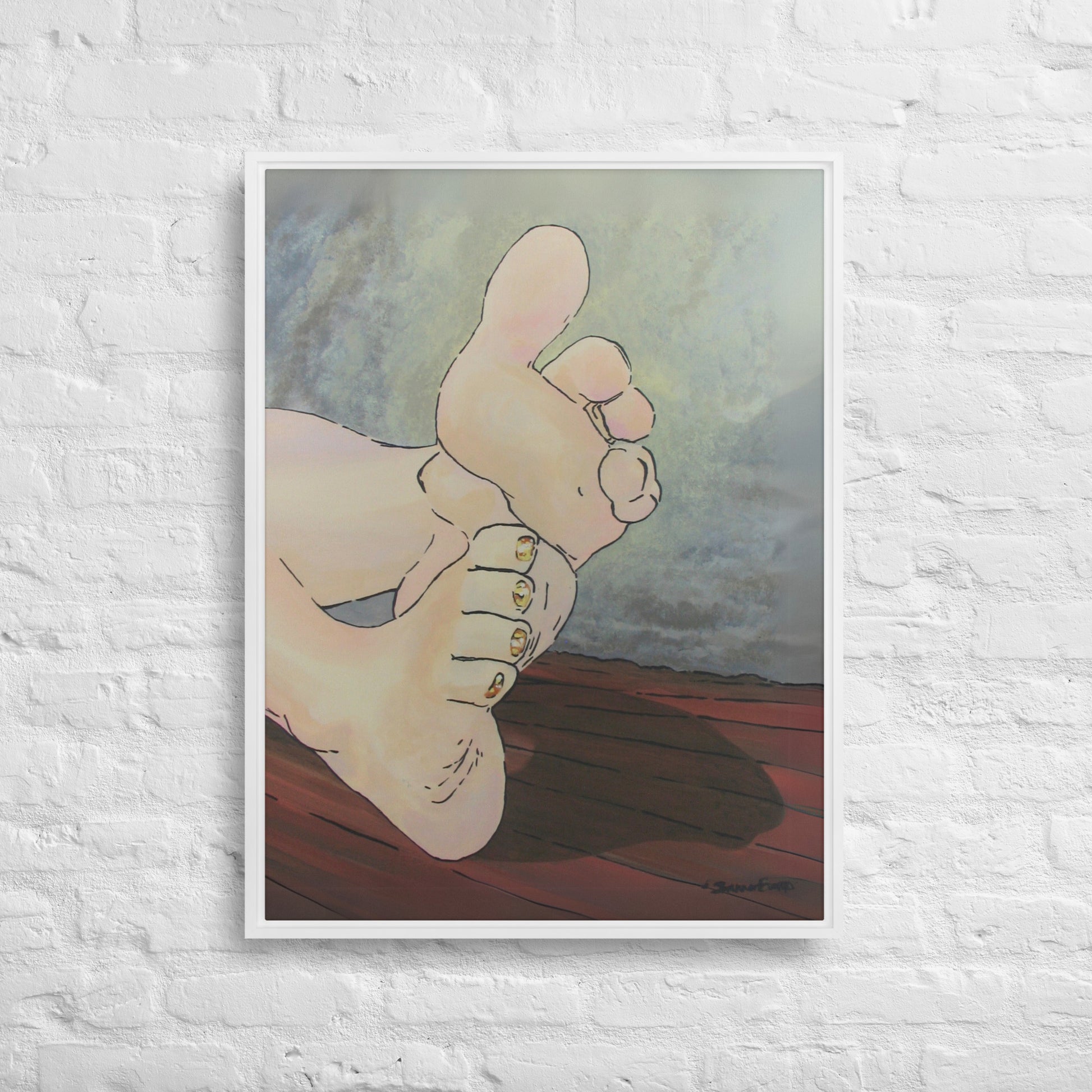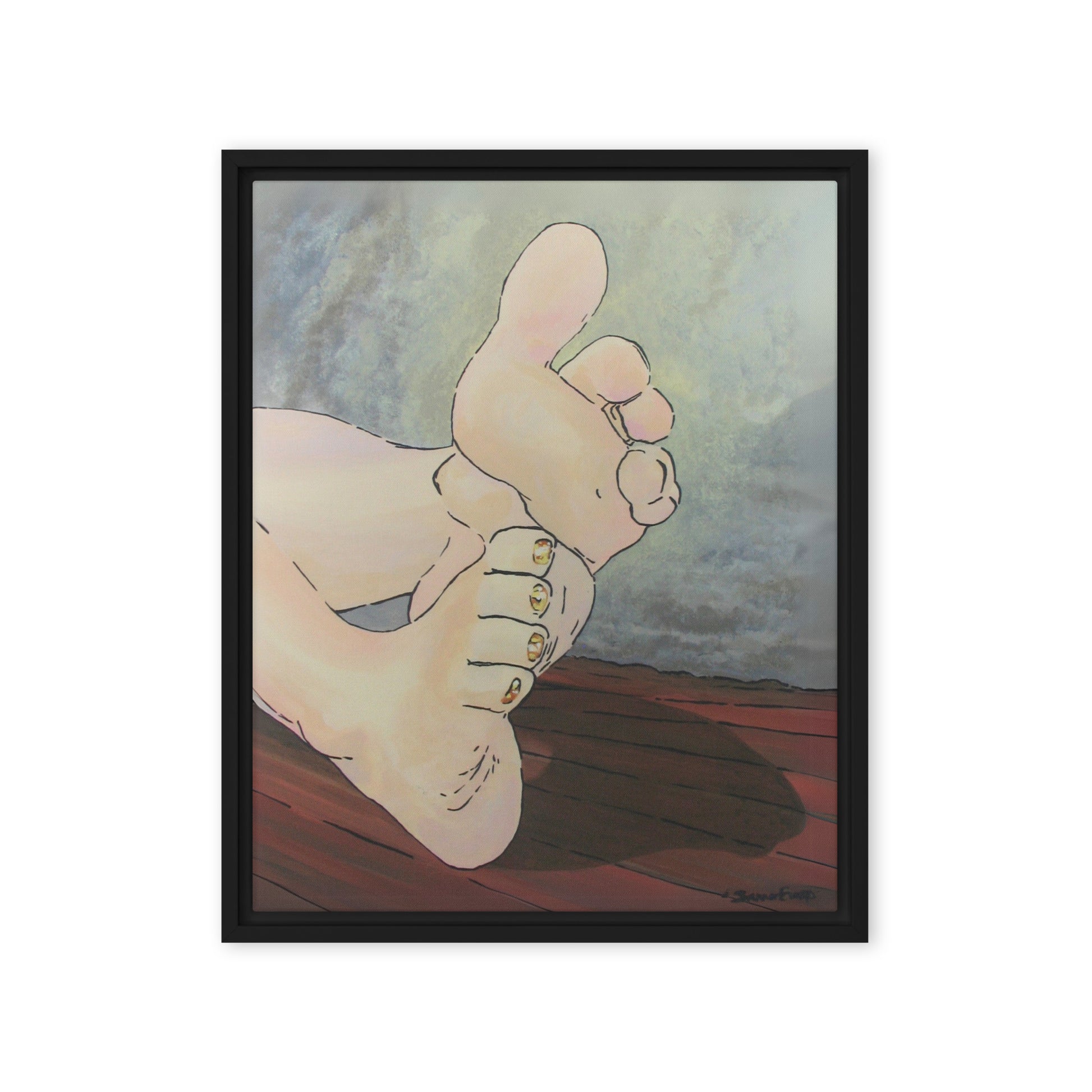 Unveil a hint of sweetness with Golden Confection, a charming artwork that displays the soft soles and plump toes of a pair of feminine feet, adorned with her gold, sparkly pedicure. With every glance, the golden shimmer of her toenail polish reflects an enchanting play of light as each pink toe bends into a treat.