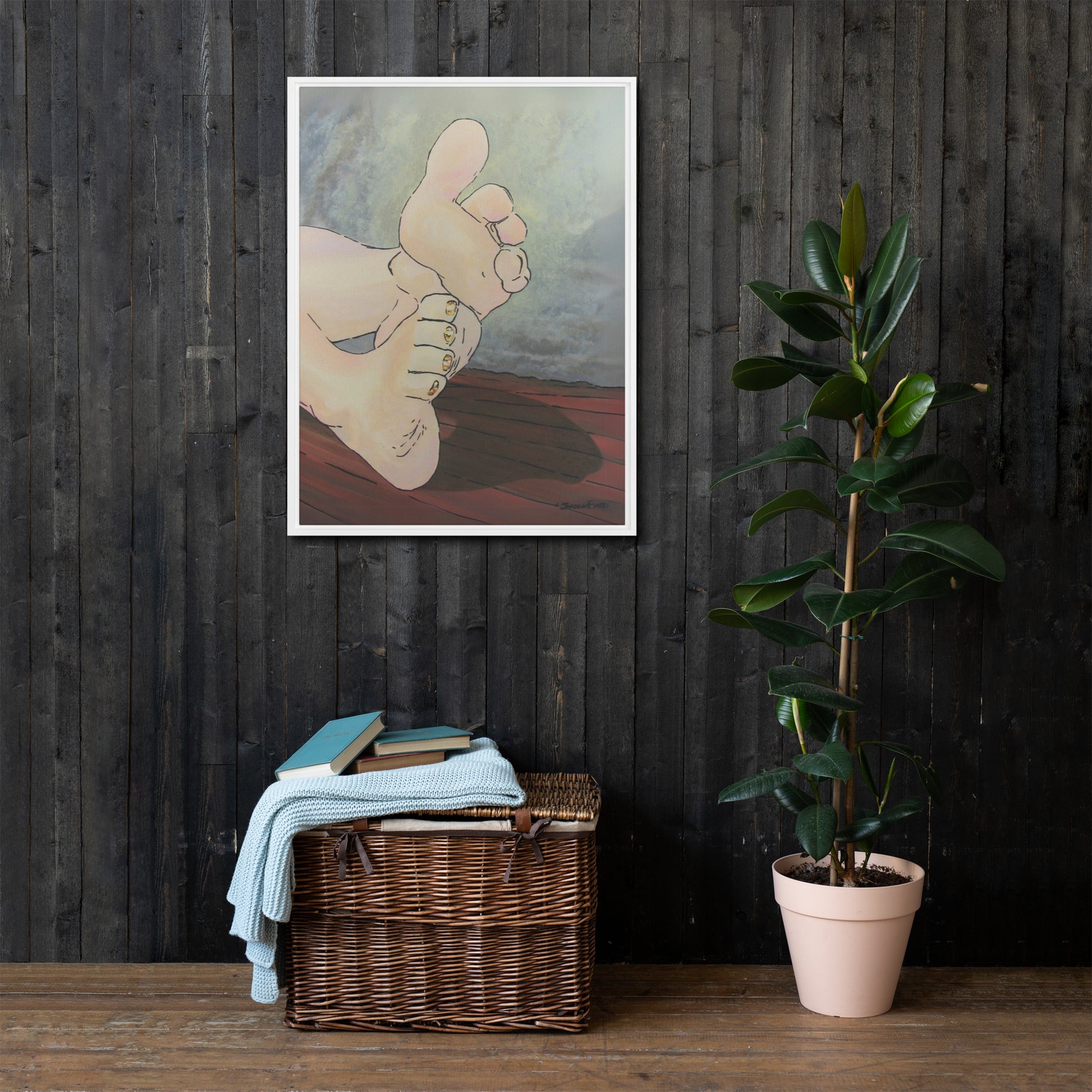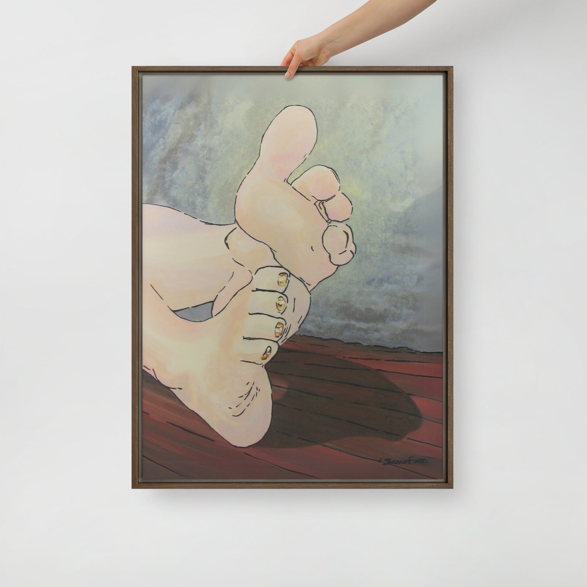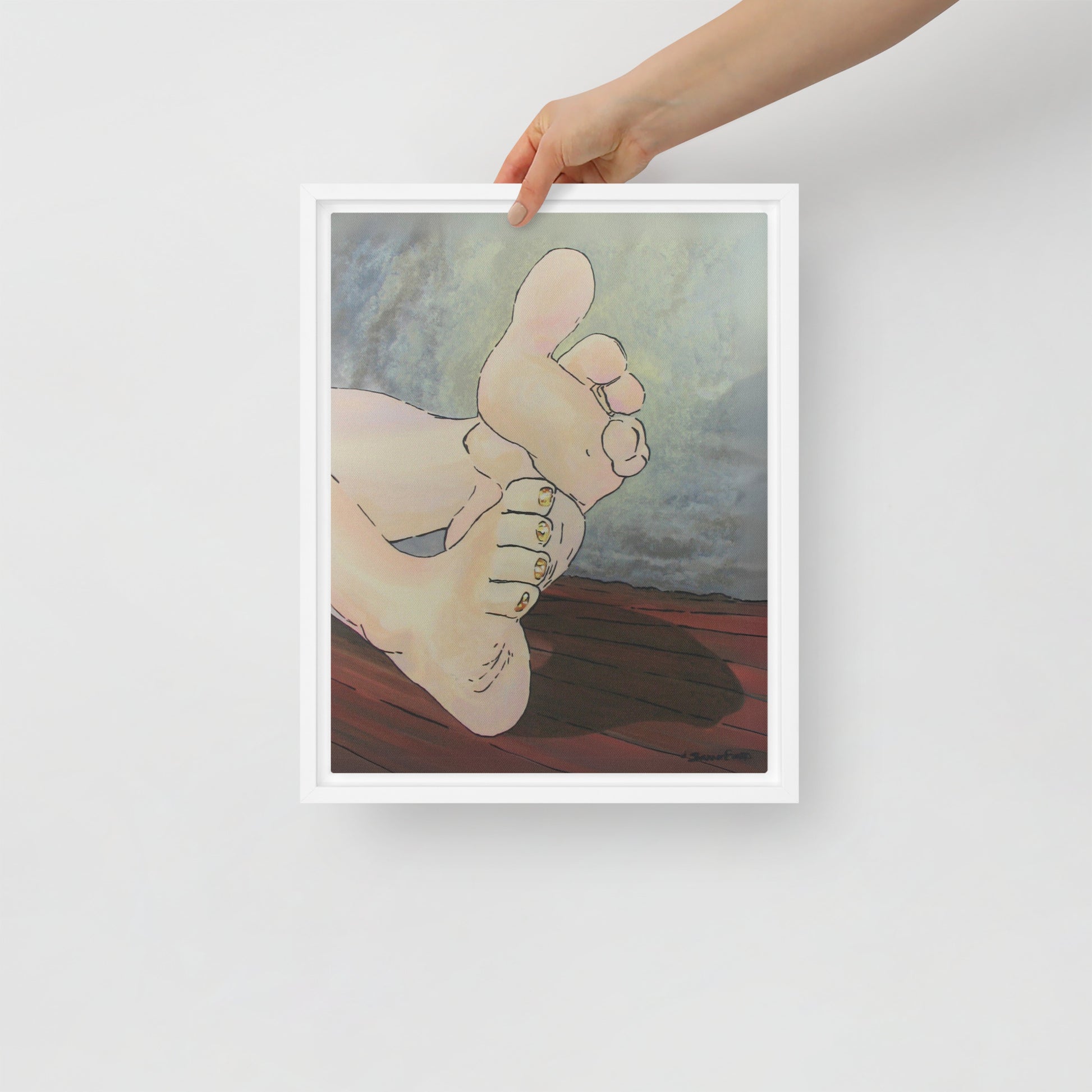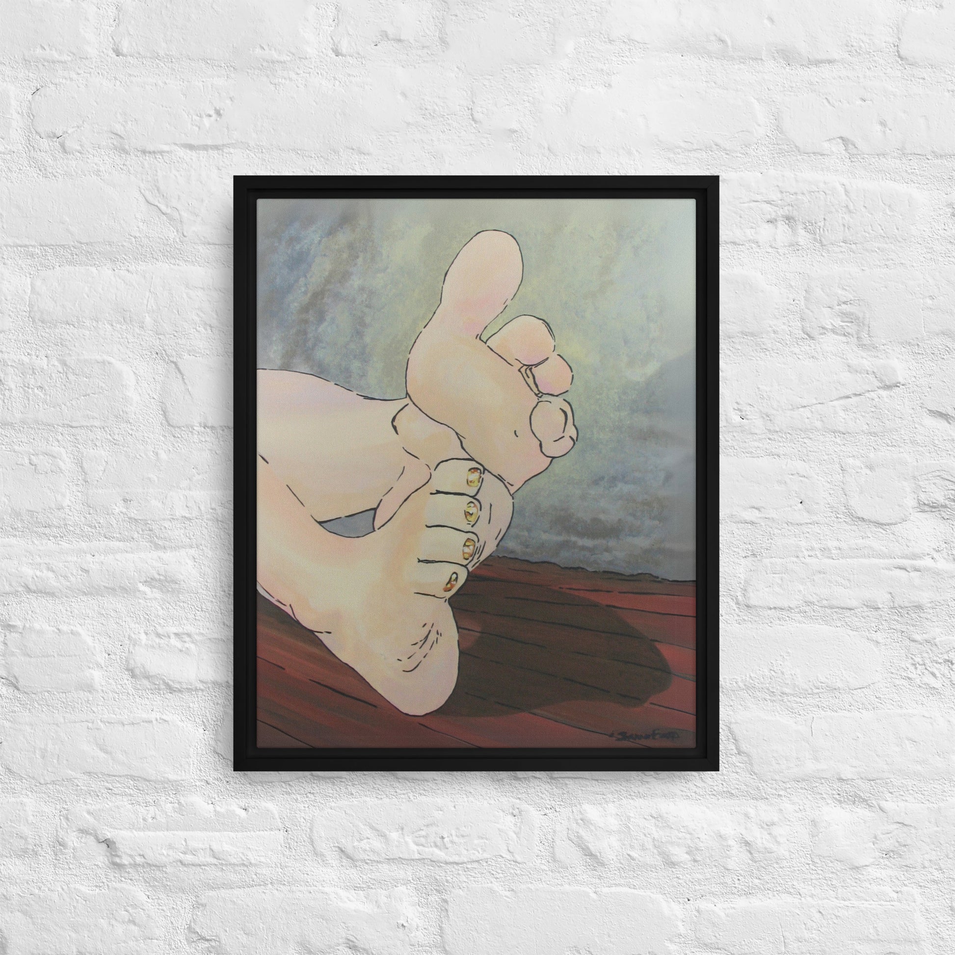 Unveil a hint of sweetness with Golden Confection, a charming artwork that displays the soft soles and plump toes of a pair of feminine feet, adorned with her gold, sparkly pedicure. With every glance, the golden shimmer of her toenail polish reflects an enchanting play of light as each pink toe bends into a treat.