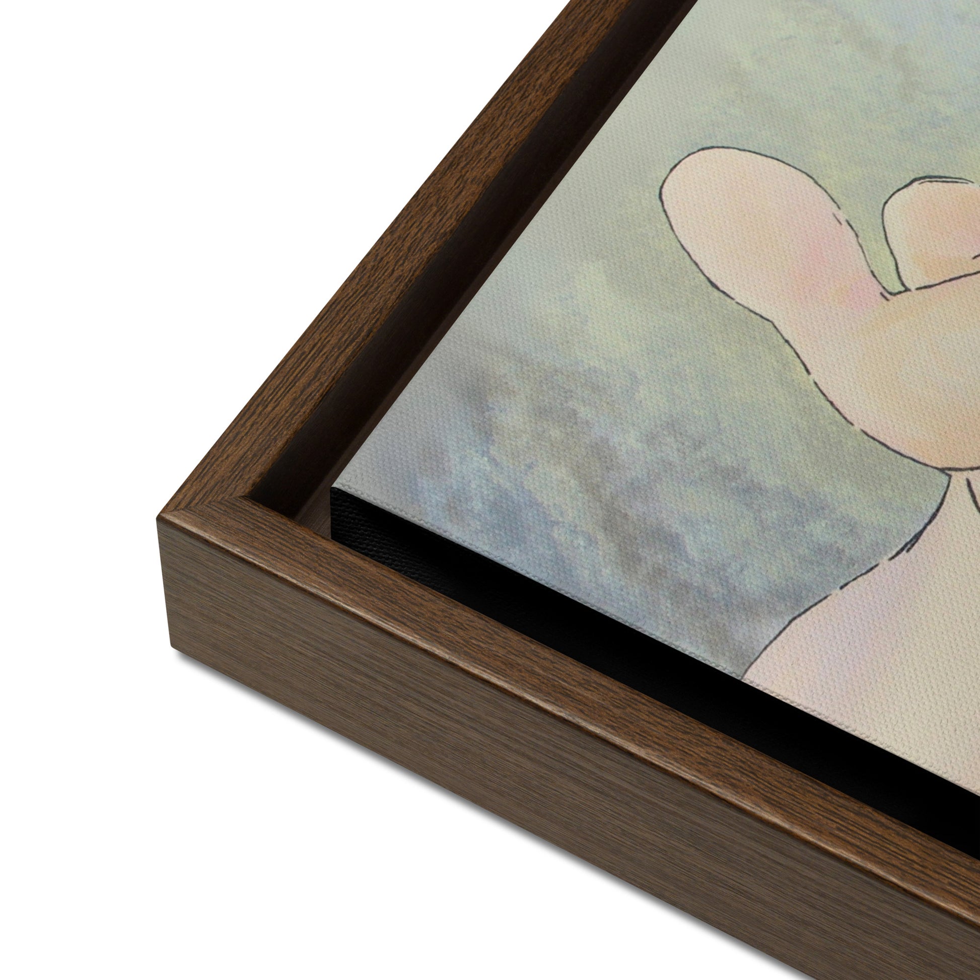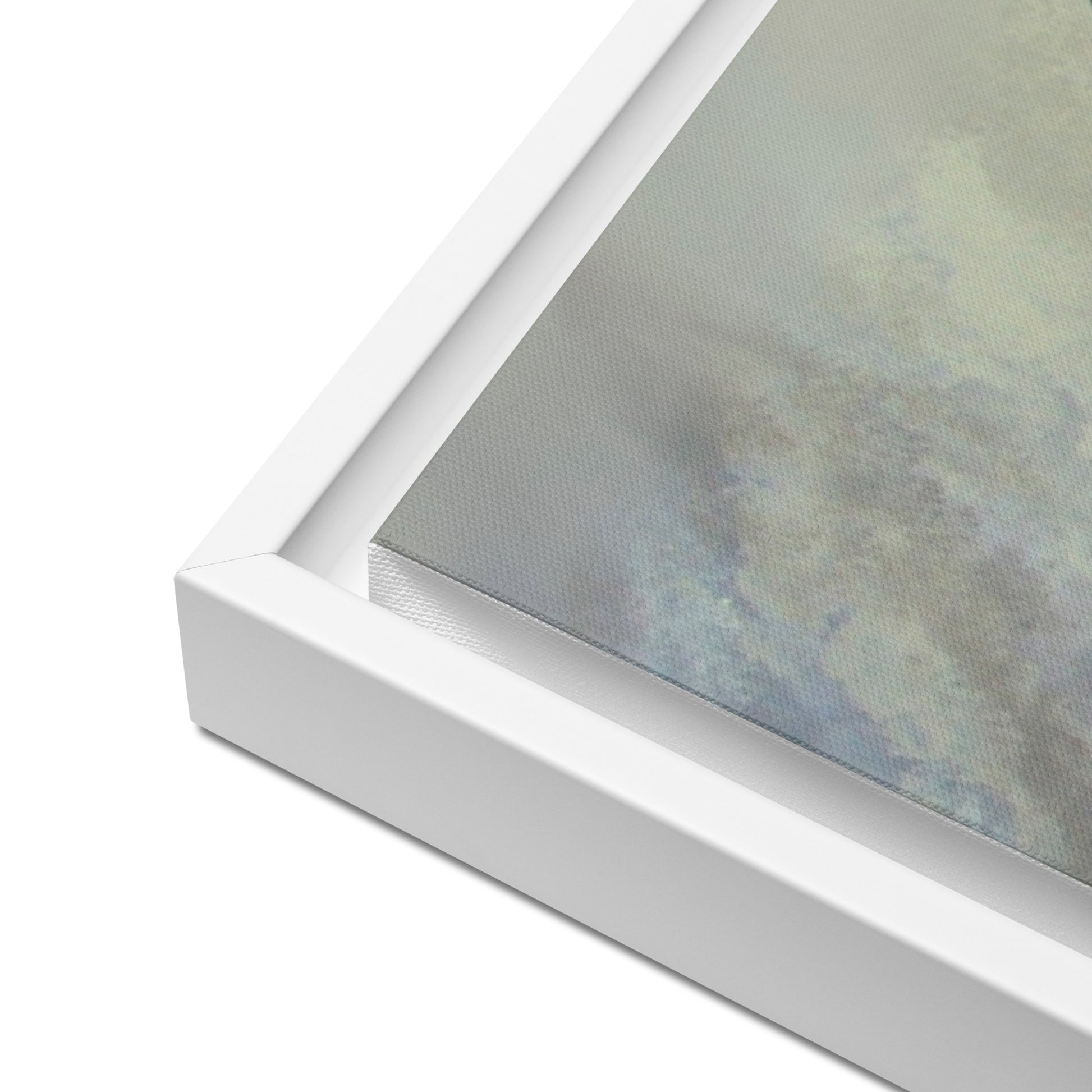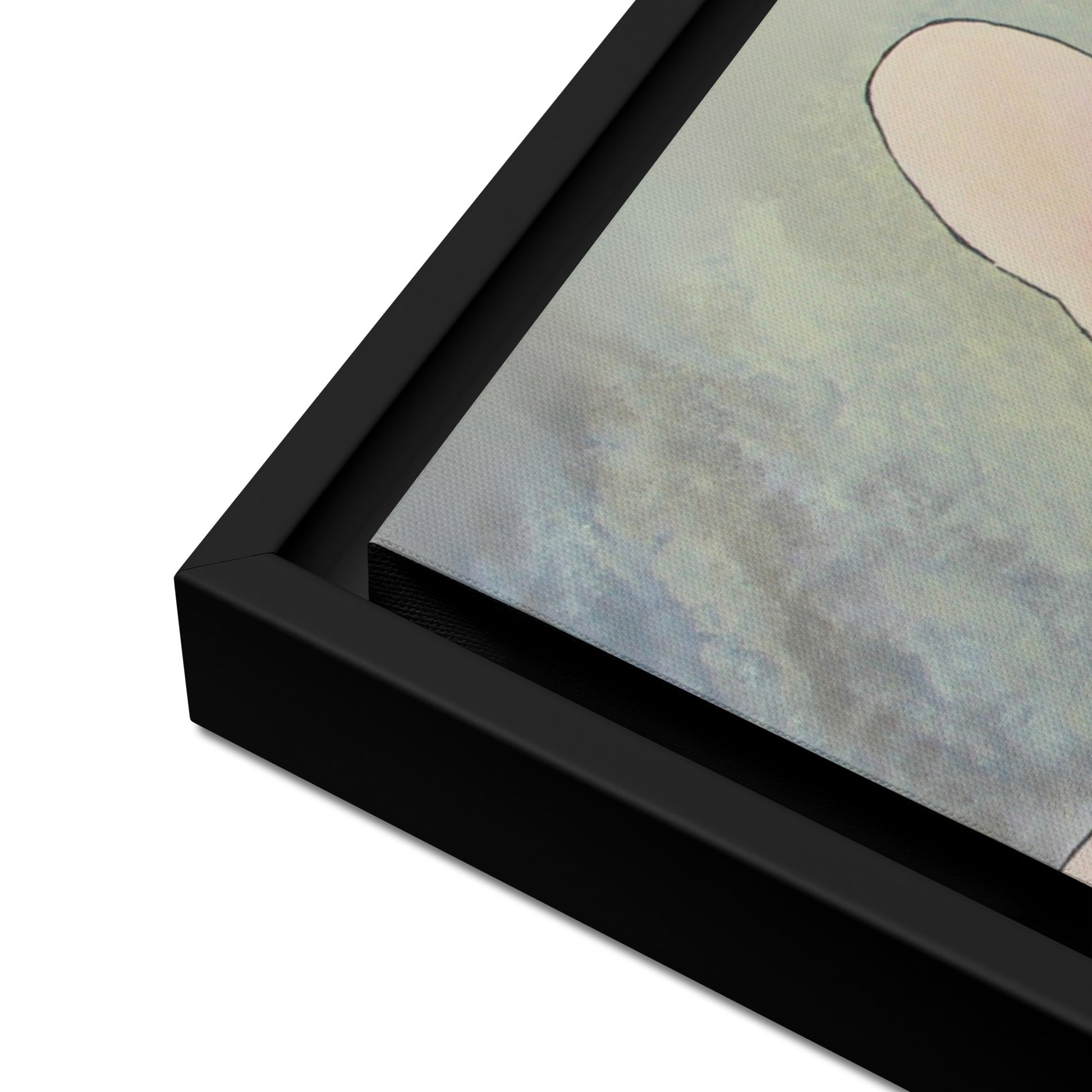 - The framed canvases with brown and black frames have a black inside around the canvas, and the canvases with white frames have a white inside around the canvas.