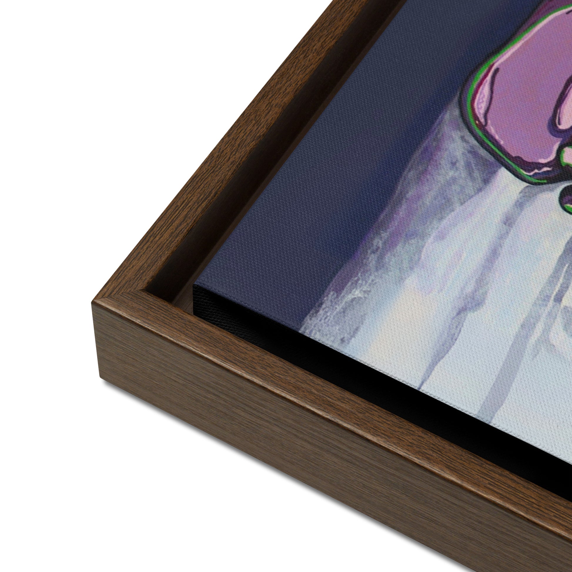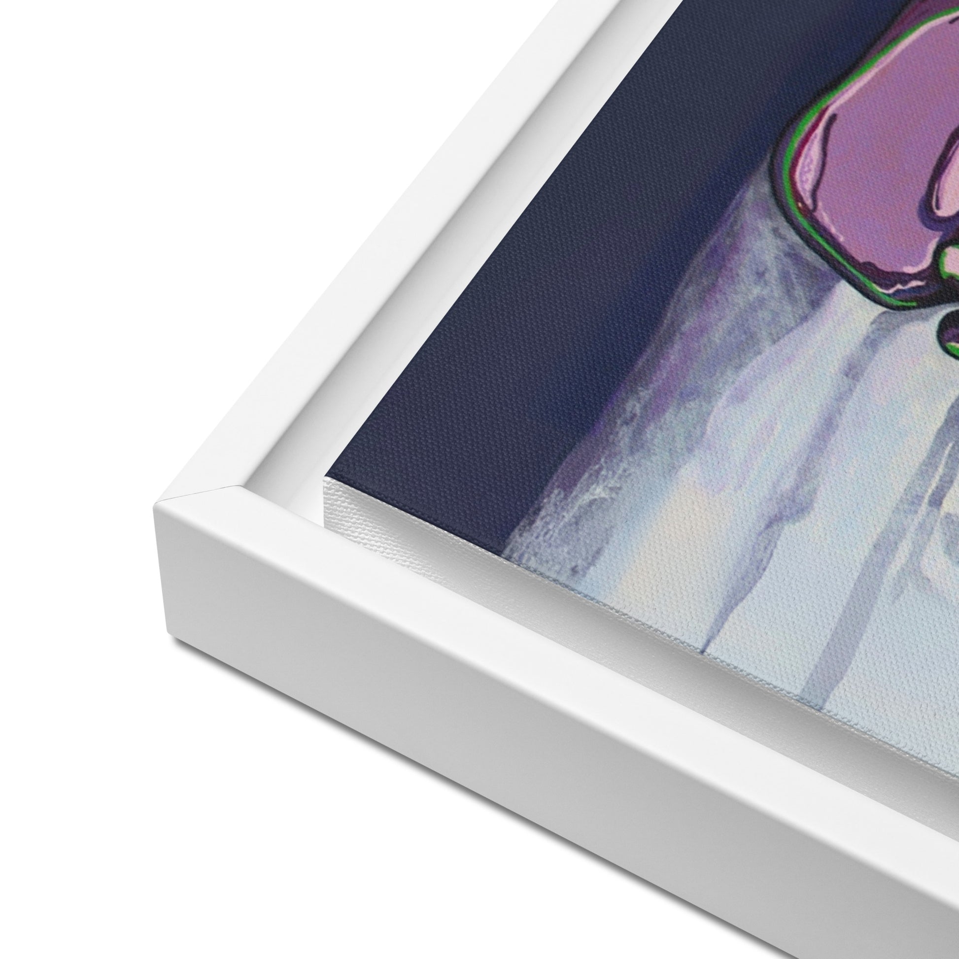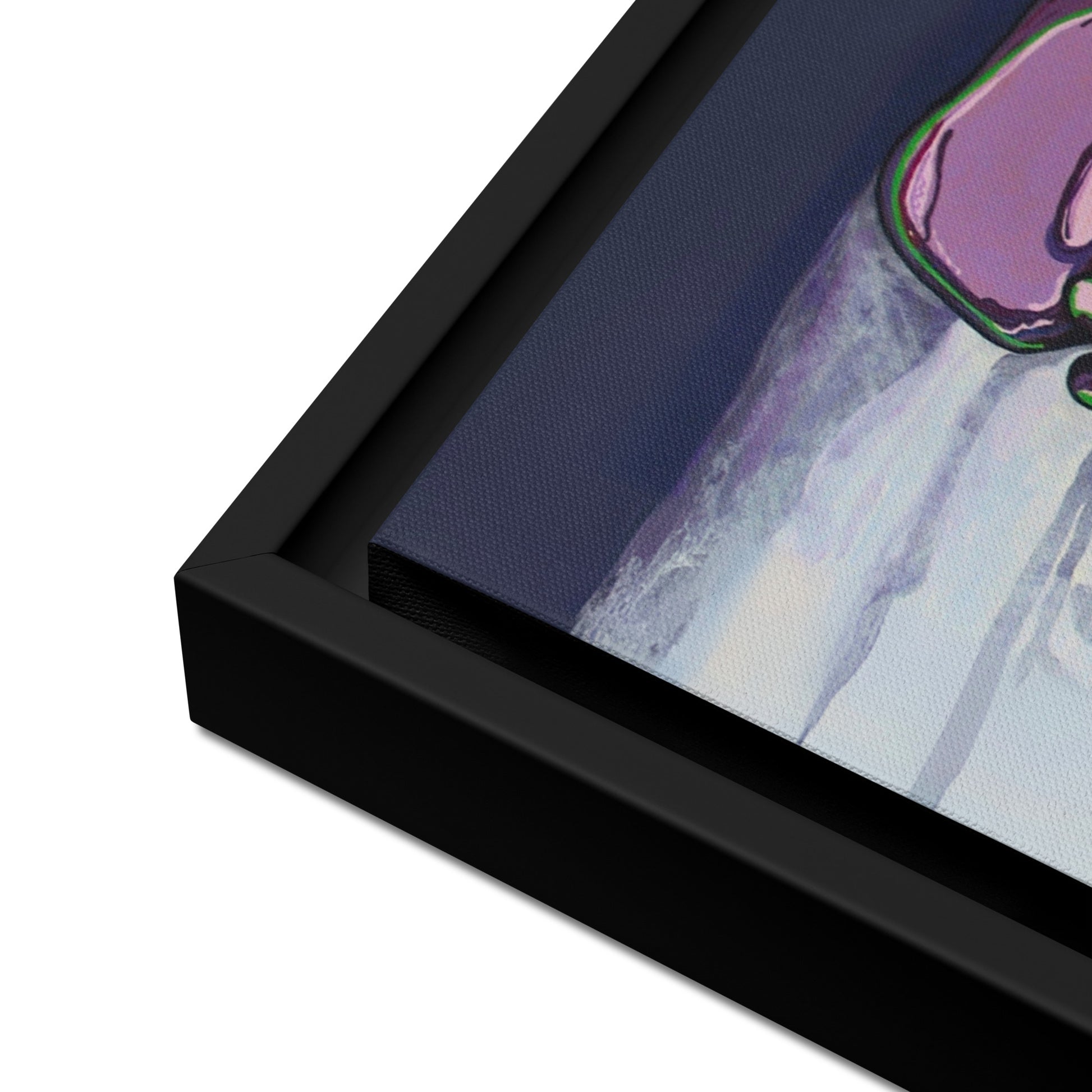 - The framed canvases with brown and black frames have a black inside around the canvas, and the canvases with white frames have a white inside around the canvas.