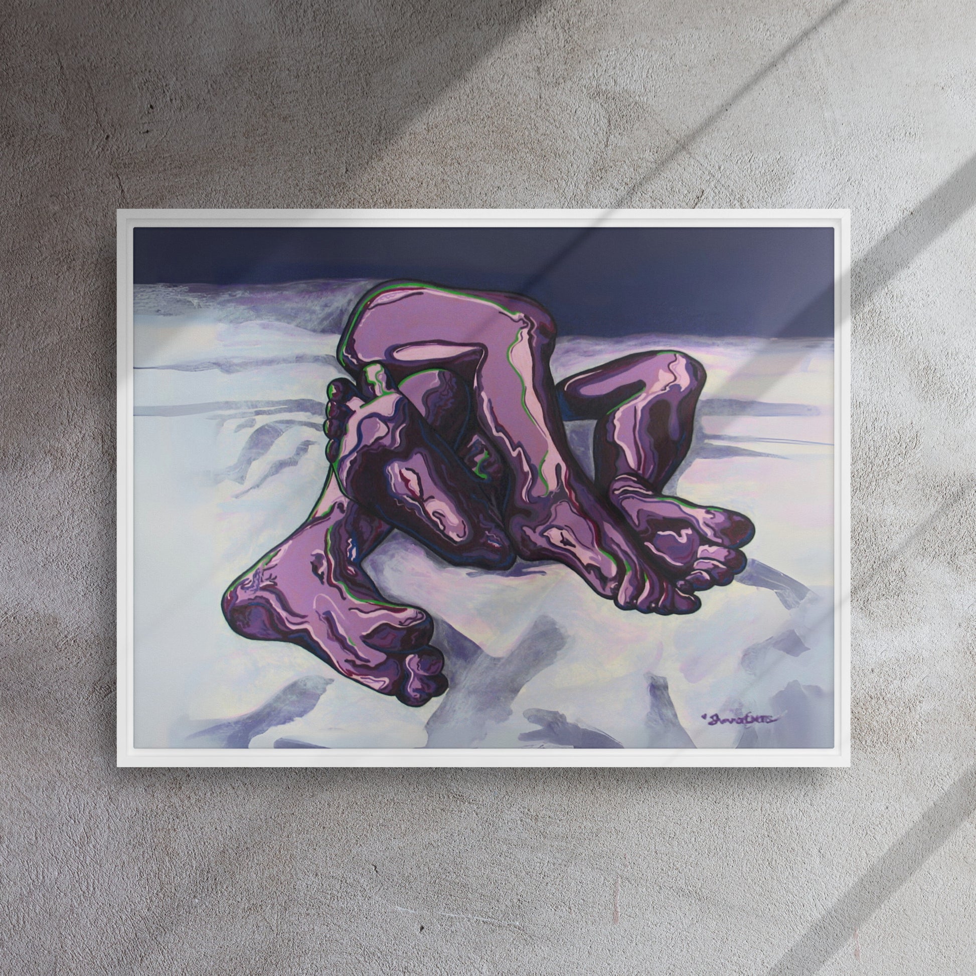 Fully lured into the warmth of their connection, skin is lost among skin in this intriguing mess of legs and feet. The eruptive force of this tender moment is forever captured in time, creating both a mysterious sense of excitement and belonging. Ideal for those who appreciate authentic connection, I Know makes a stunning addition to any space.