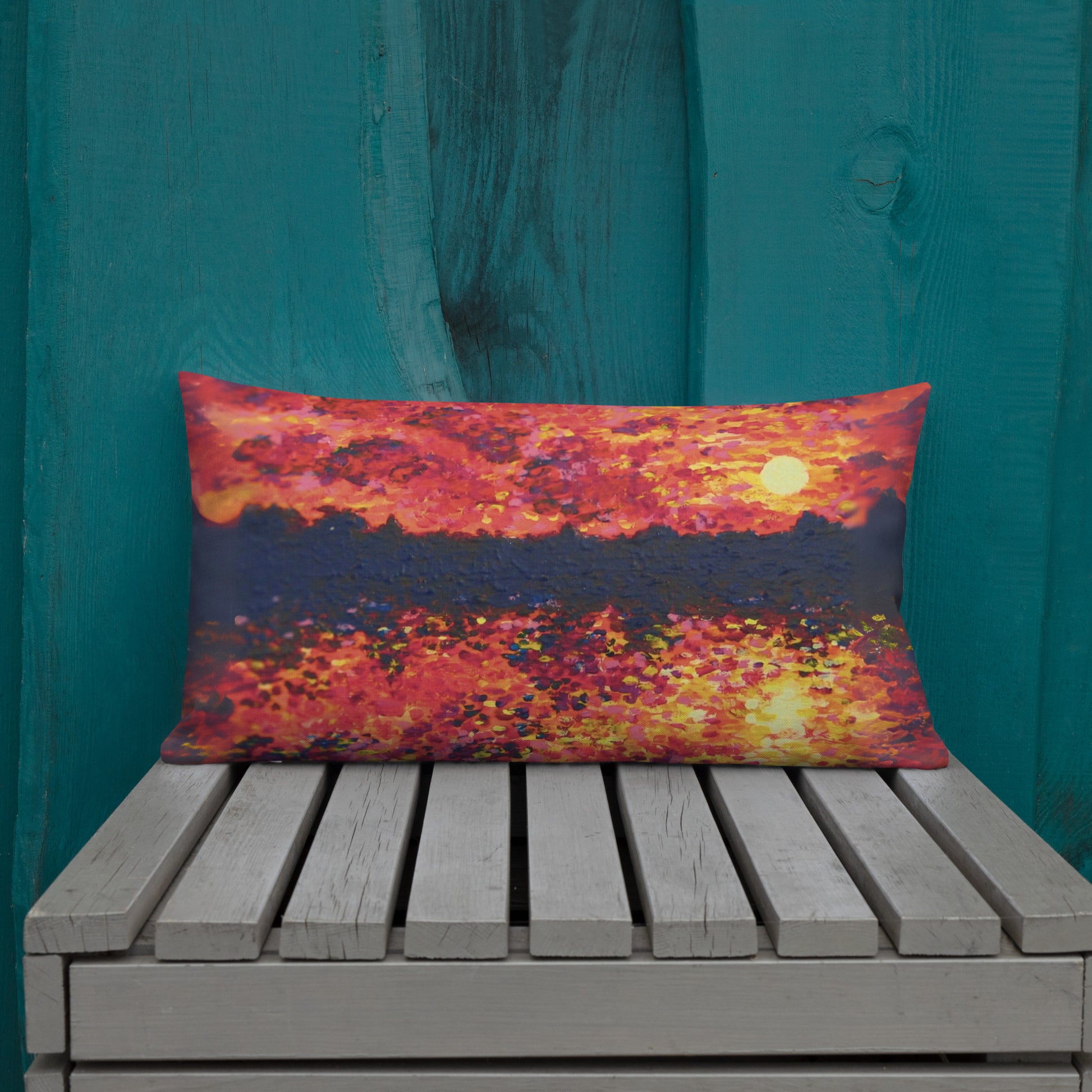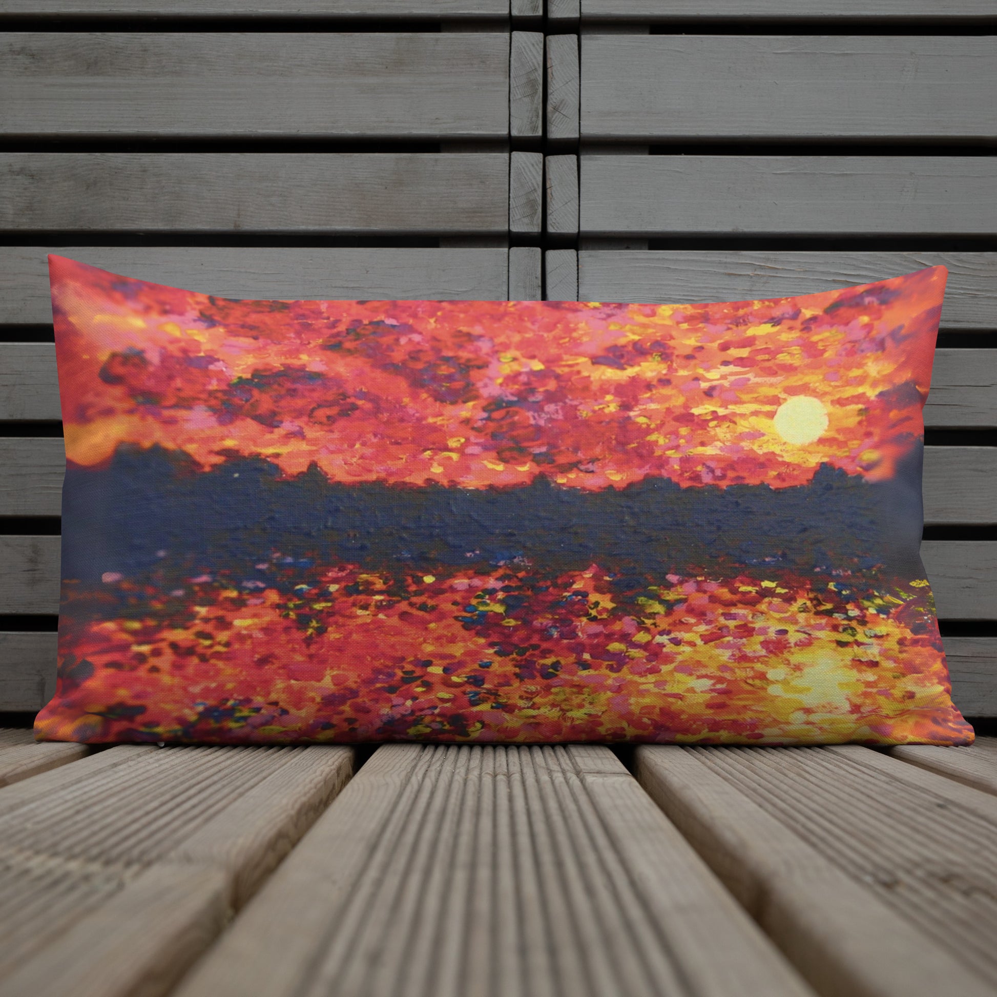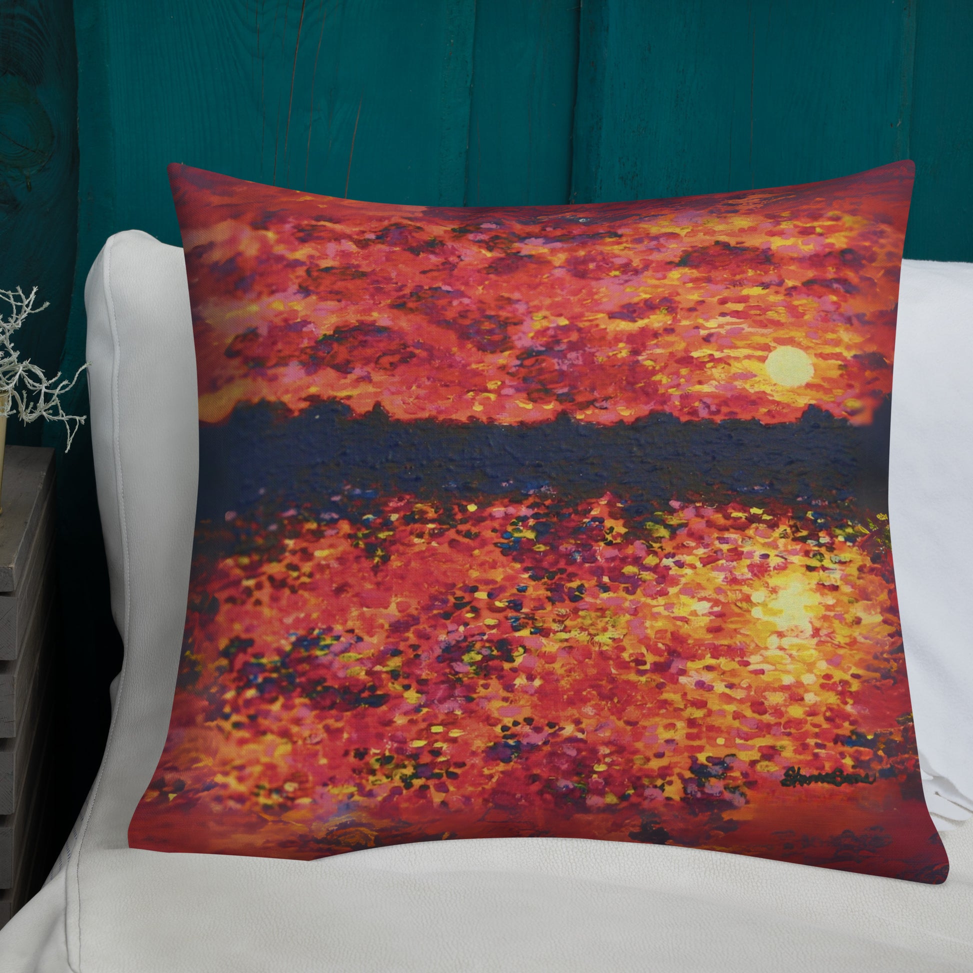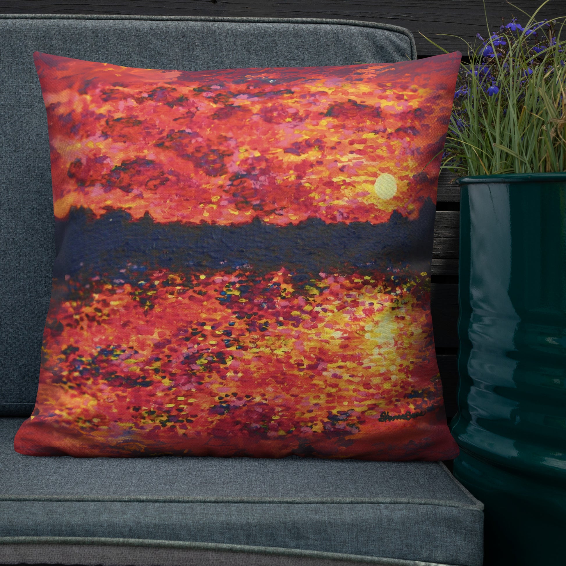 Awaken your senses with Just Think About It, an energizing contemporary painting that captures the spirit of nature's daily renewal. This stunning piece features a fiery orange-hued sunrise that bathes the landscape in warmth and vitality. As the sun rises over the silhouette of trees, light cascades across the serene lake below with tickling reflections as it forms a breathtaking scene that both demands notice and instills gratitude.