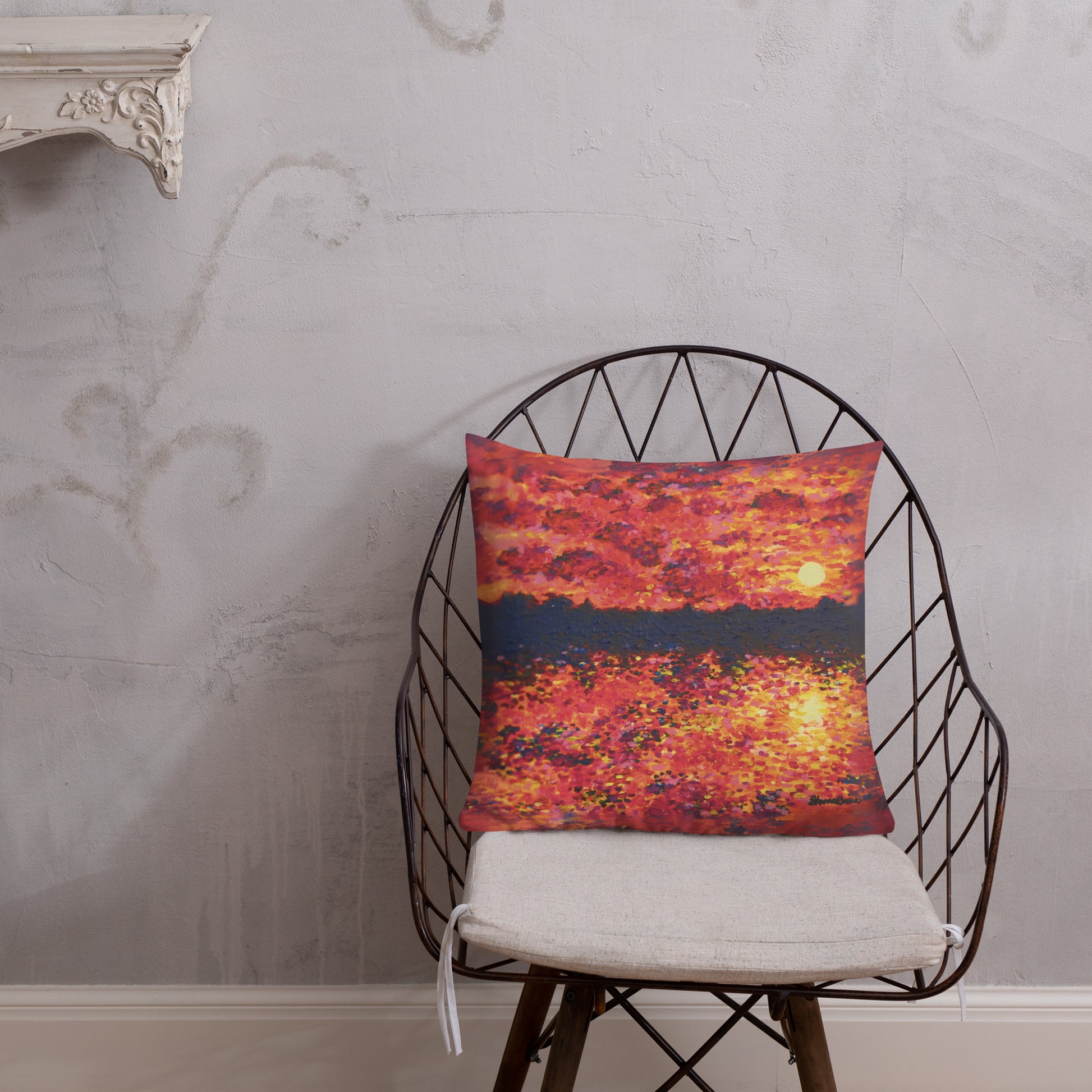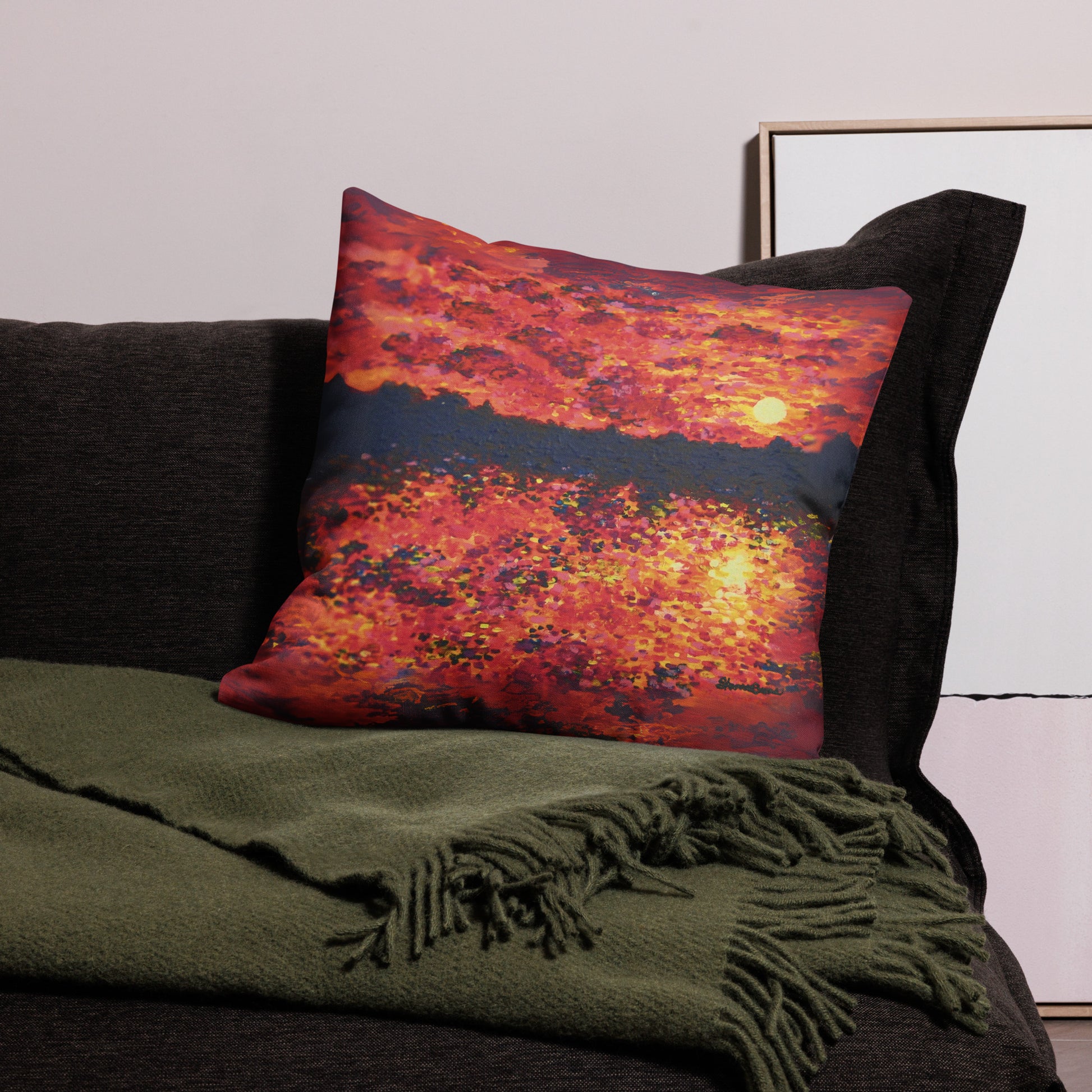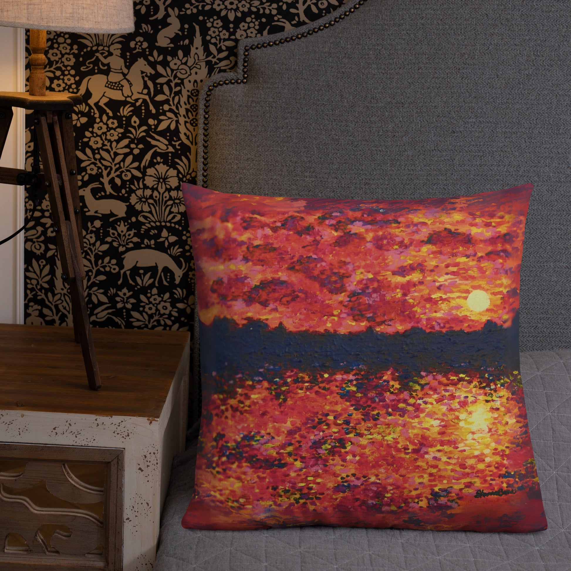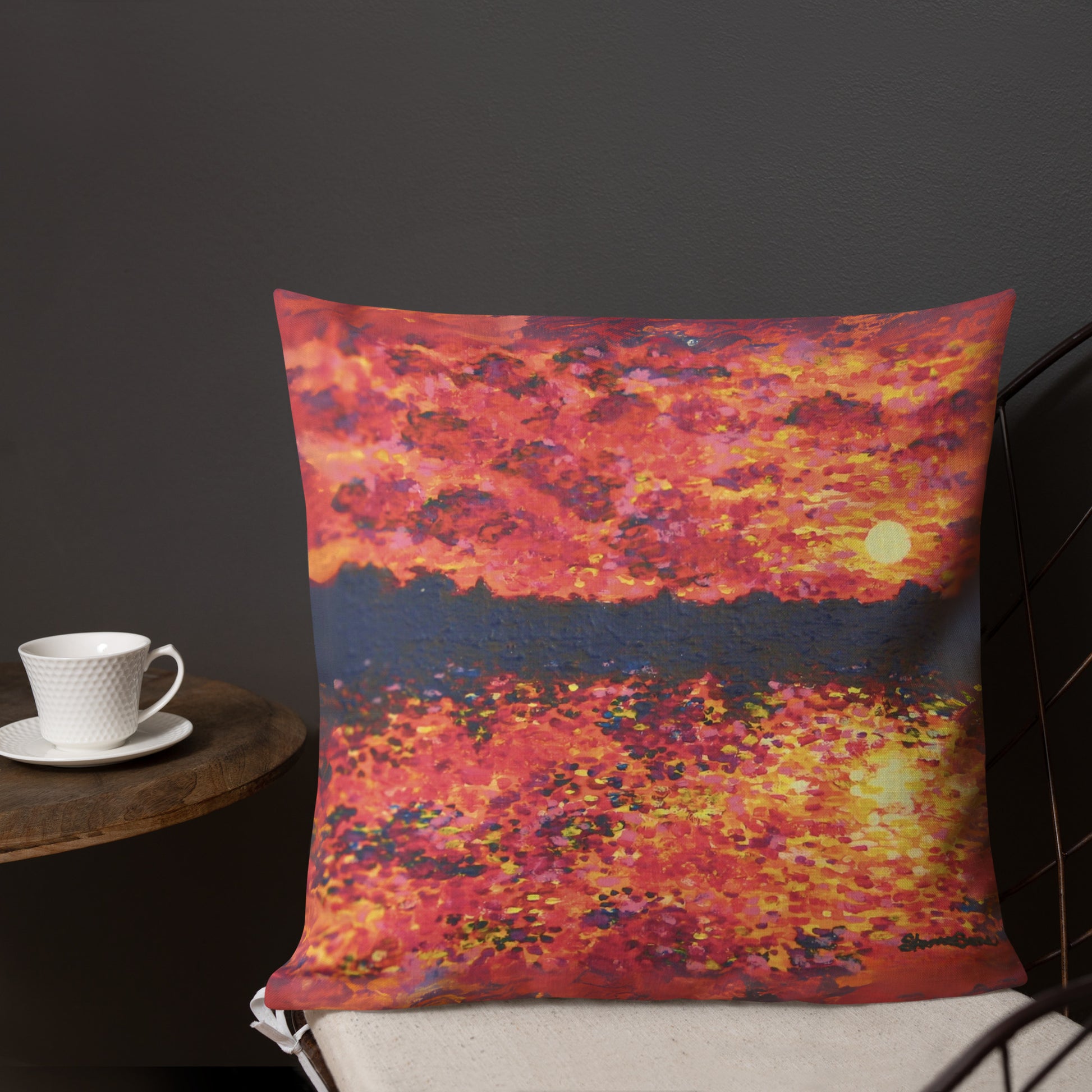 Awaken your senses with Just Think About It, an energizing contemporary painting that captures the spirit of nature's daily renewal. This stunning piece features a fiery orange-hued sunrise that bathes the landscape in warmth and vitality. As the sun rises over the silhouette of trees, light cascades across the serene lake below with tickling reflections as it forms a breathtaking scene that both demands notice and instills gratitude.