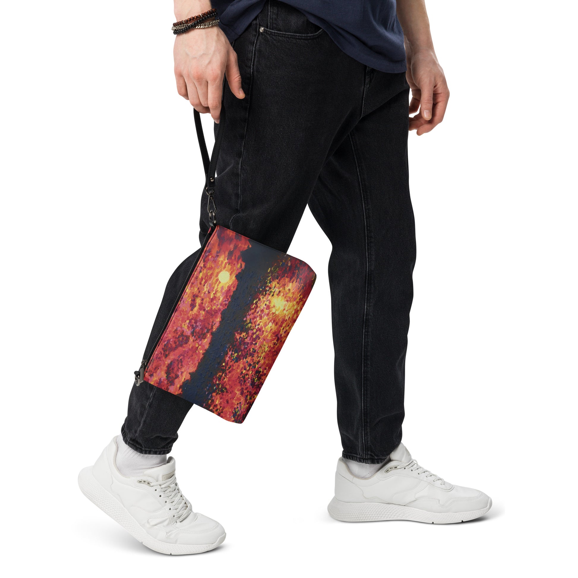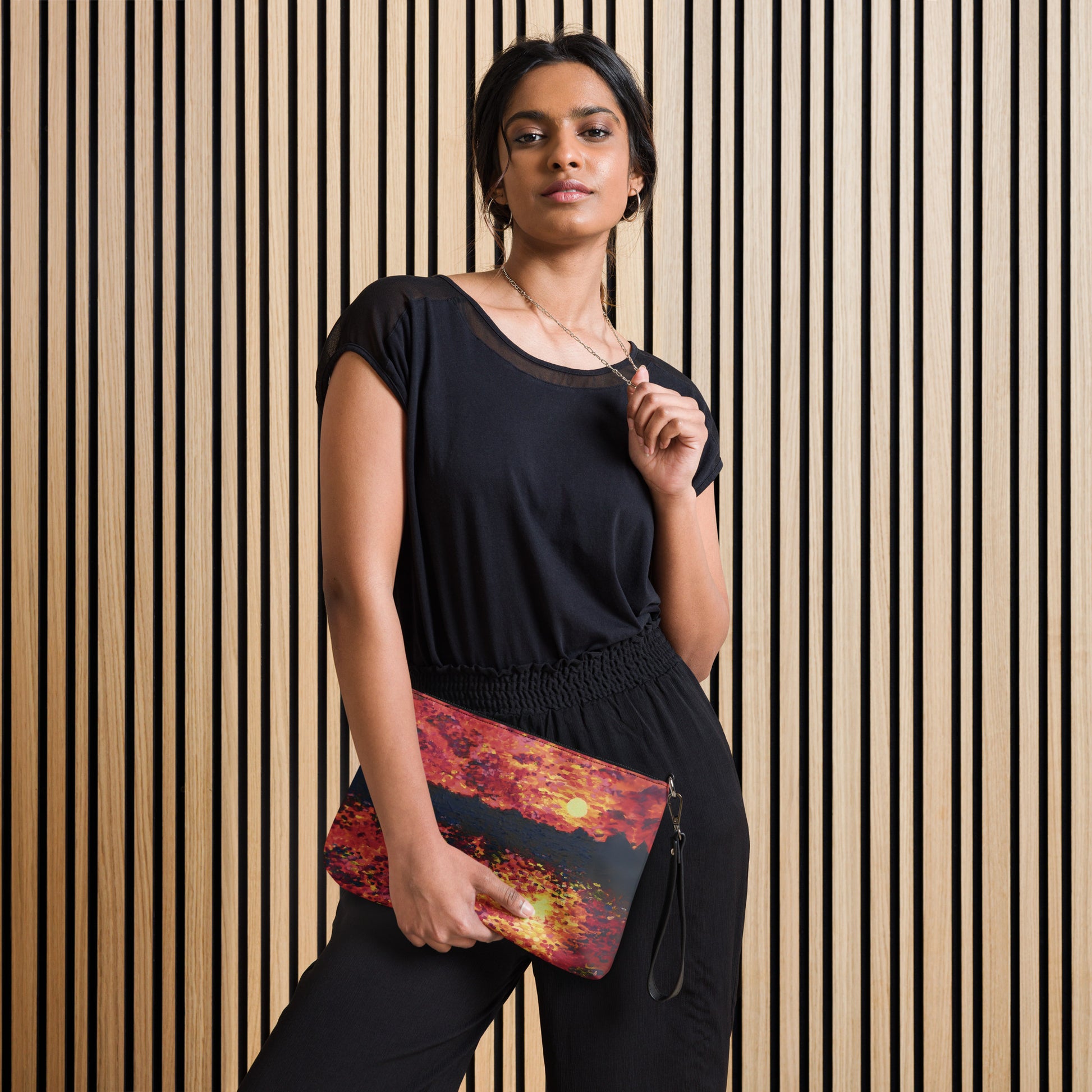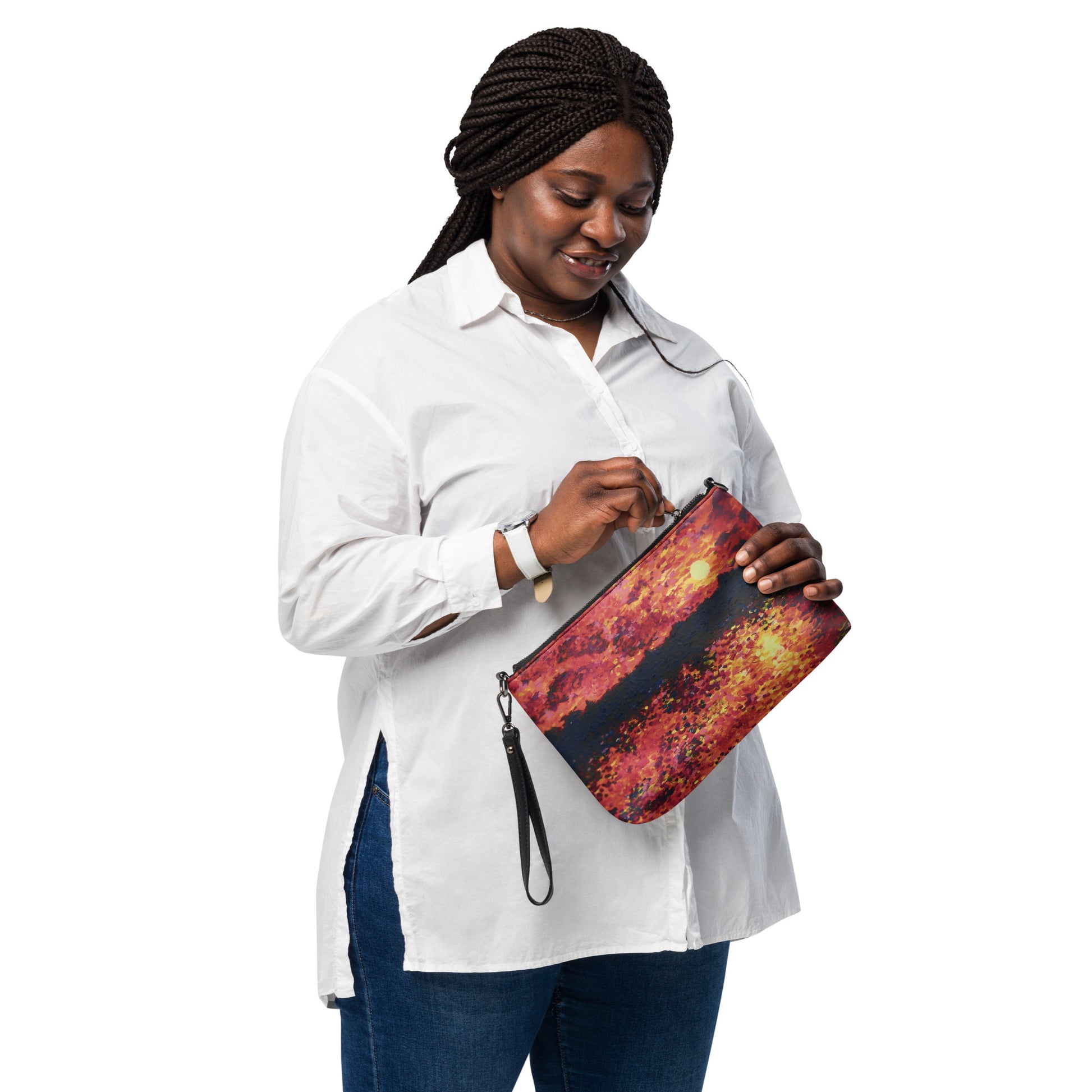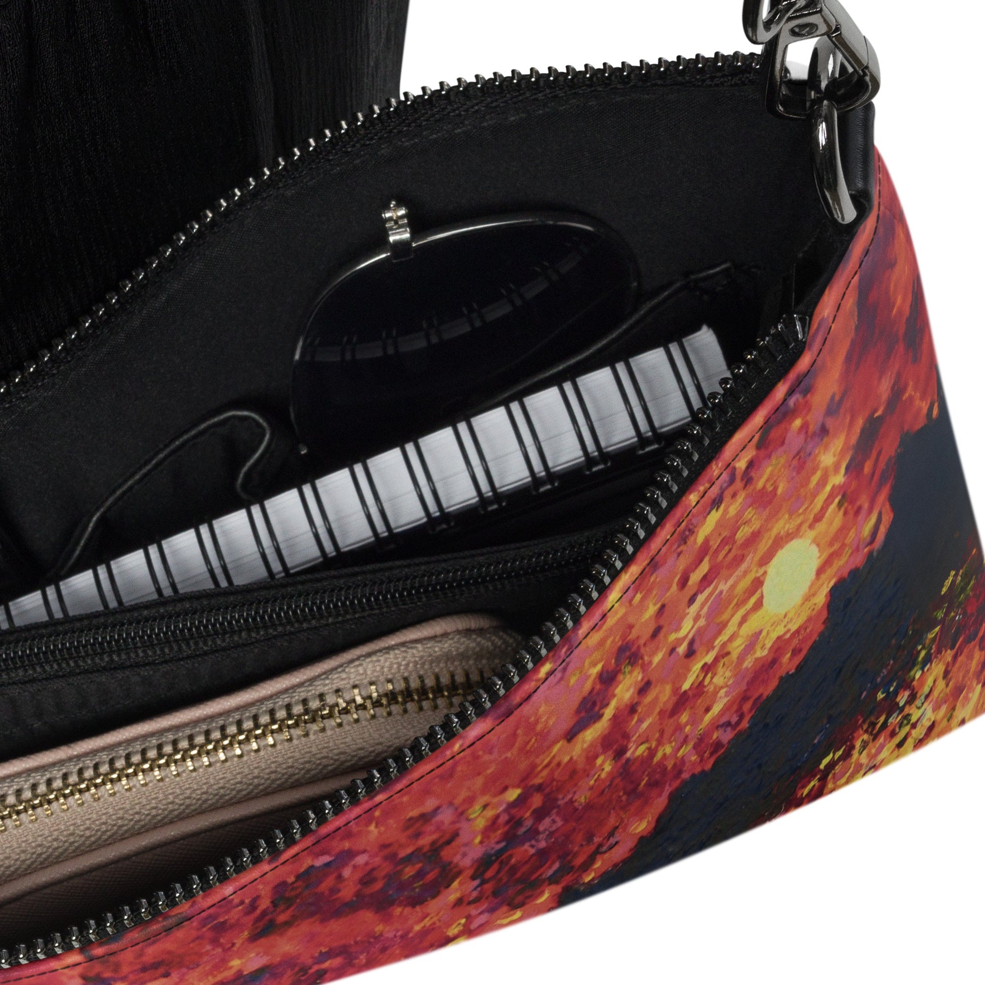 Keep your style hot and your hands free with this versatile crossbody bag! Made with premium faux leather and featuring dark gray hardware, this perfect-sized bag has a zip-top closure and multiple inside pockets to keep your essentials secure and organized. Transform this crossbody bag with removable wrist and shoulder straps to style it for day-to-night looks. Printed with care from Shannon Evans' Chicago Symphony painting!