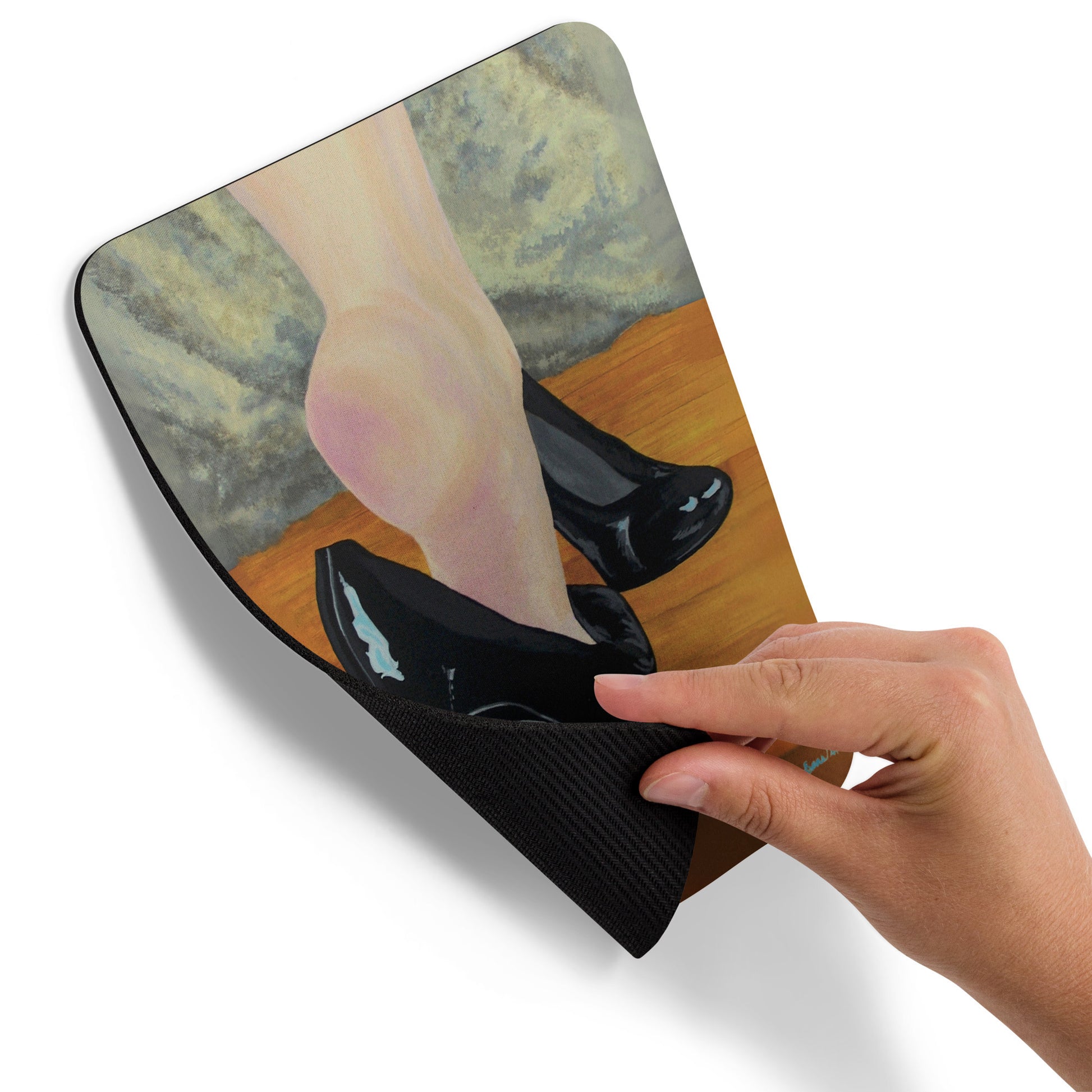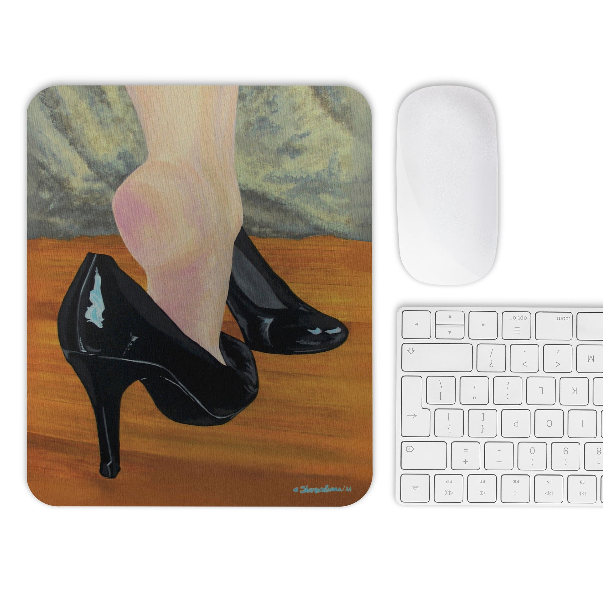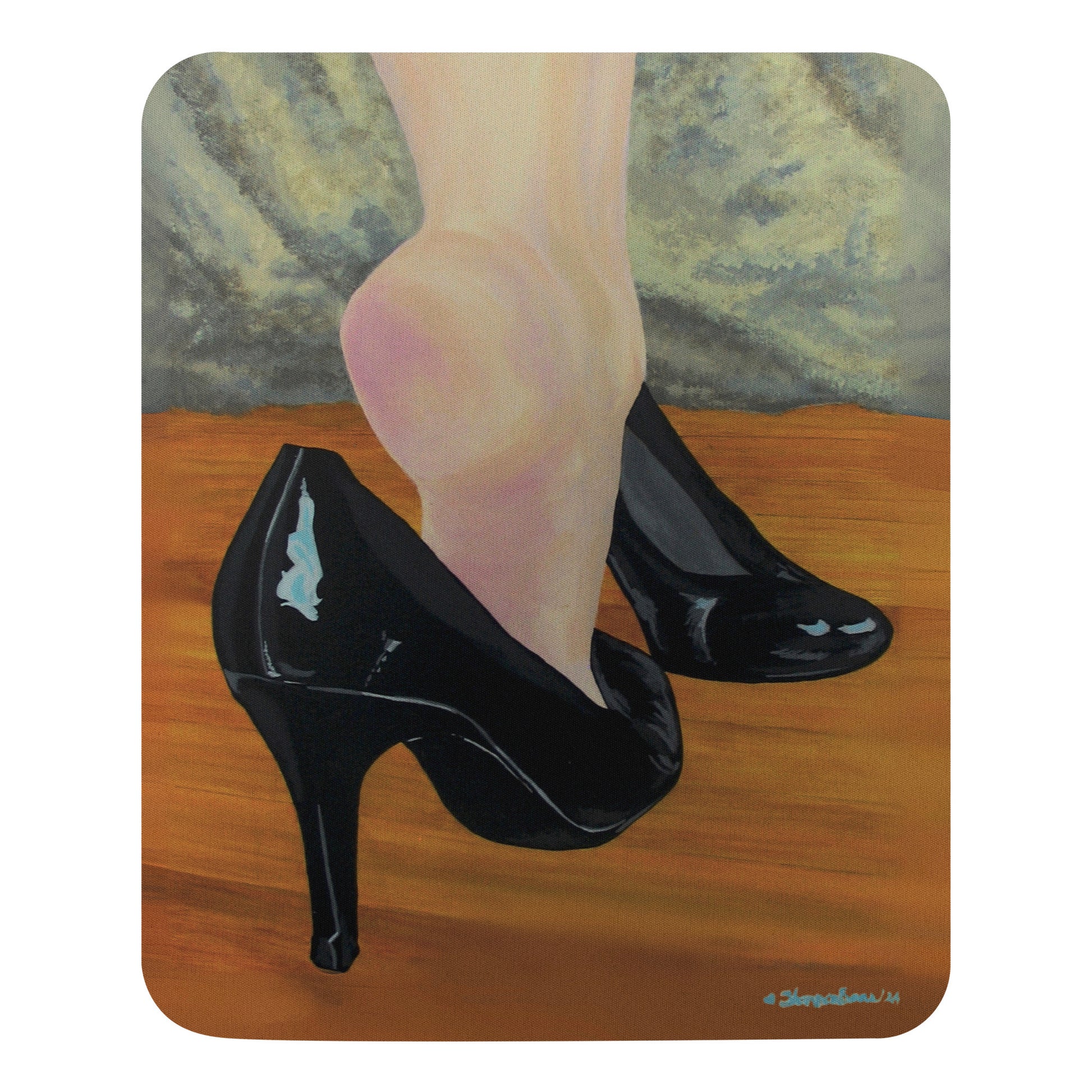 Elevate your mood with our enticing Stepping Into You, a contemporary work that embodies elegance and seduction. This striking painting portrays the graceful moment of a soft-soled, feminine foot slipping seamlessly into a sleek, black patent leather stiletto heel. The artist captures the interplay of light and texture, accentuating the shoe's glossy finish and her foot's delicate arch.