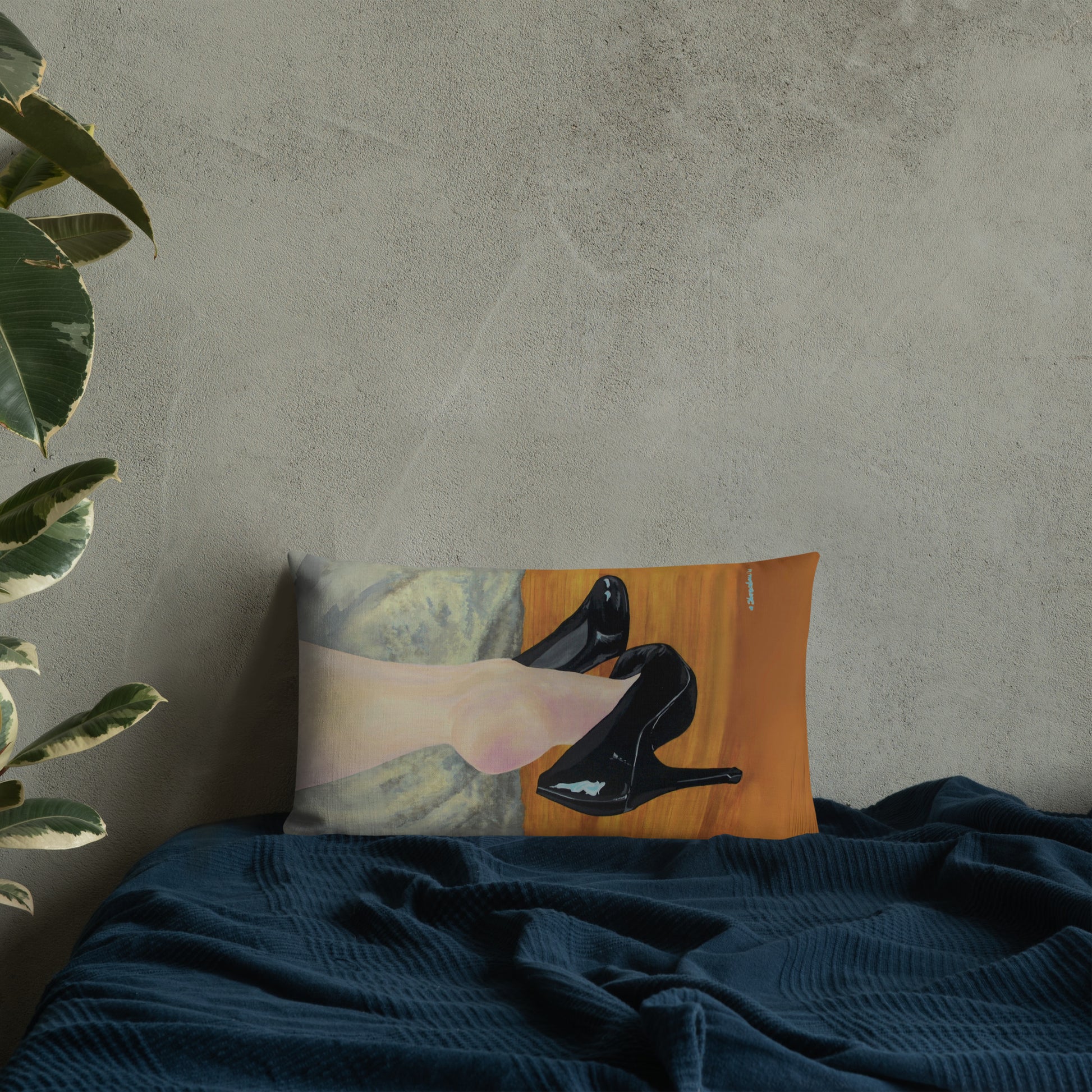 Elevate your mood with our enticing Stepping Into You, a contemporary work that embodies elegance and seduction. This striking painting portrays the graceful moment of a soft-soled, feminine foot slipping seamlessly into a sleek, black patent leather stiletto heel. The artist captures the interplay of light and texture, accentuating the shoe's glossy finish and her foot's delicate arch.