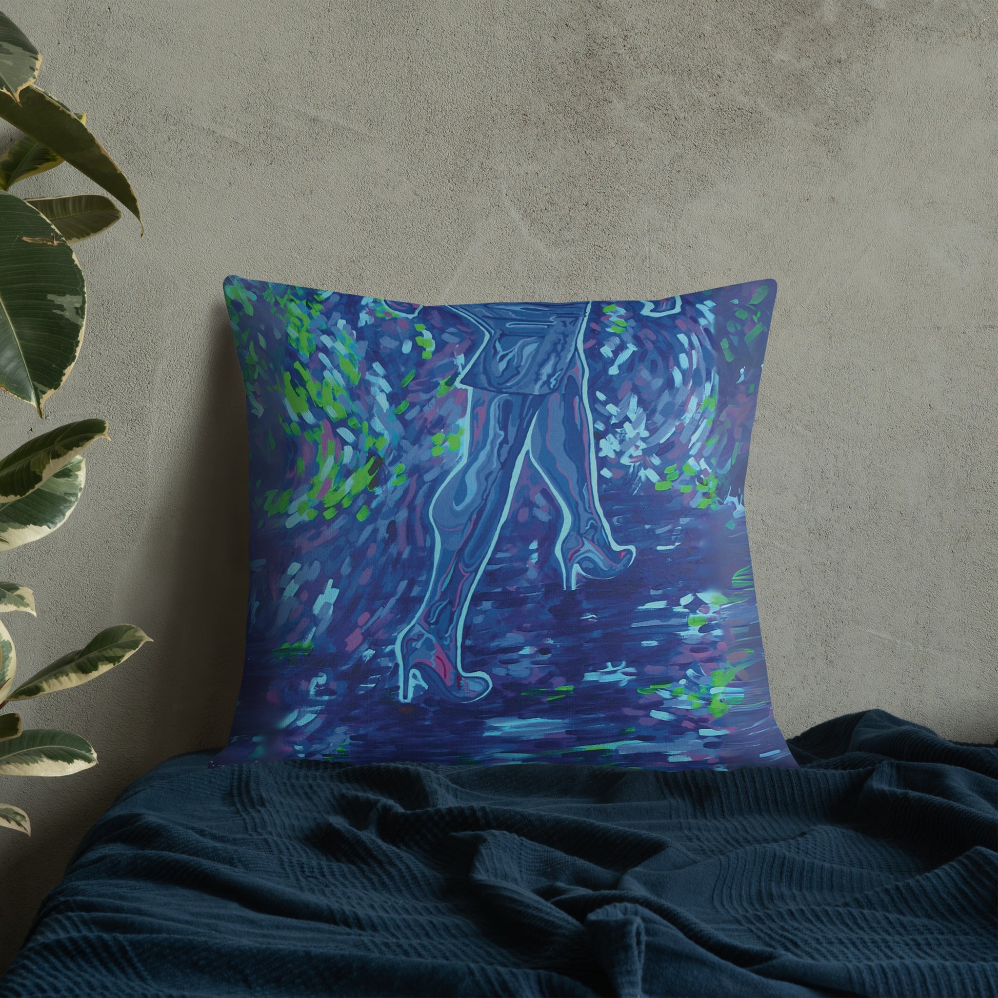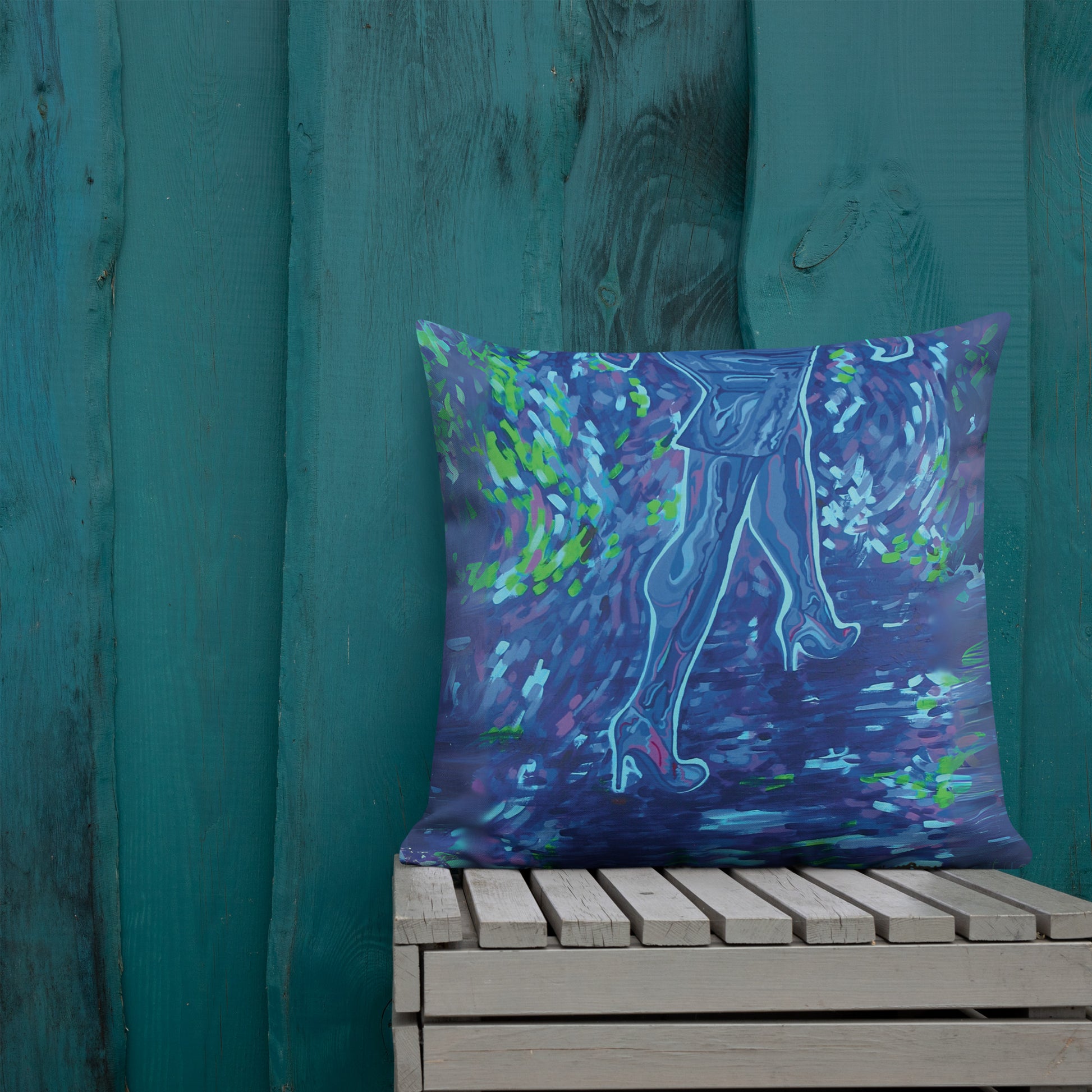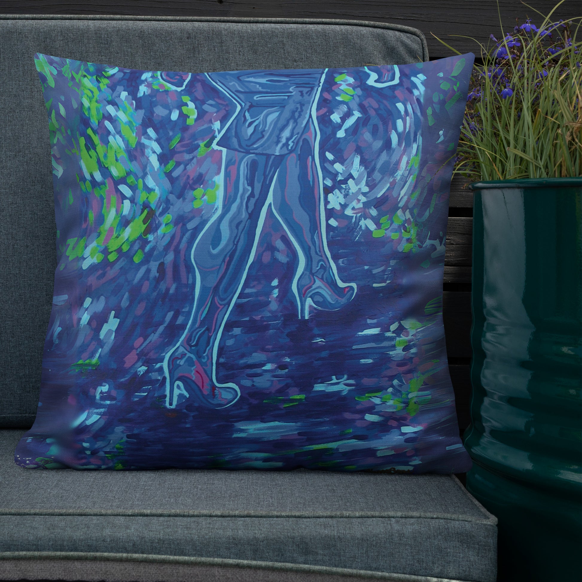 Her skirt means business, paired with defiant stiletto heels, and adds a modern vibe to this timeless story. The woman's extravagantly pronounced calves testify to her long-established history of walking, making this artwork an eye-catching conversation-starter for any space.