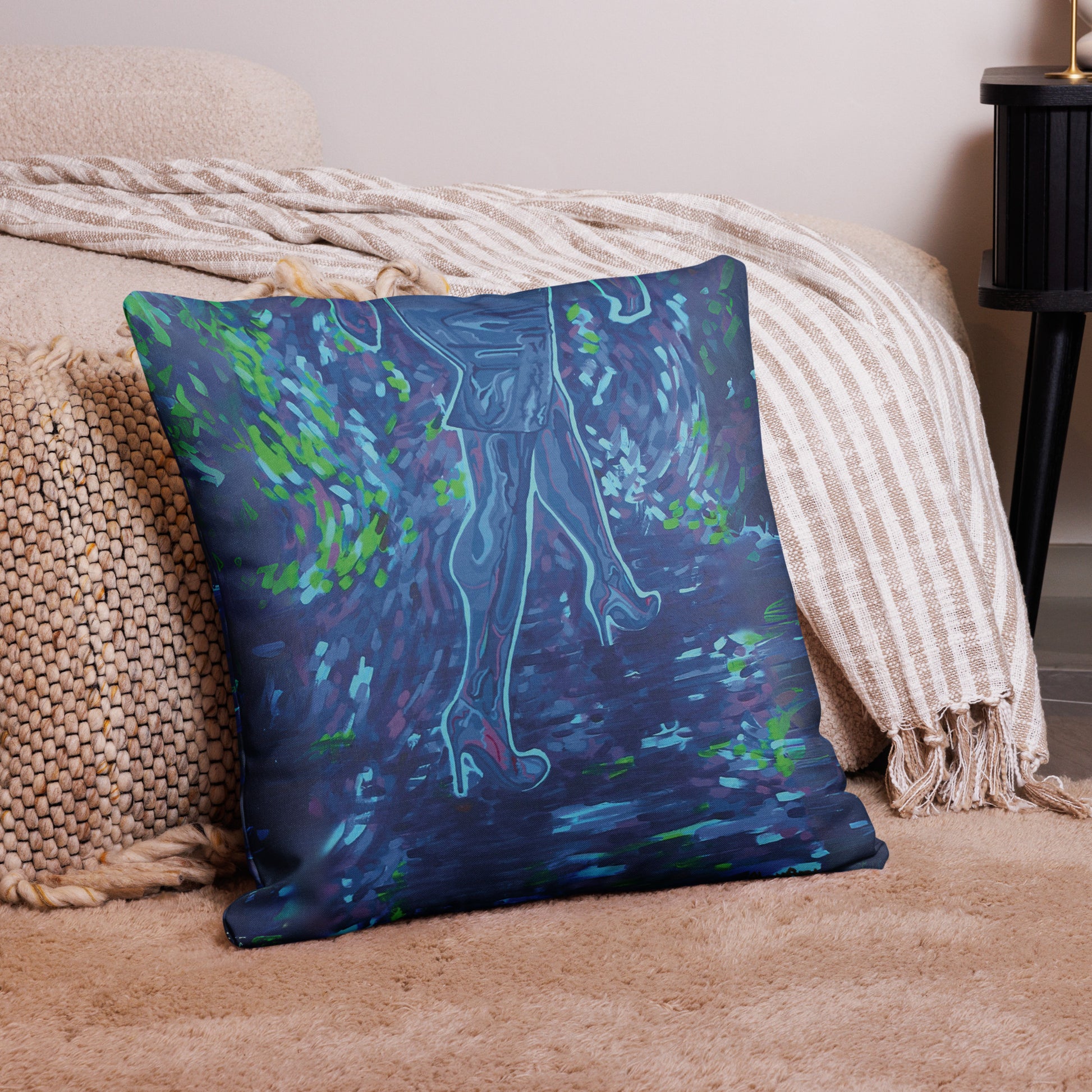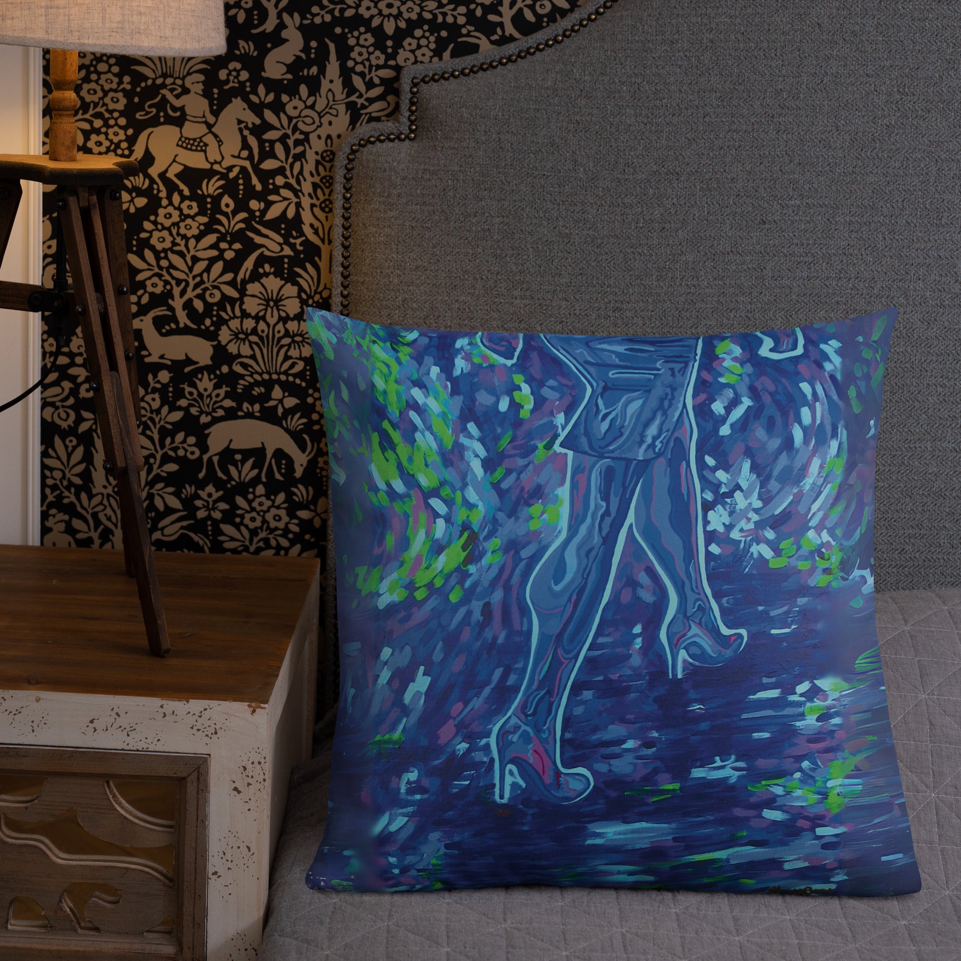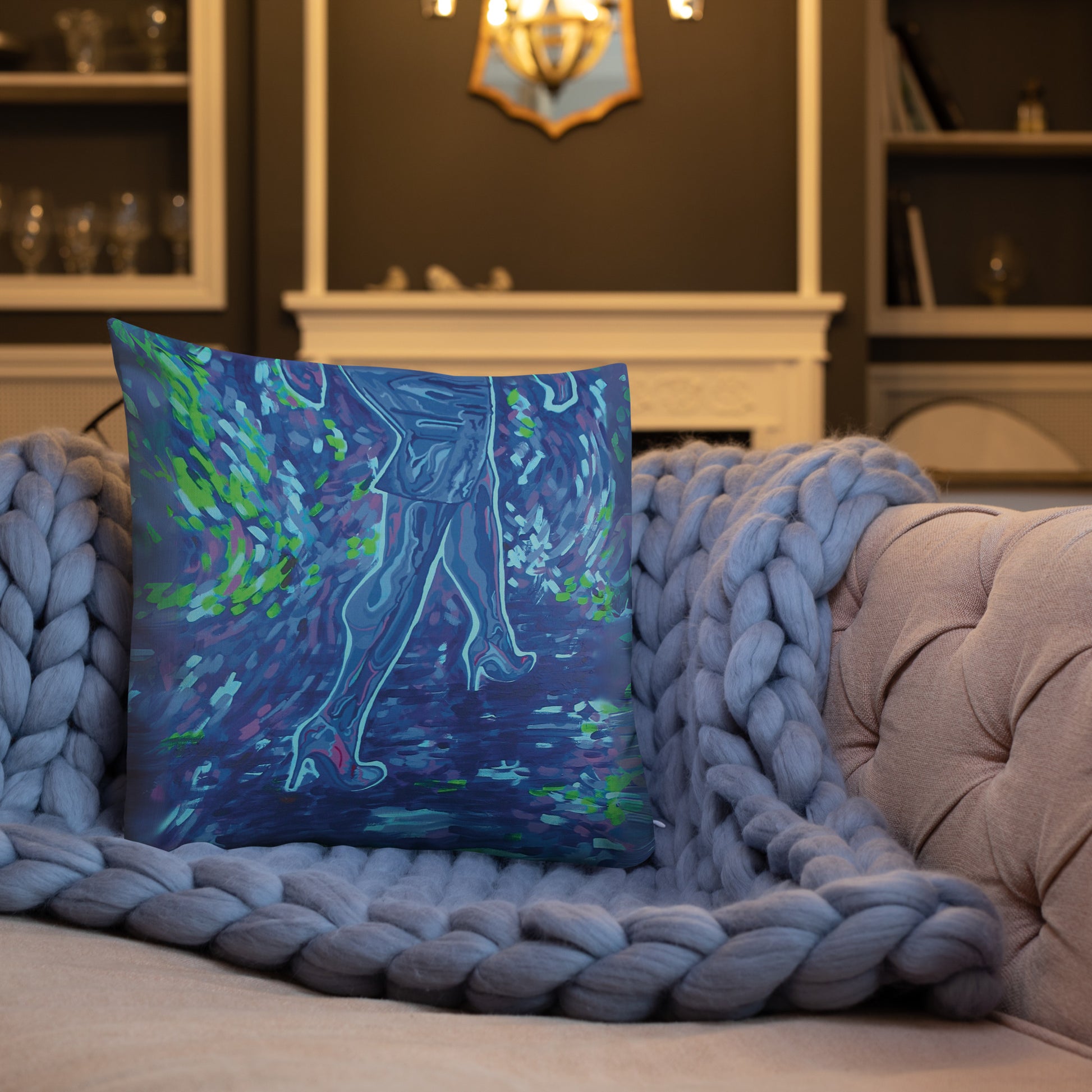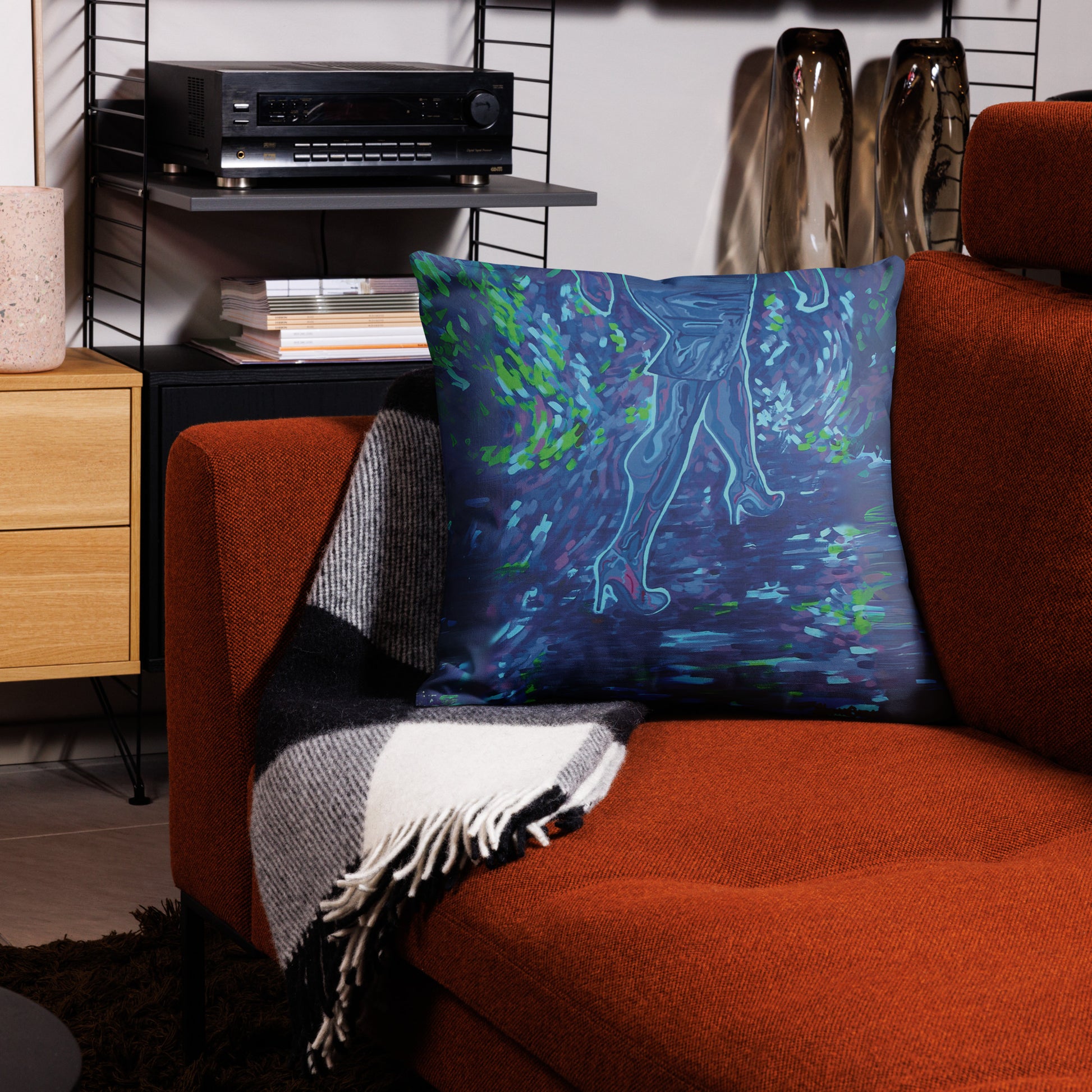 Her skirt means business, paired with defiant stiletto heels, and adds a modern vibe to this timeless story. The woman's extravagantly pronounced calves testify to her long-established history of walking, making this artwork an eye-catching conversation-starter for any space.