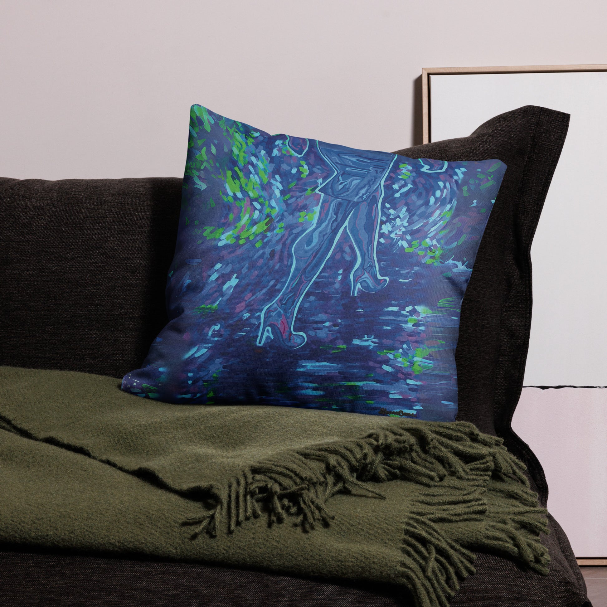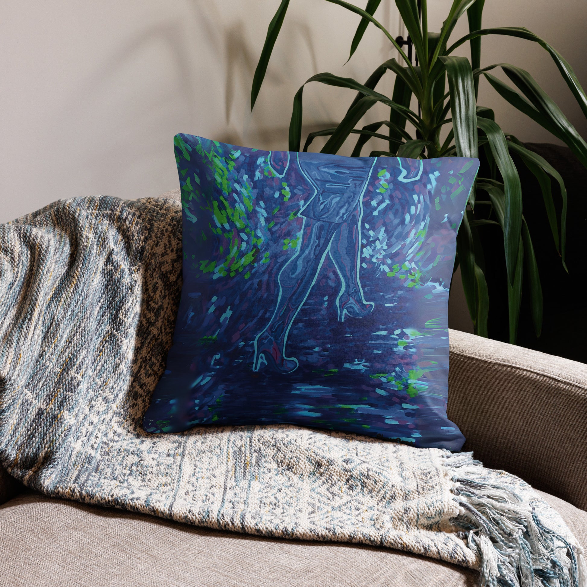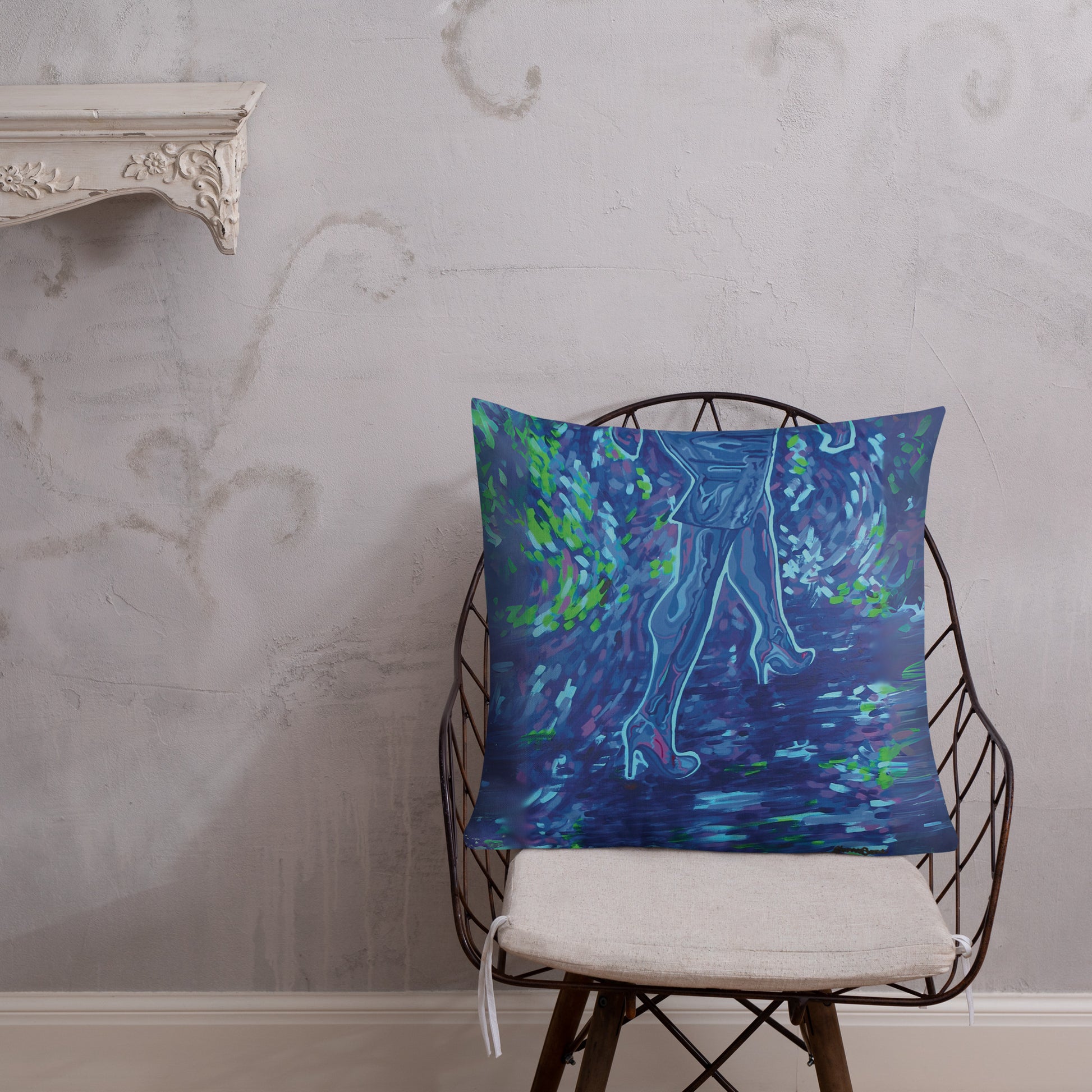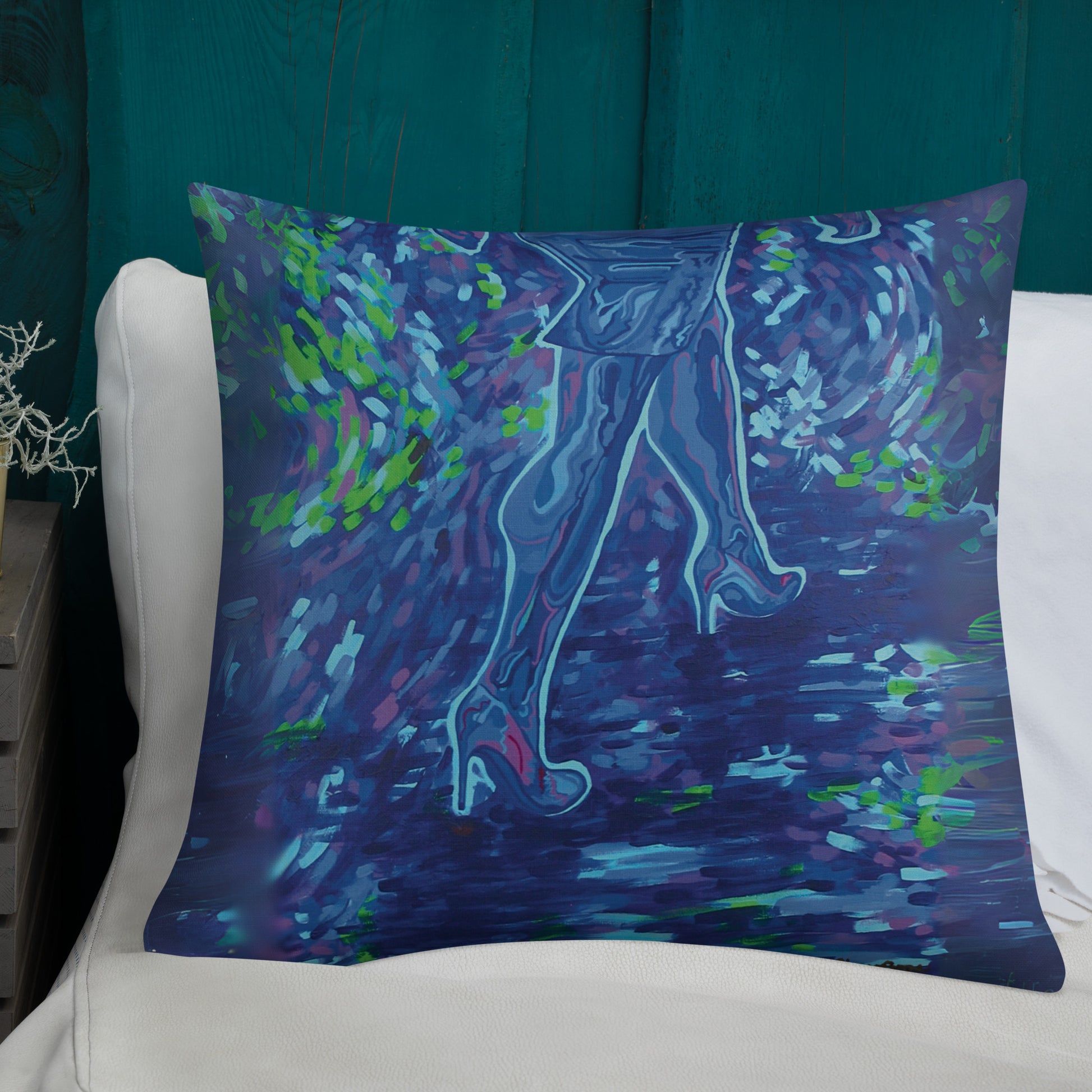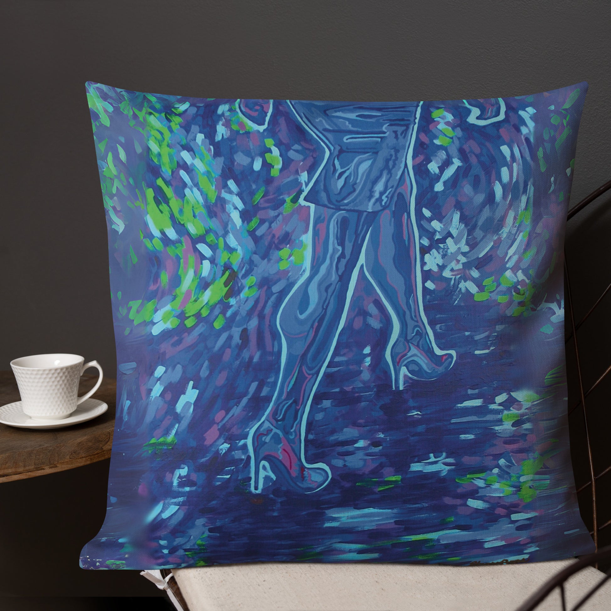 Introducing That Time, She Walked, an entrancing, new narrative piece that effortlessly combusts with energy and mystery. This striking painting predominantly features rich blue hues and bold lines, creating a crisp, surreal atmosphere that implies a destination unfolding in its distance. We experience the essence of a confident woman depicted as she strides away, exuding poise and allure.