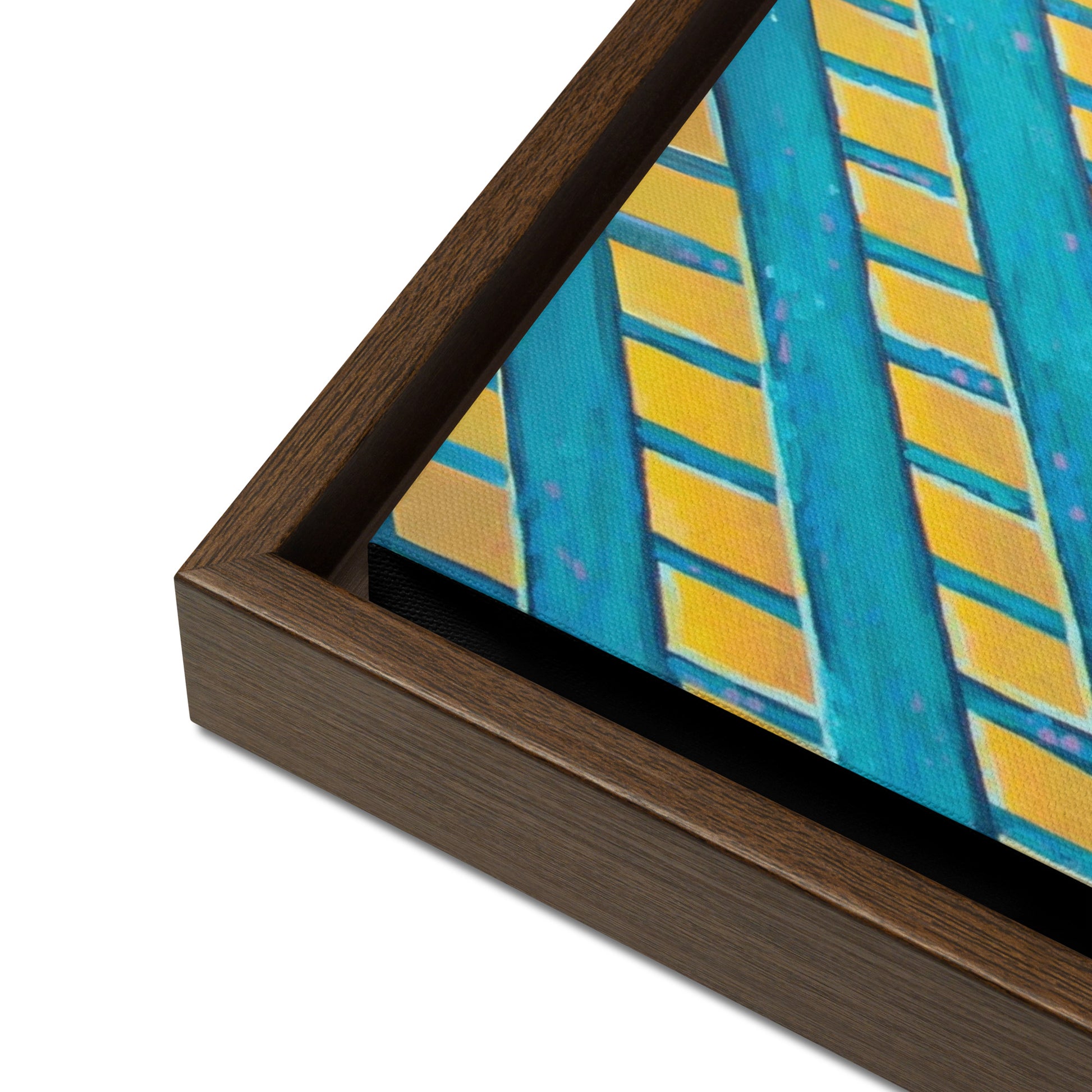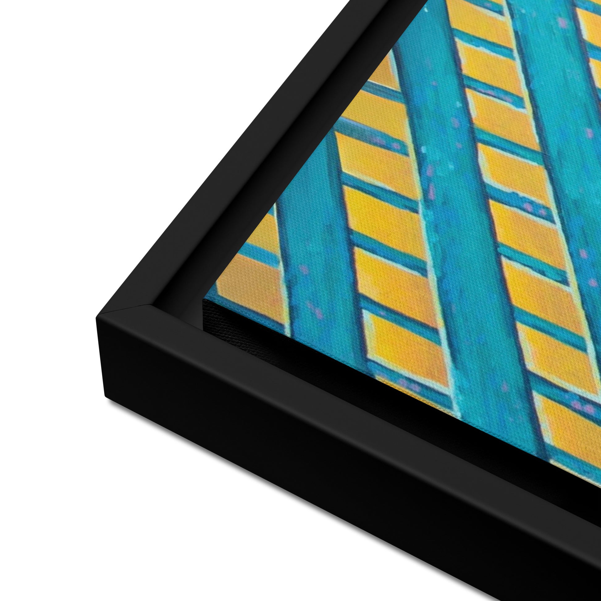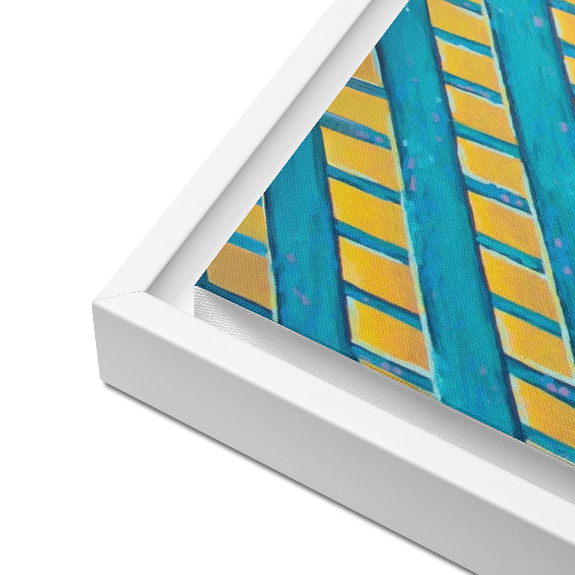 - The framed canvases with brown and black frames have a black inside around the canvas, and the canvases with white frames have a white inside around the canvas.