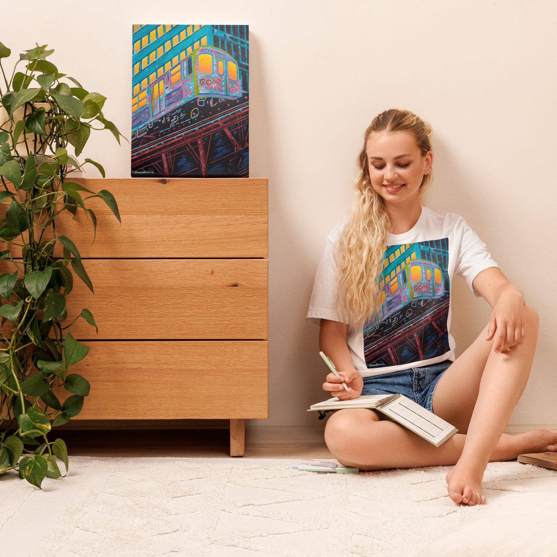 Immerse yourself in the indomitable buoyancy of Chicago on a bustling city morning. Today Is The Day captures the iconic Chicago El Train as it barrels along its high tracks, charging past classic architecture that glows with the morning sun.